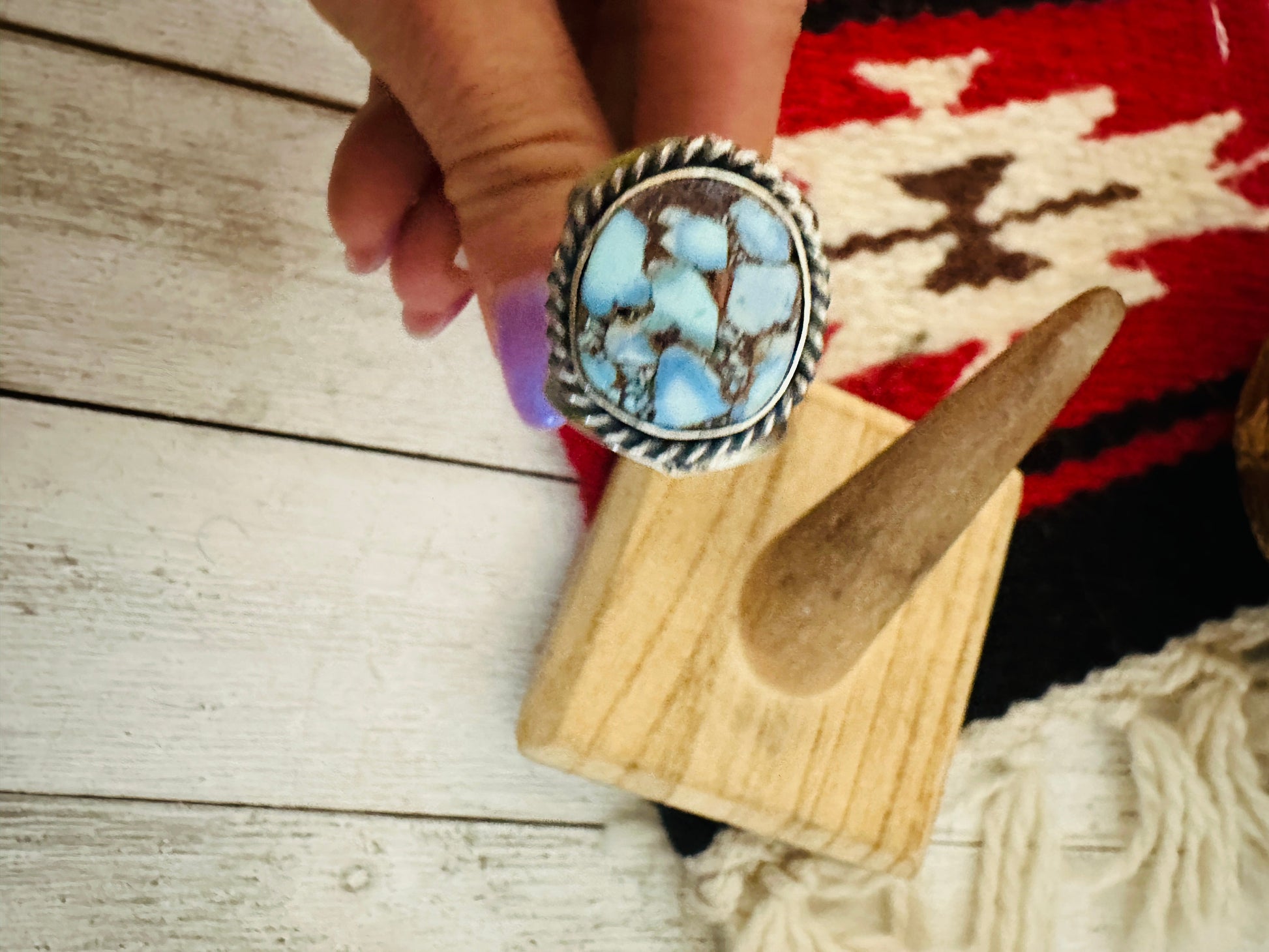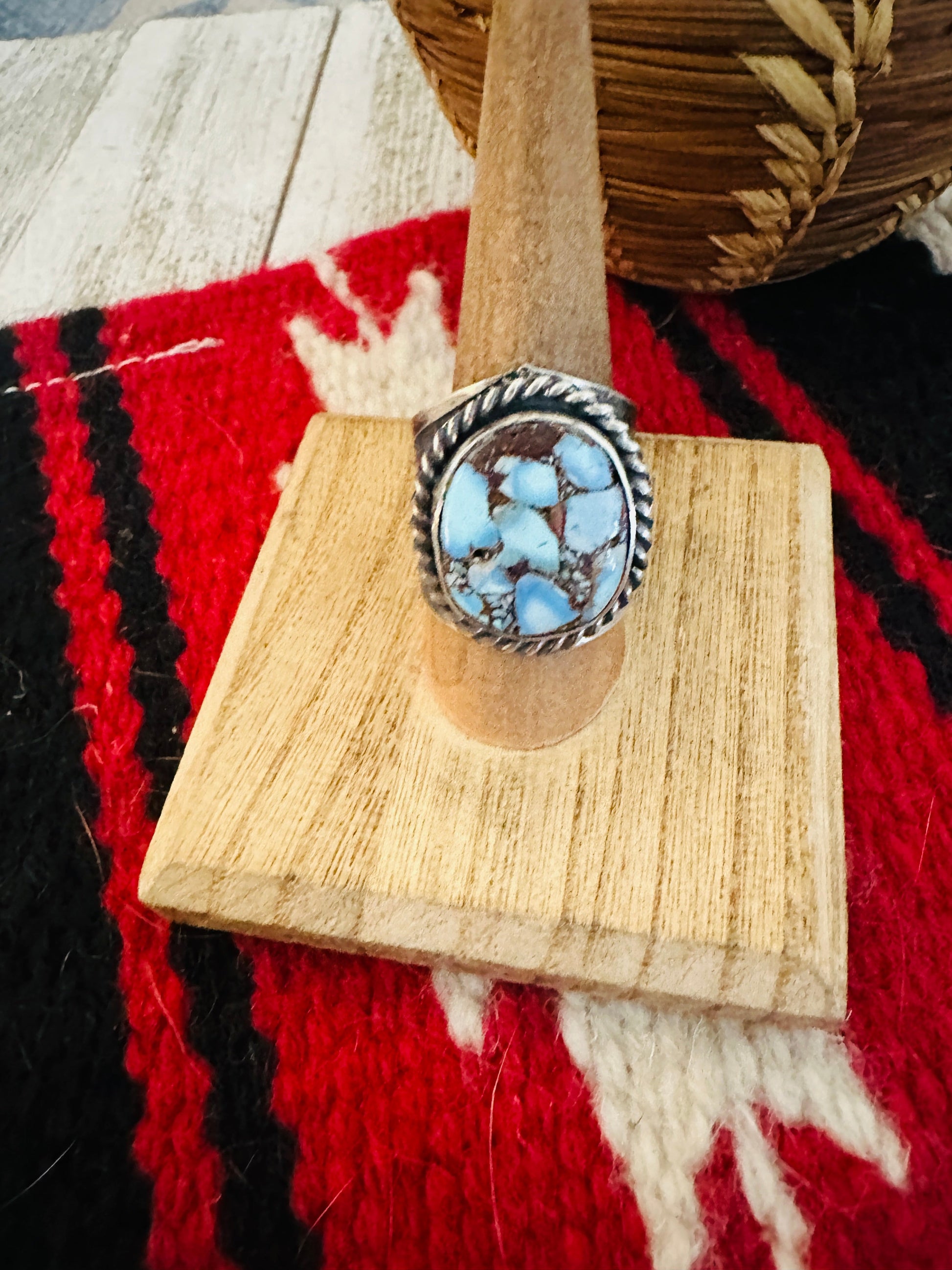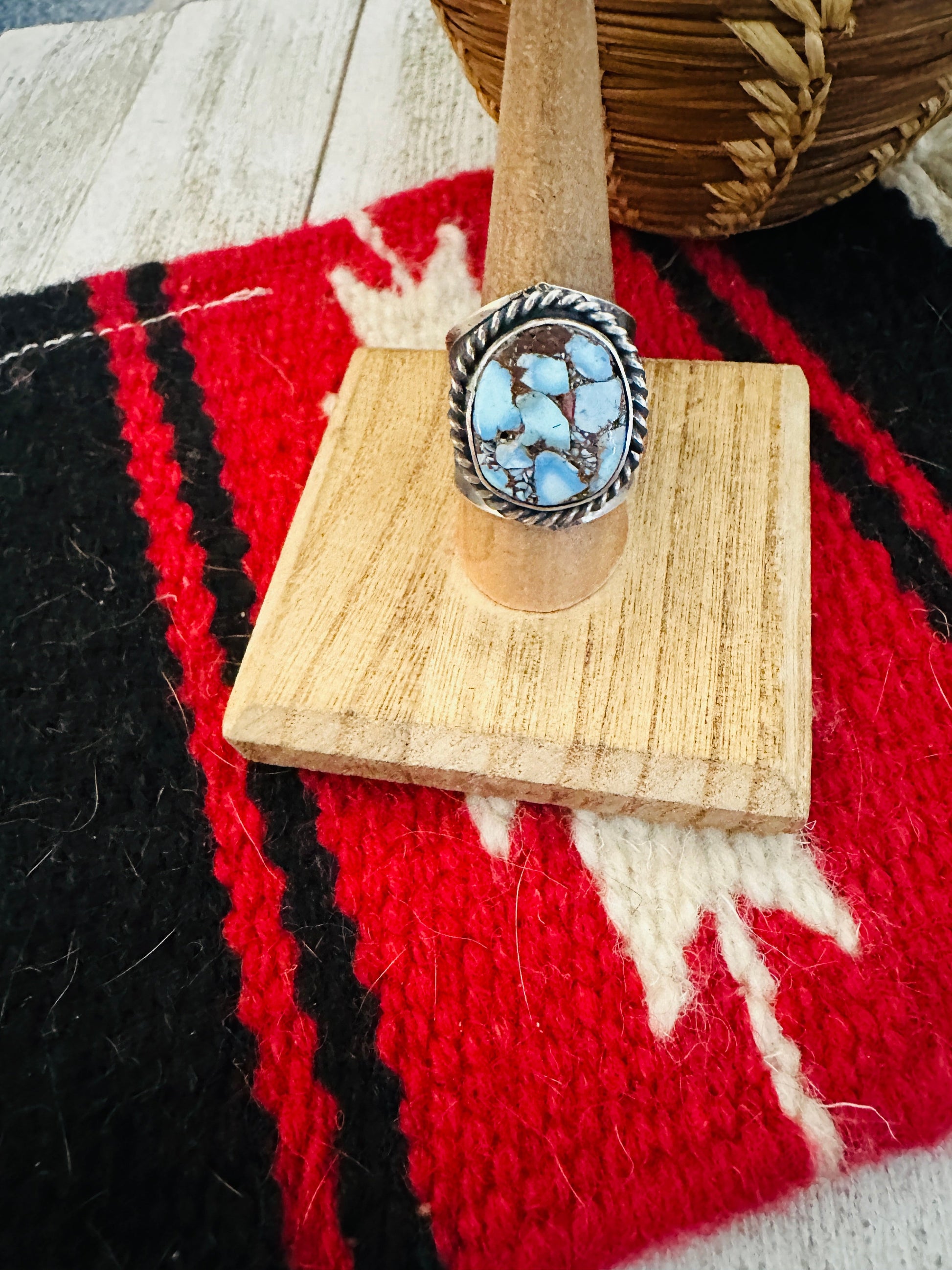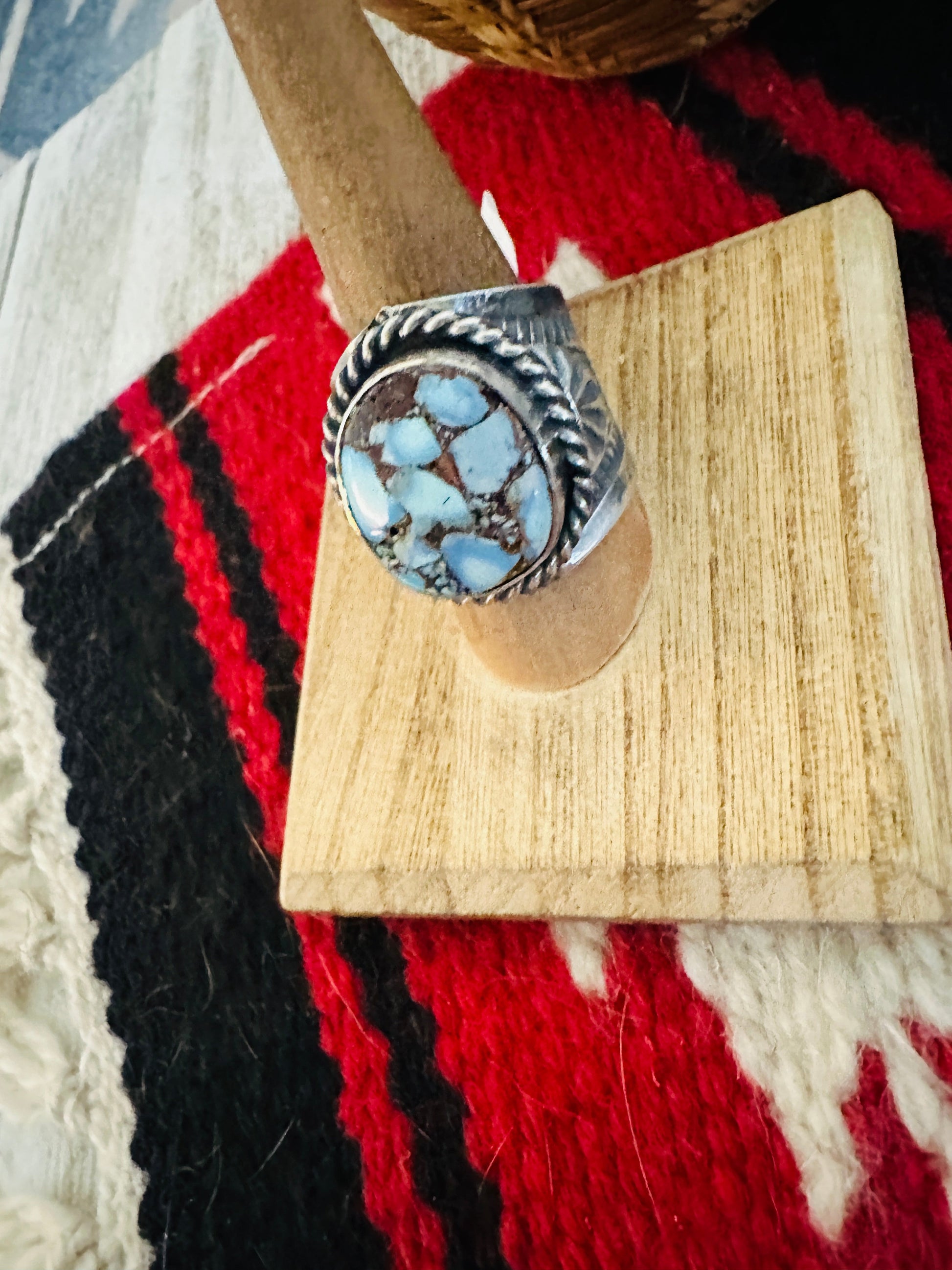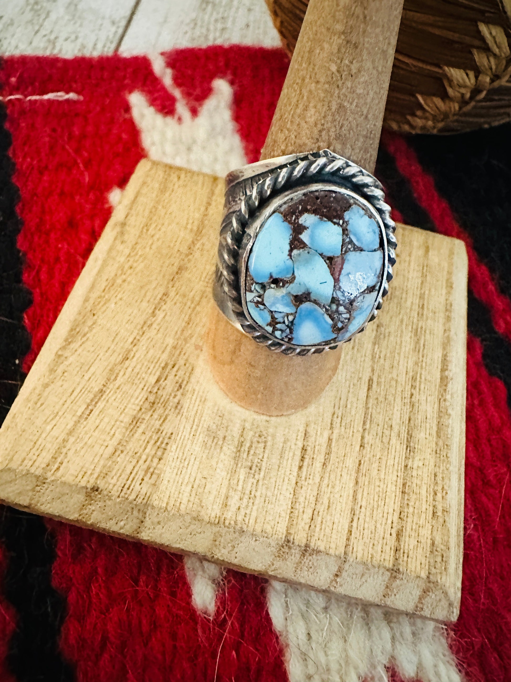 Navajo Golden Hills Turquoise & Sterling Silver Ring Size 9