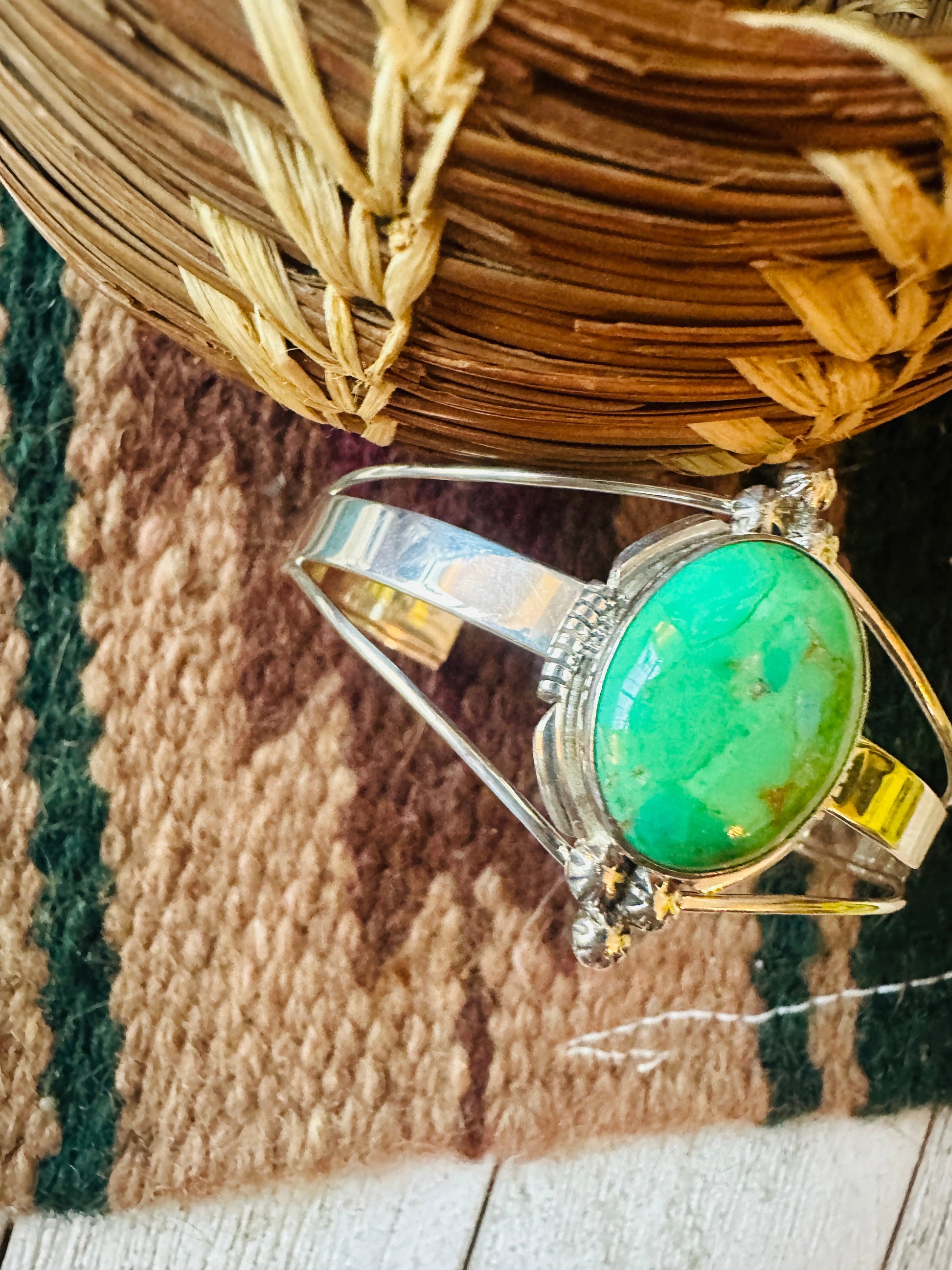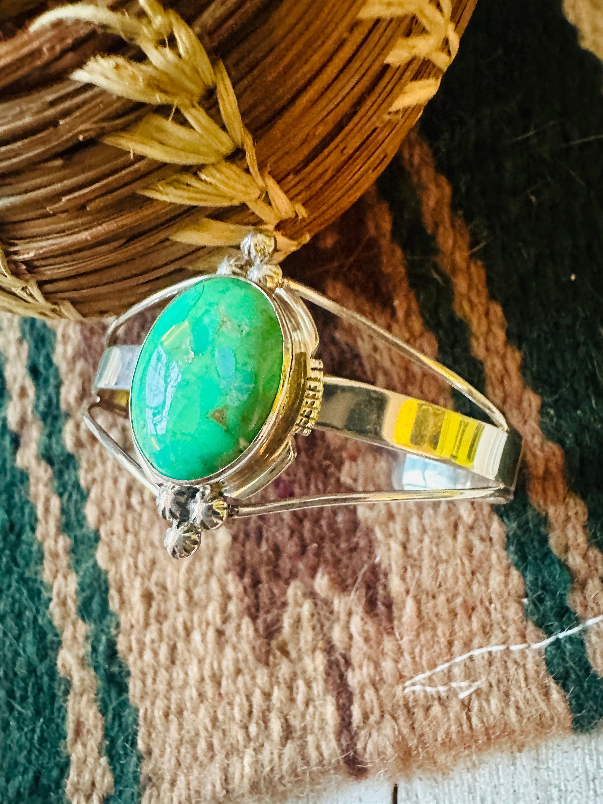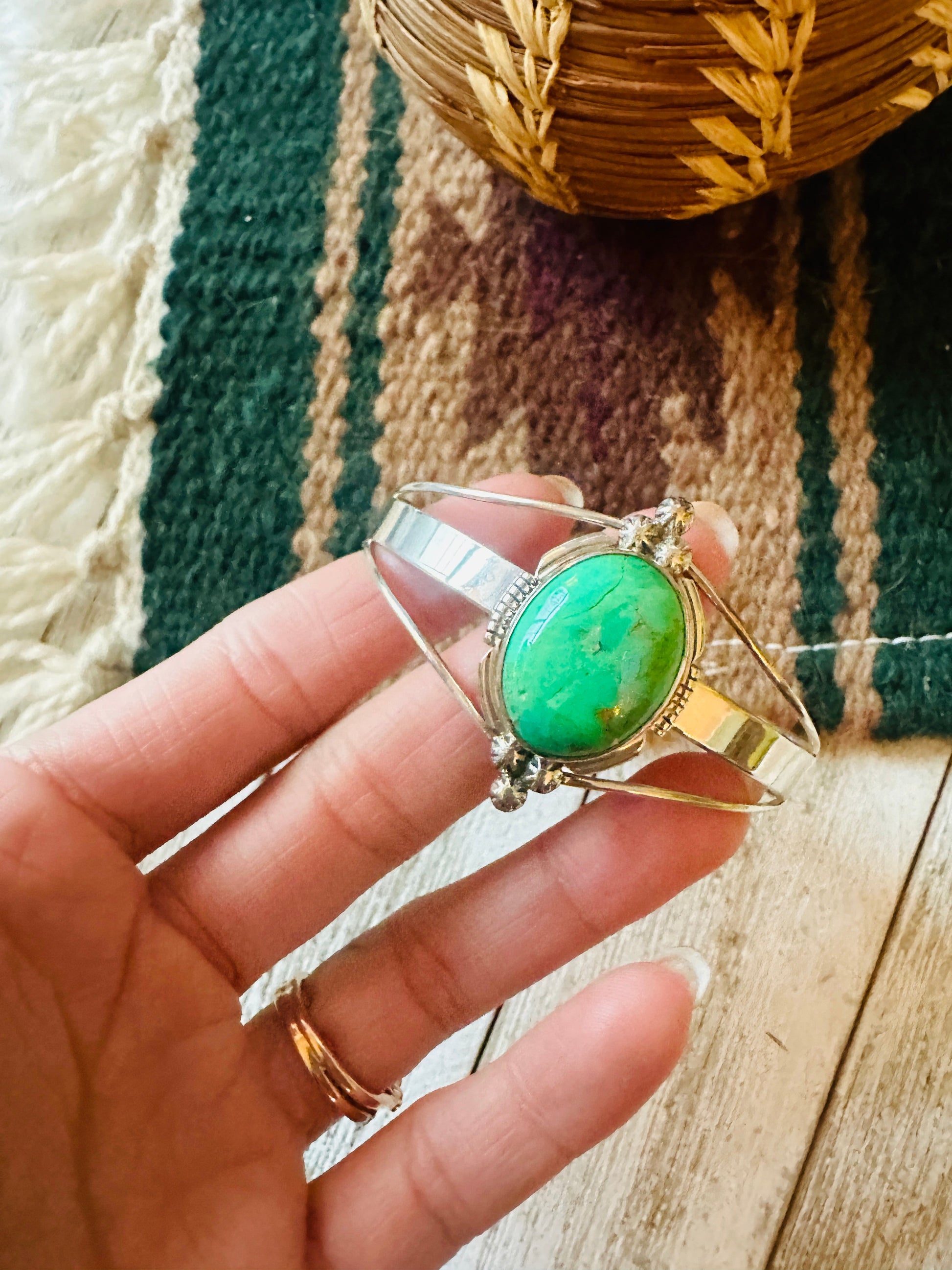 Navajo Green Kingman Turquoise & Sterling Silver Cuff Bracelet