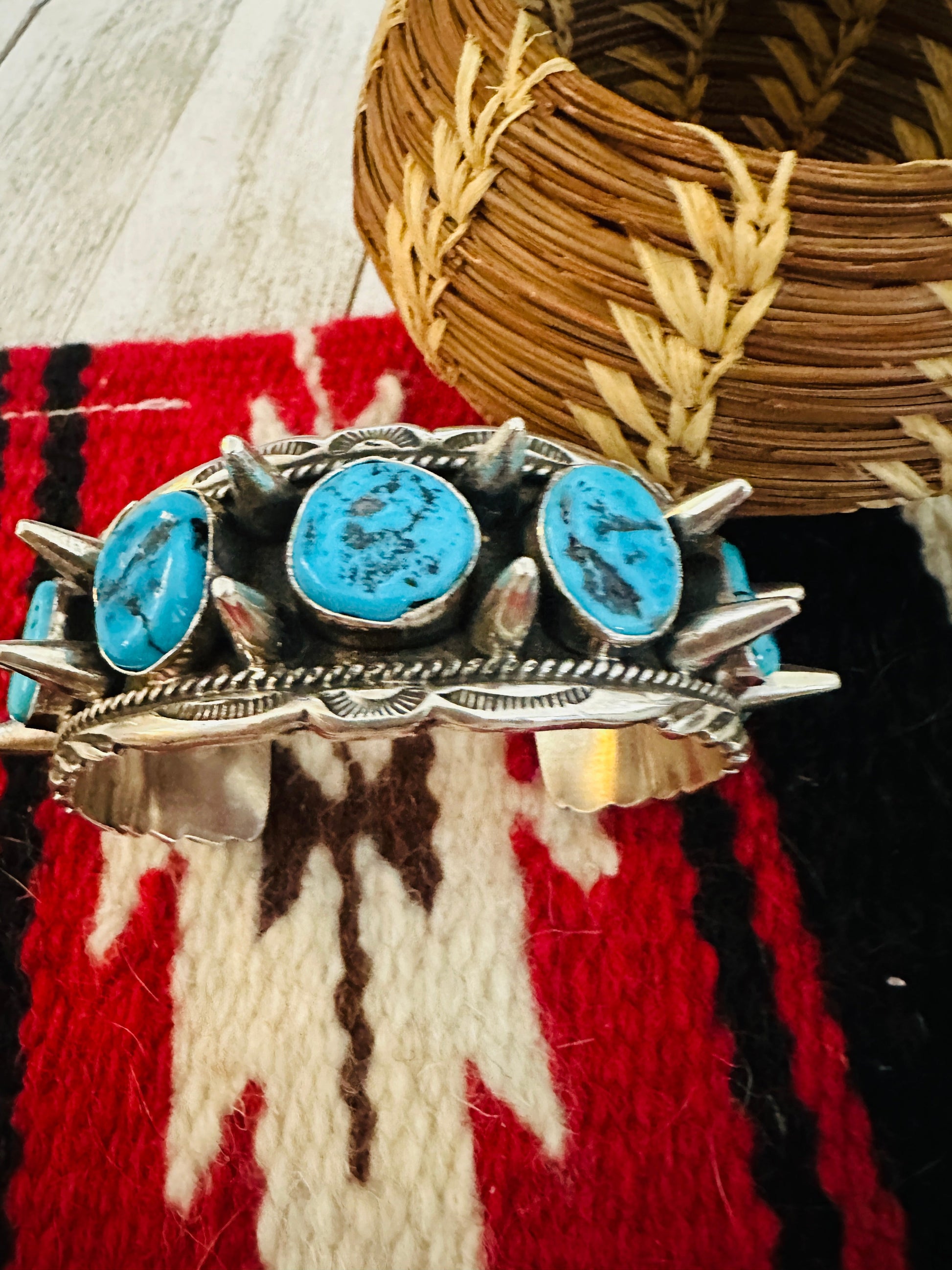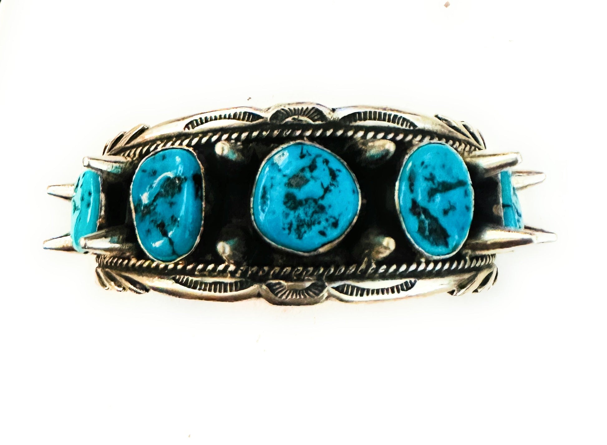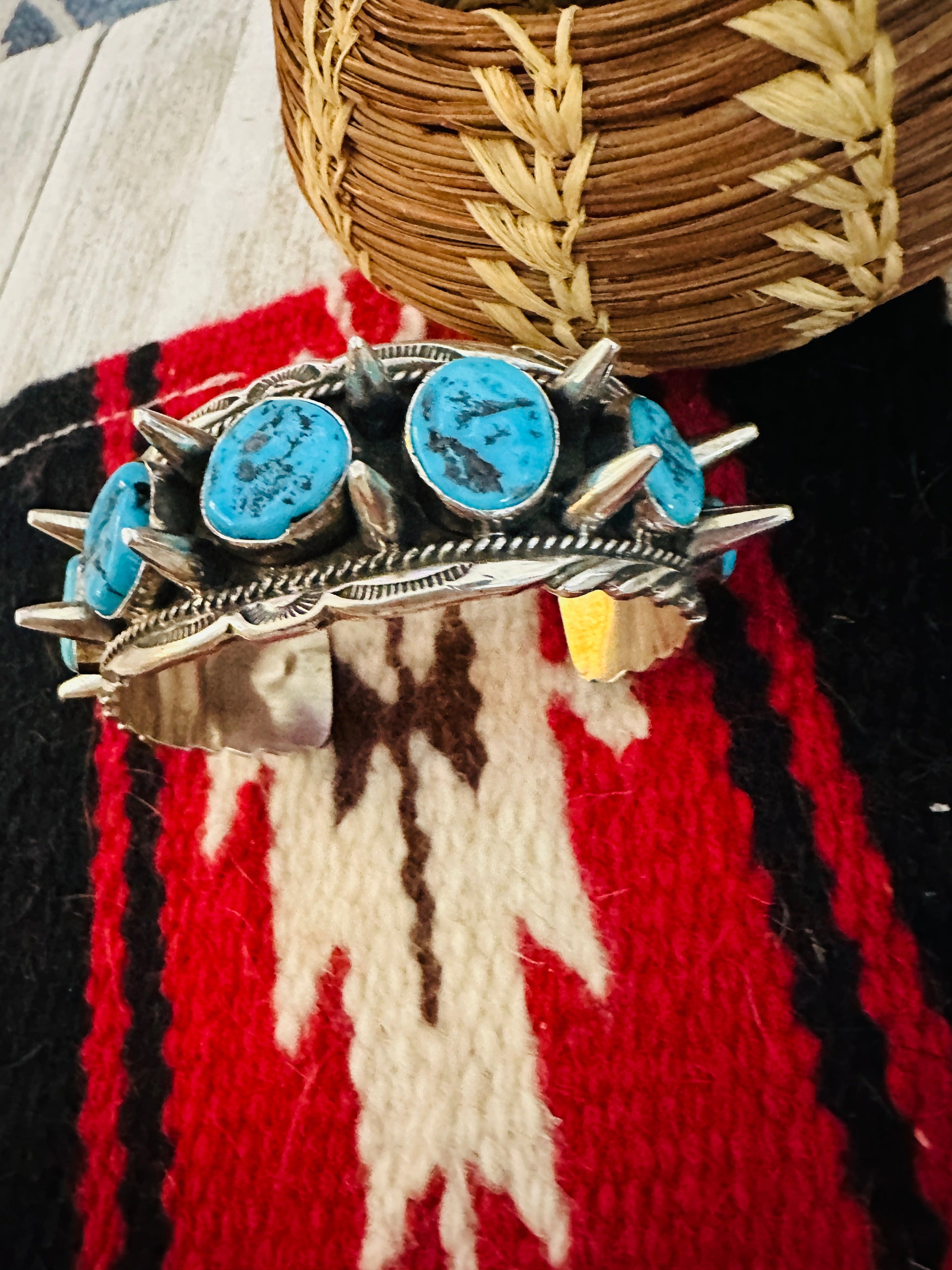 Navajo Kingman Turquoise & Sterling Silver Spiked Cuff Bracelet