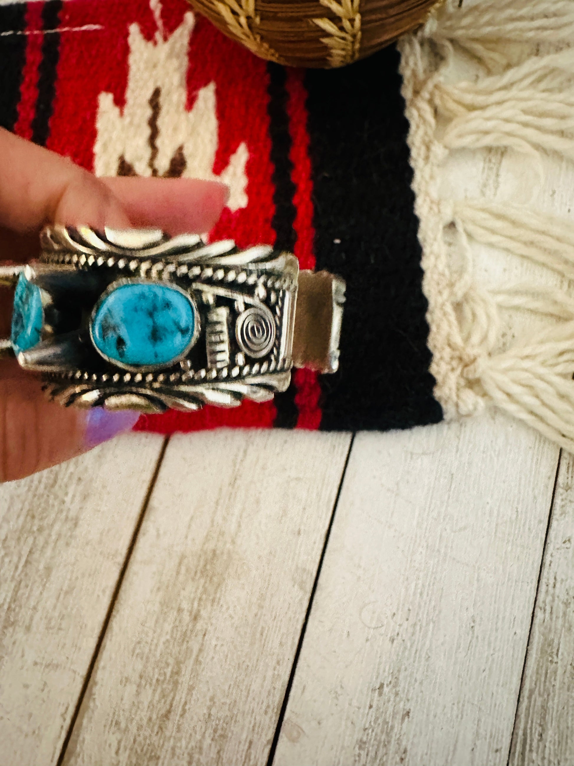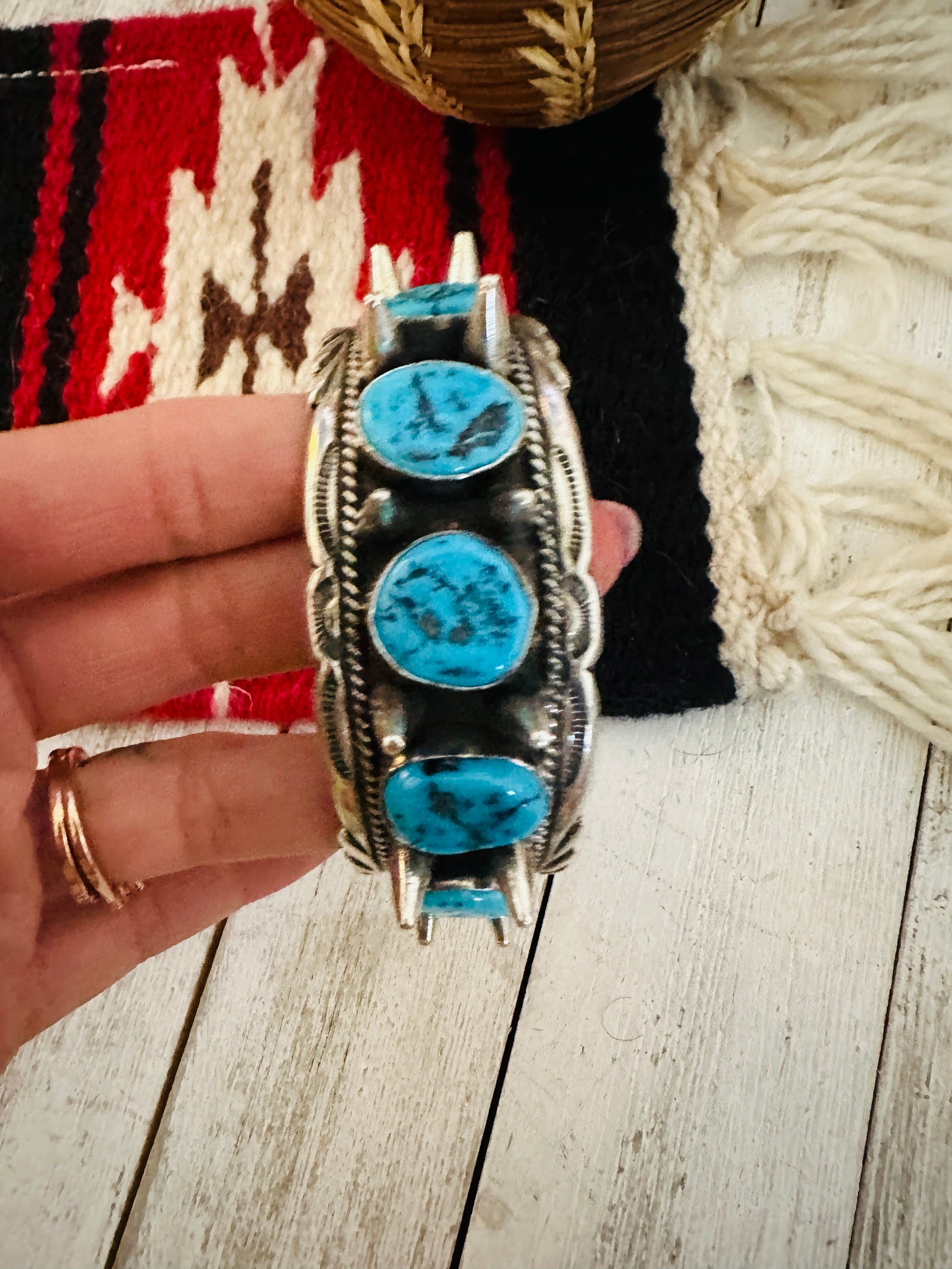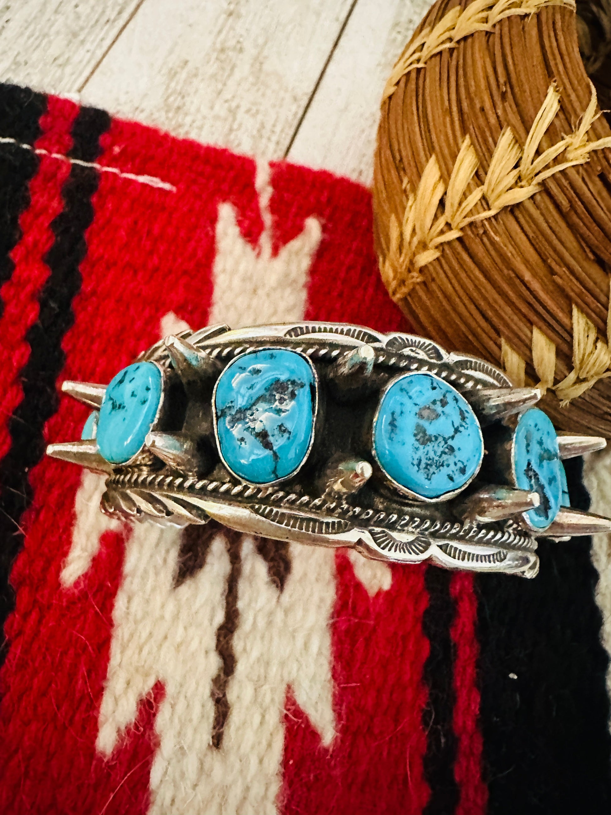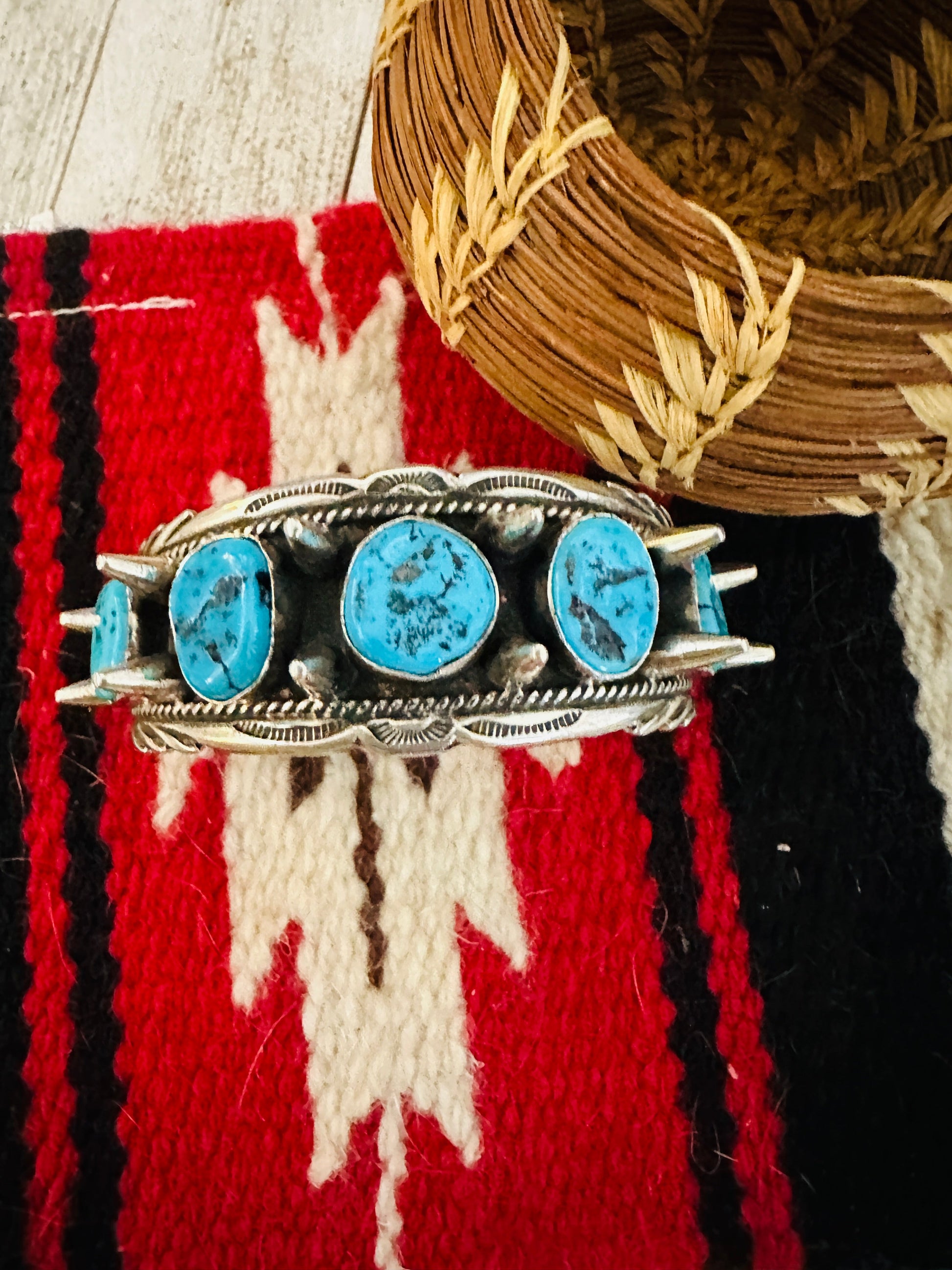 Navajo Kingman Turquoise & Sterling Silver Spiked Cuff Bracelet