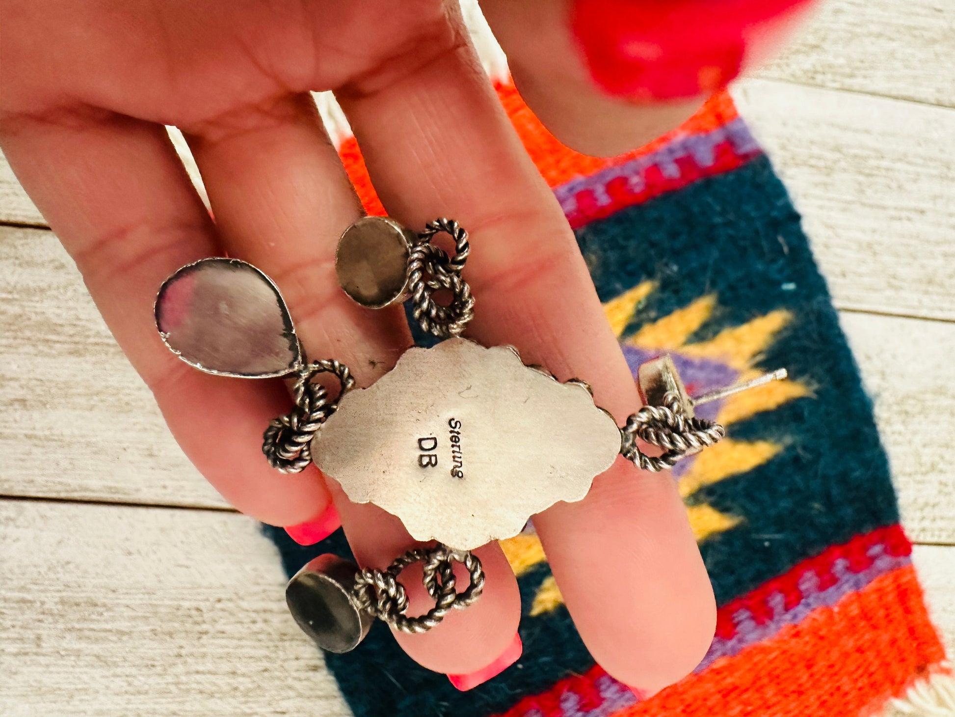 Beautiful Navajo Pink Mother of Pearl & Sterling Silver dangle earrings. Stamped Sterling and signed by the artist. The beauties measure 3 1/8 inches long and 1 1/4 inches wide.