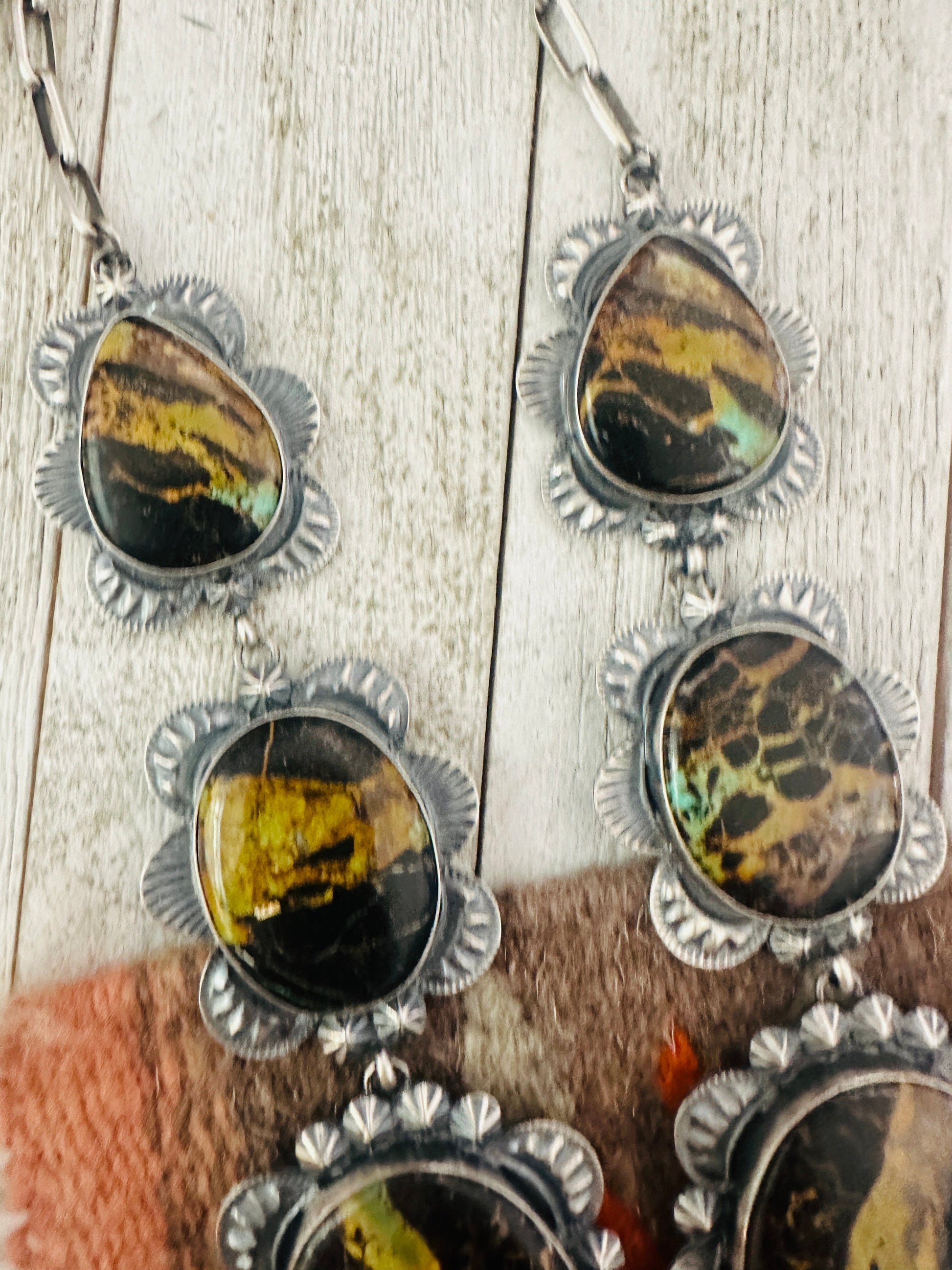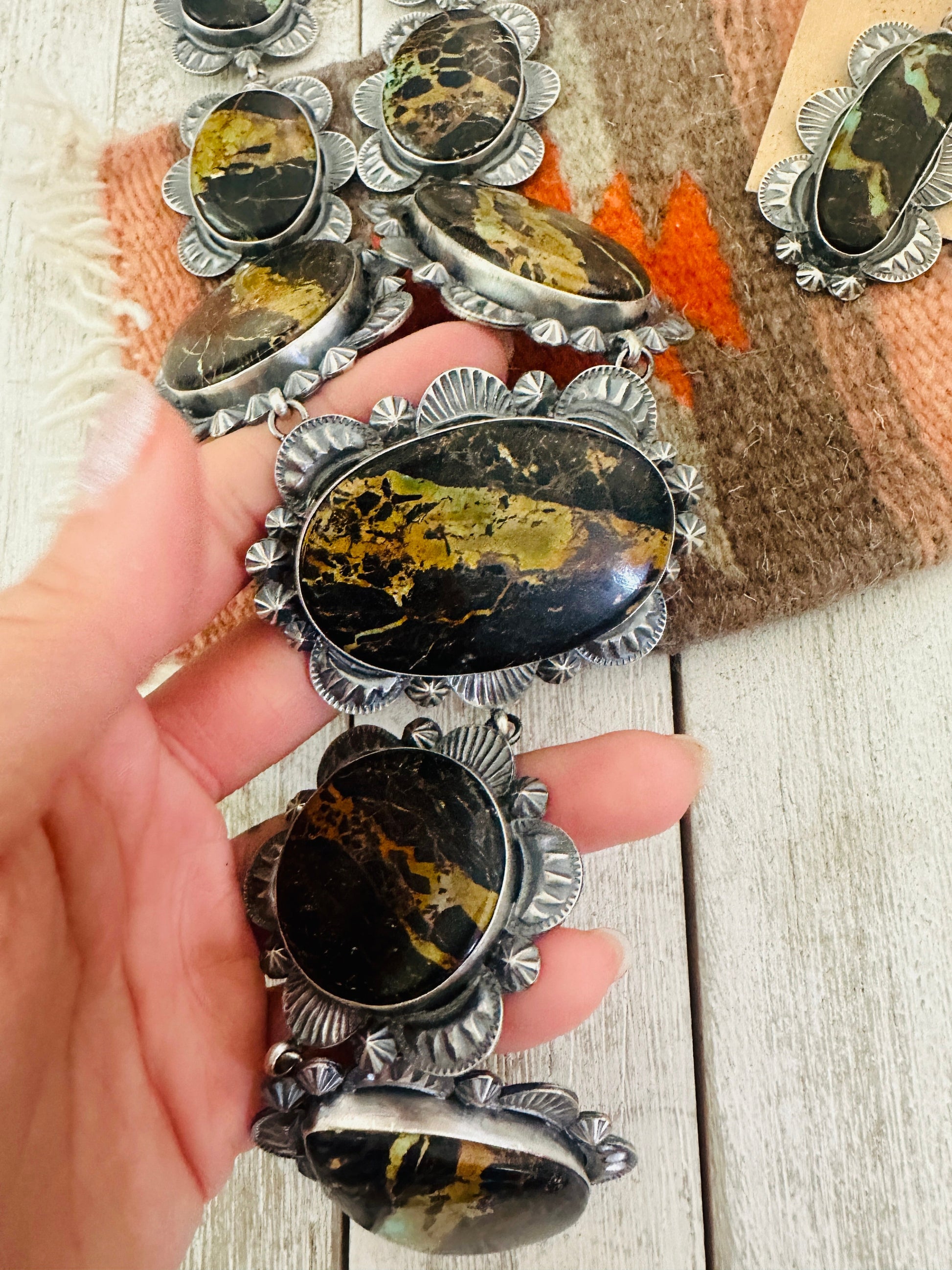 Navajo Ribbon Turquoise & Sterling Silver Necklace Set