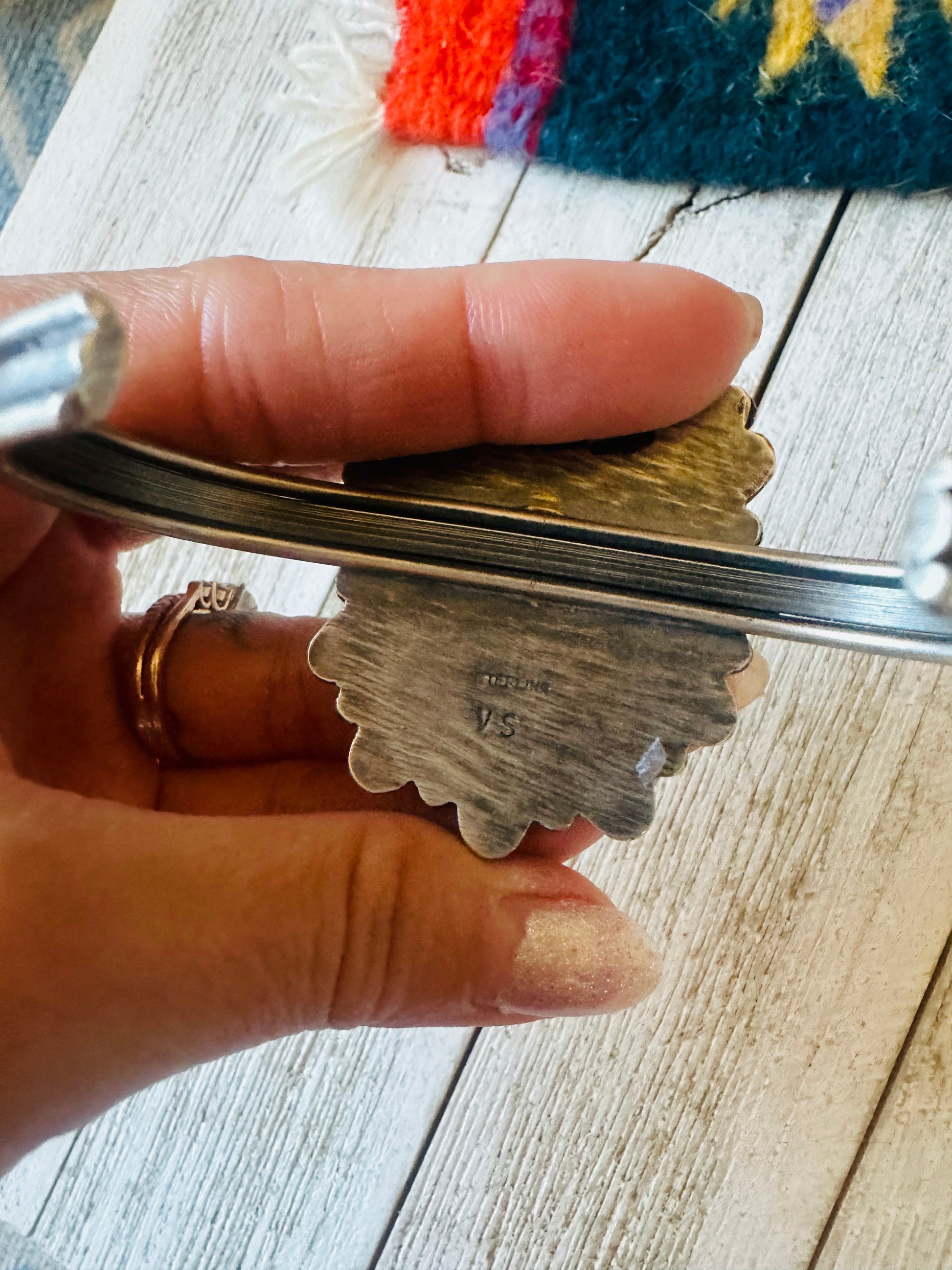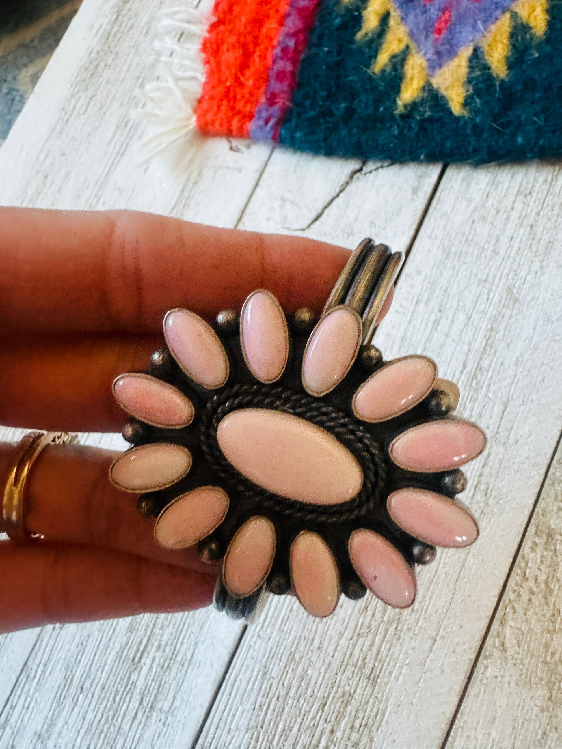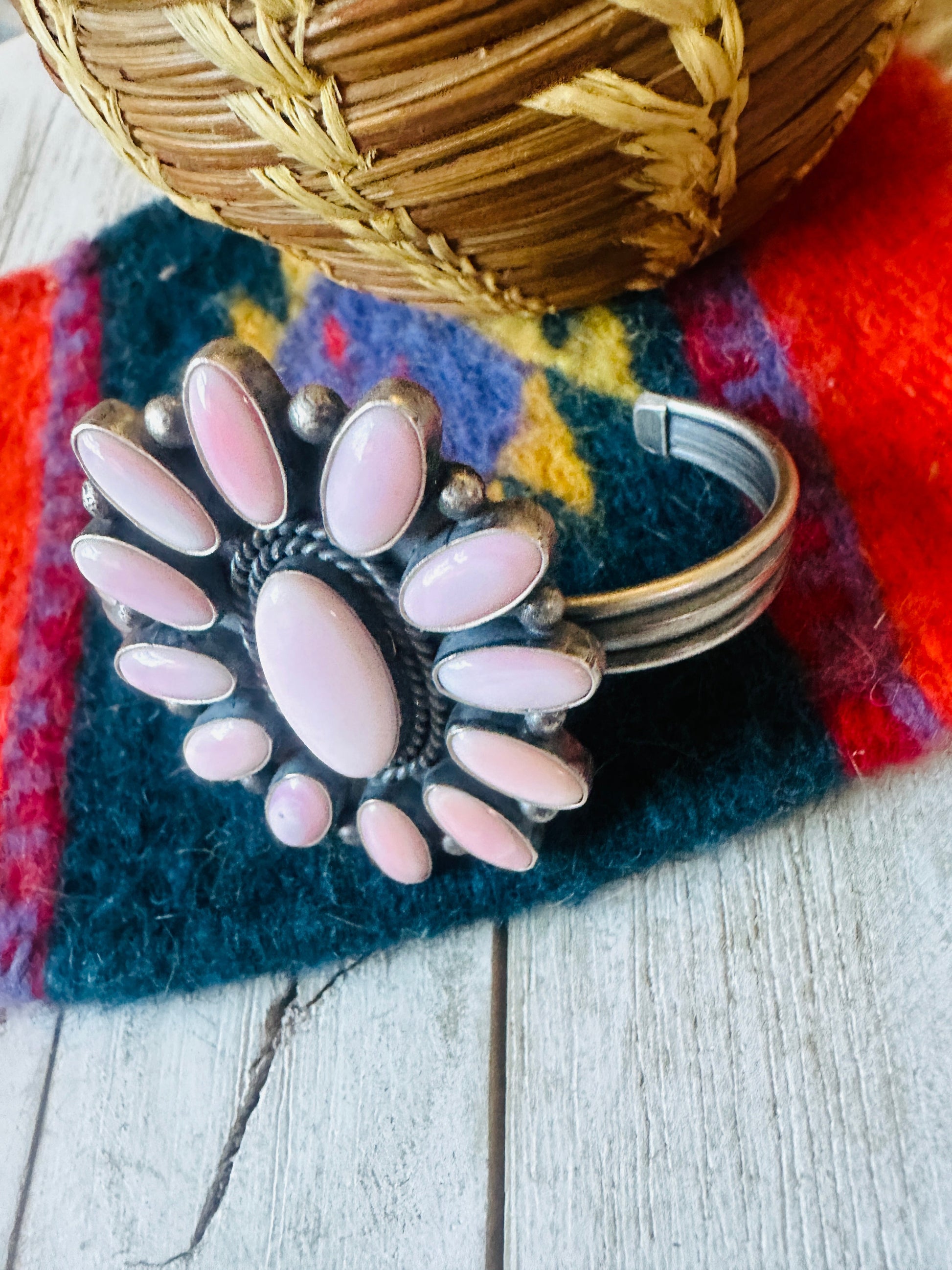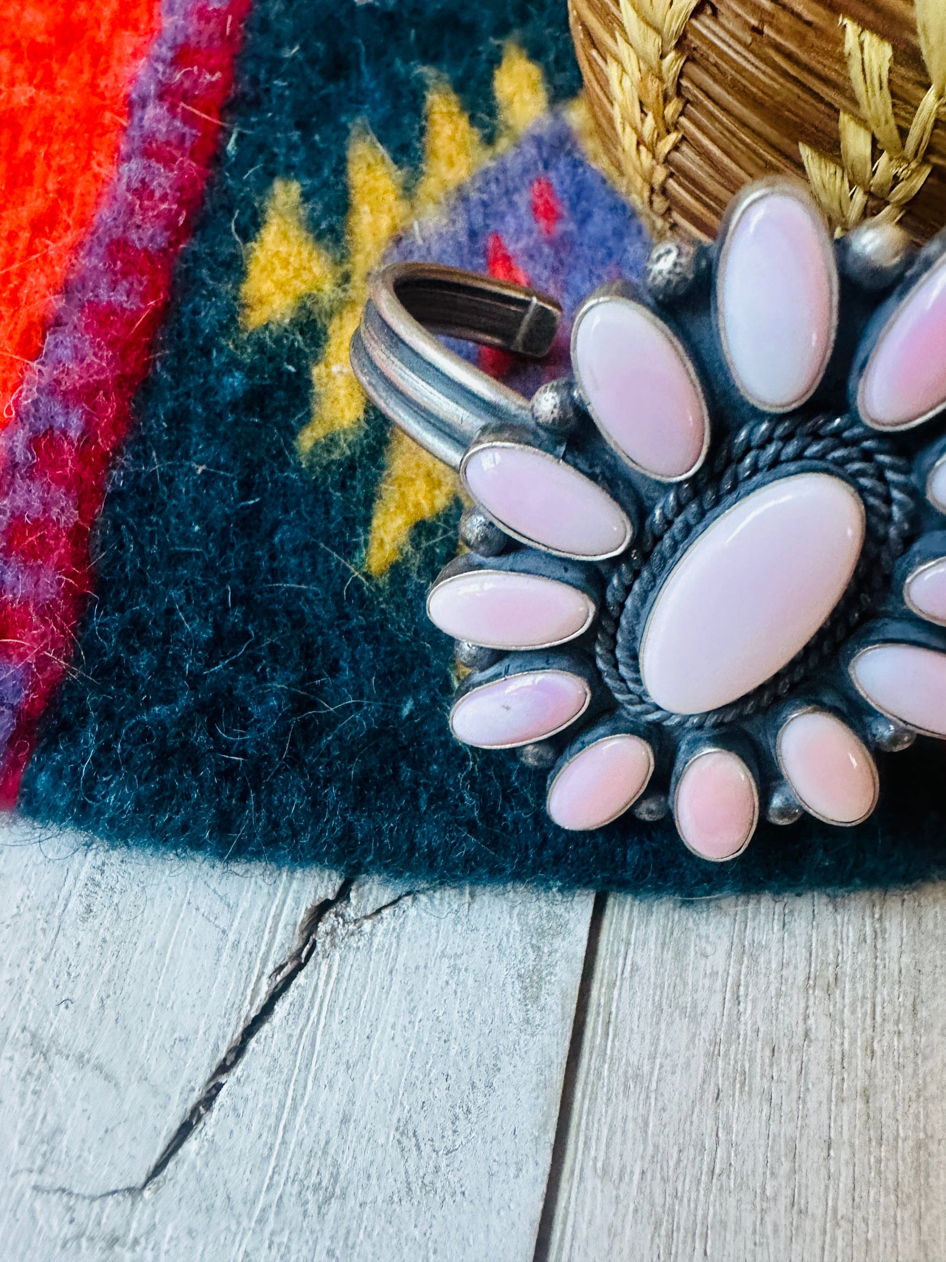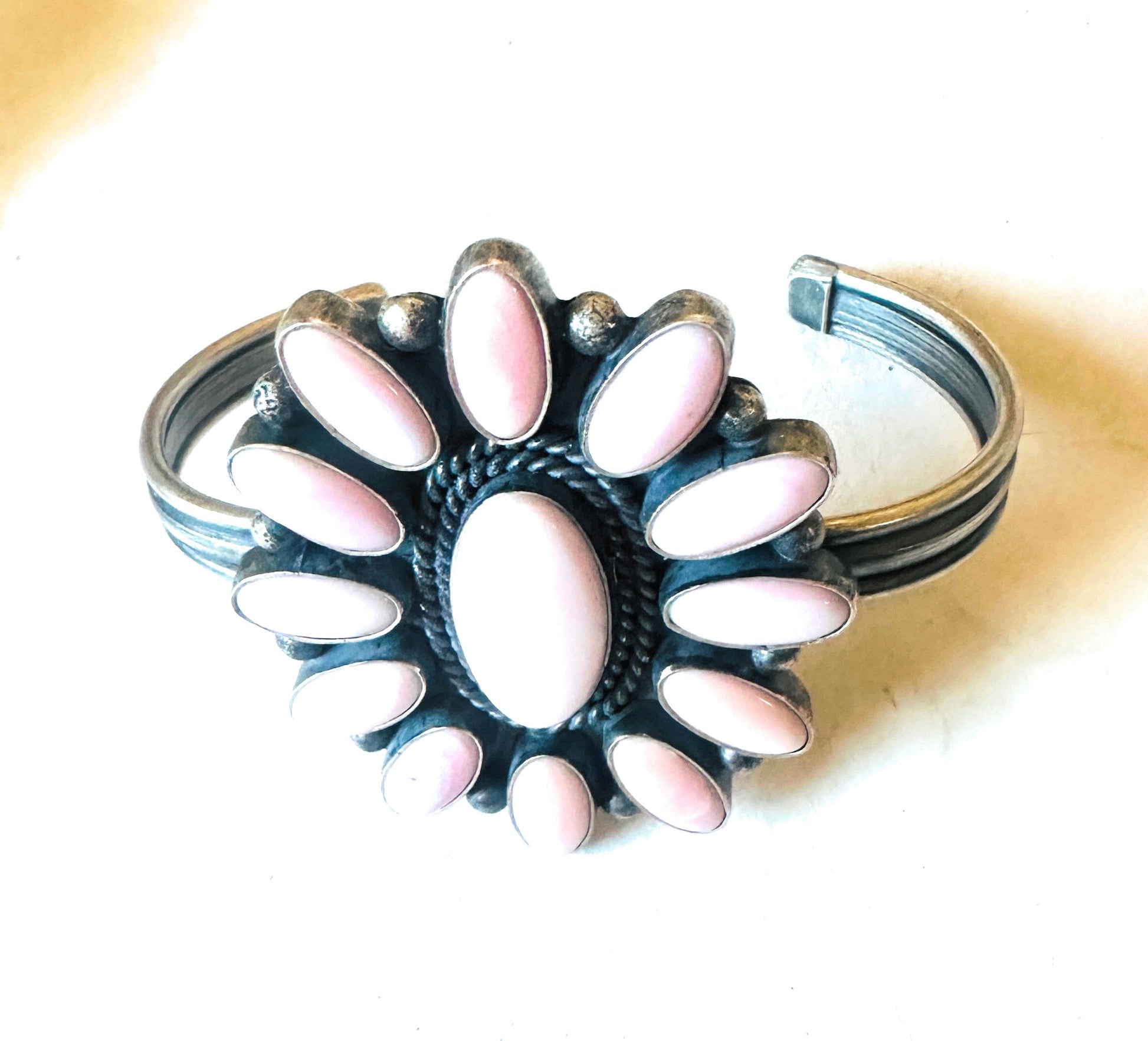 Navajo Queen Pink Conch Shell & Sterling Silver Cluster Cuff Bracelet