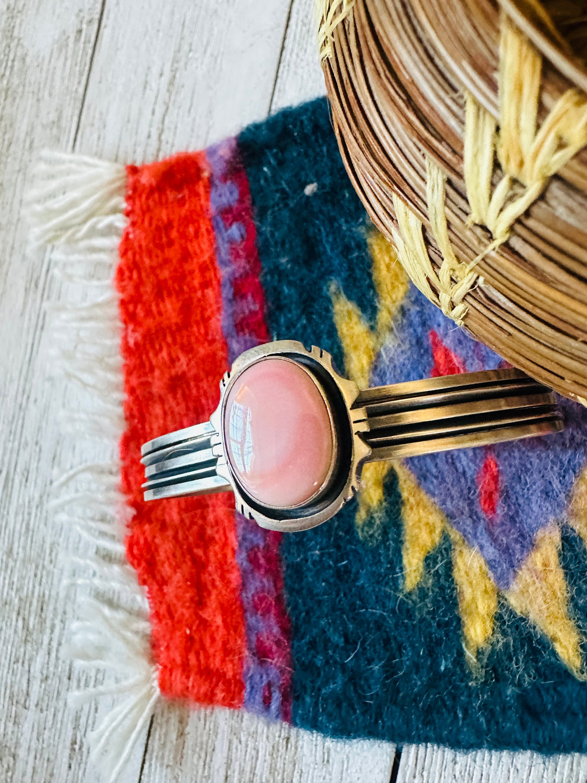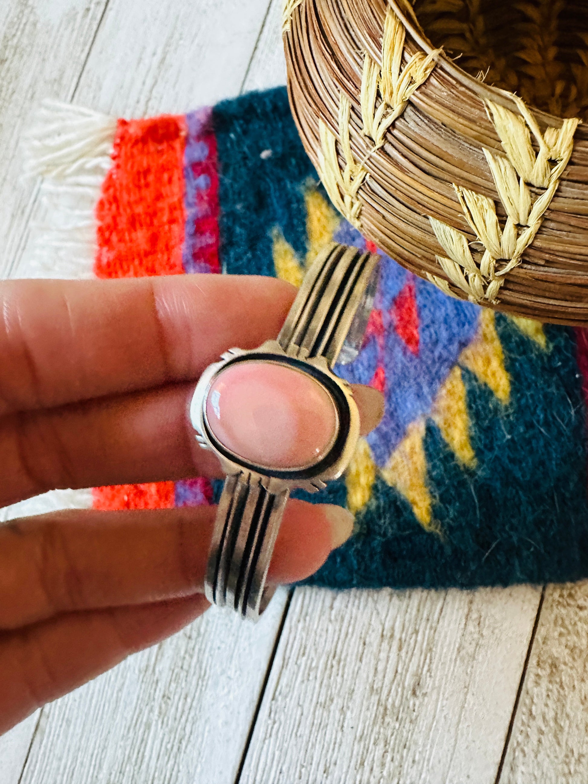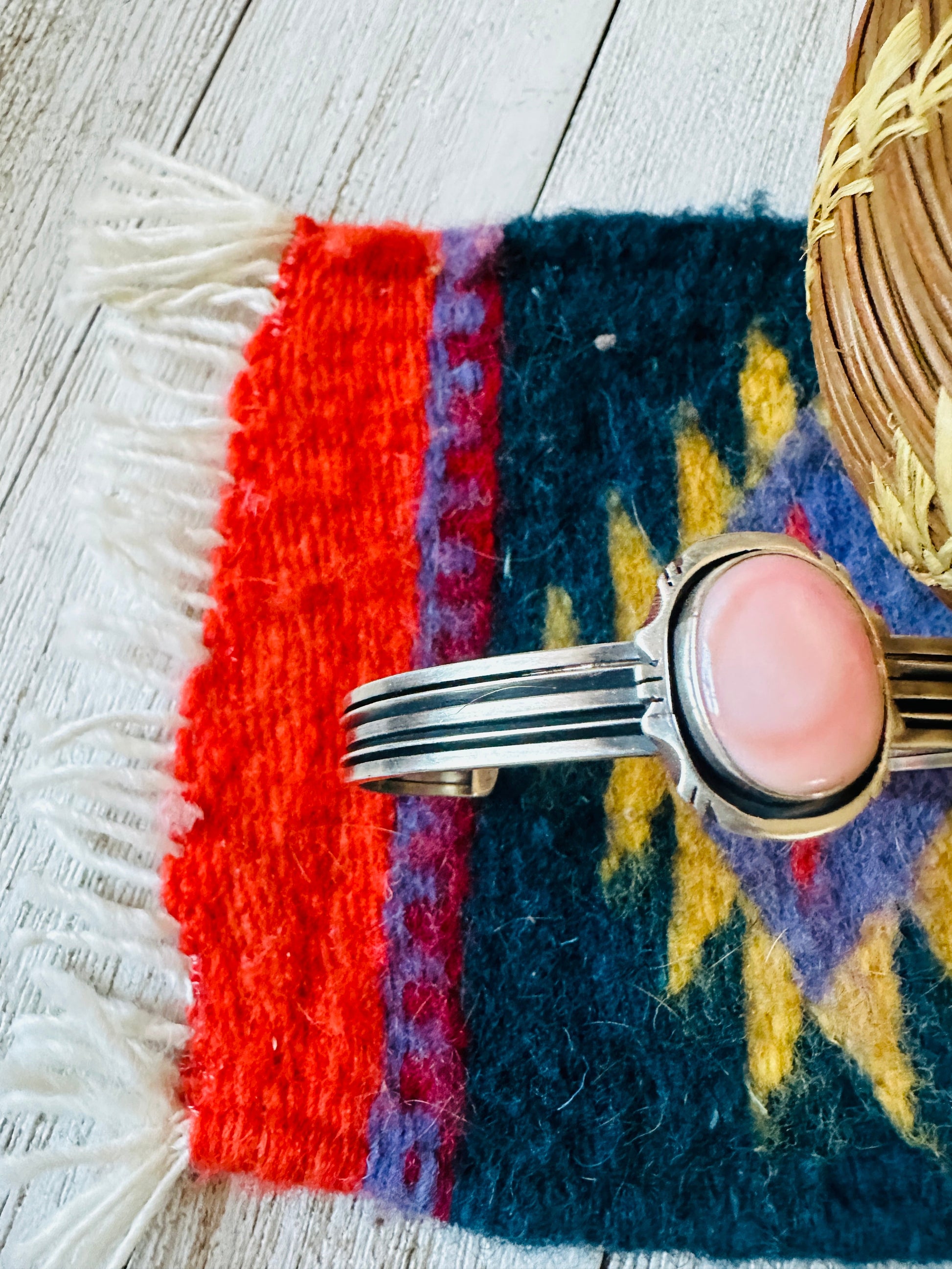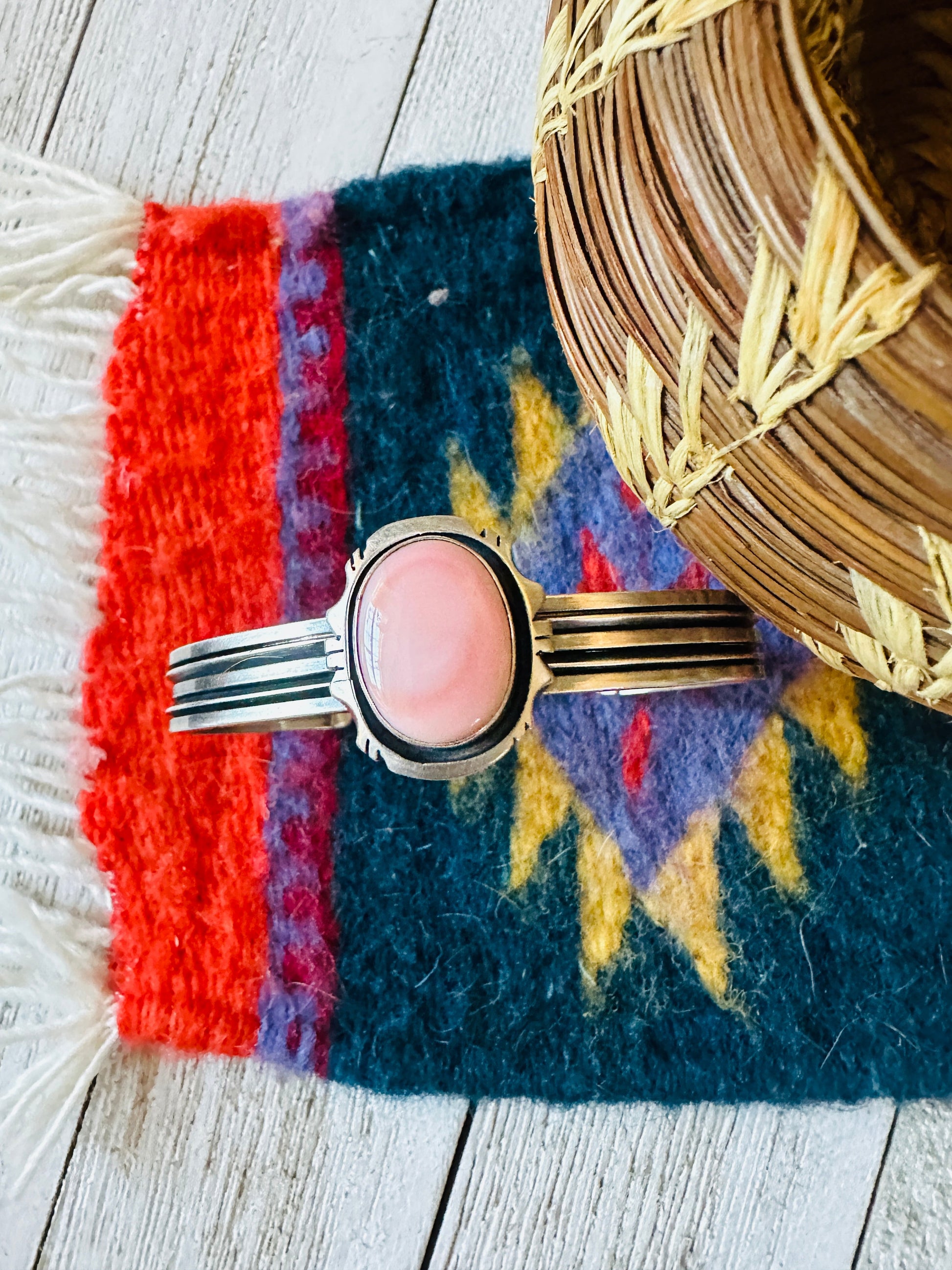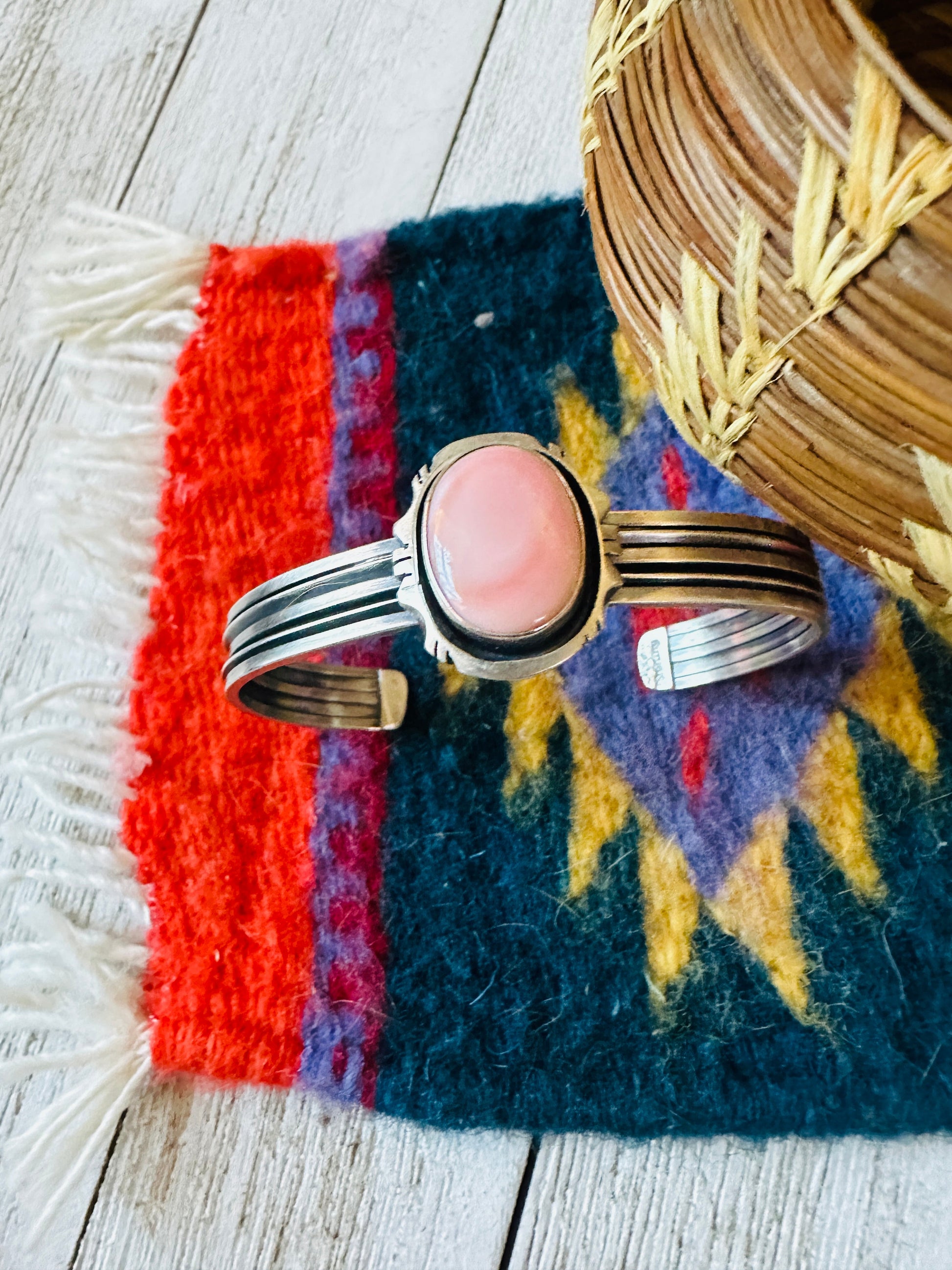 Navajo Queen Pink Conch Shell & Sterling Silver Cuff Bracelet