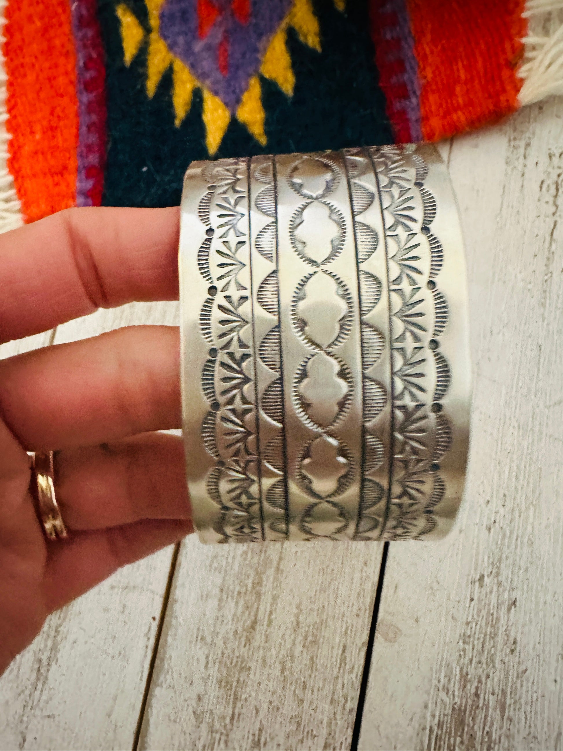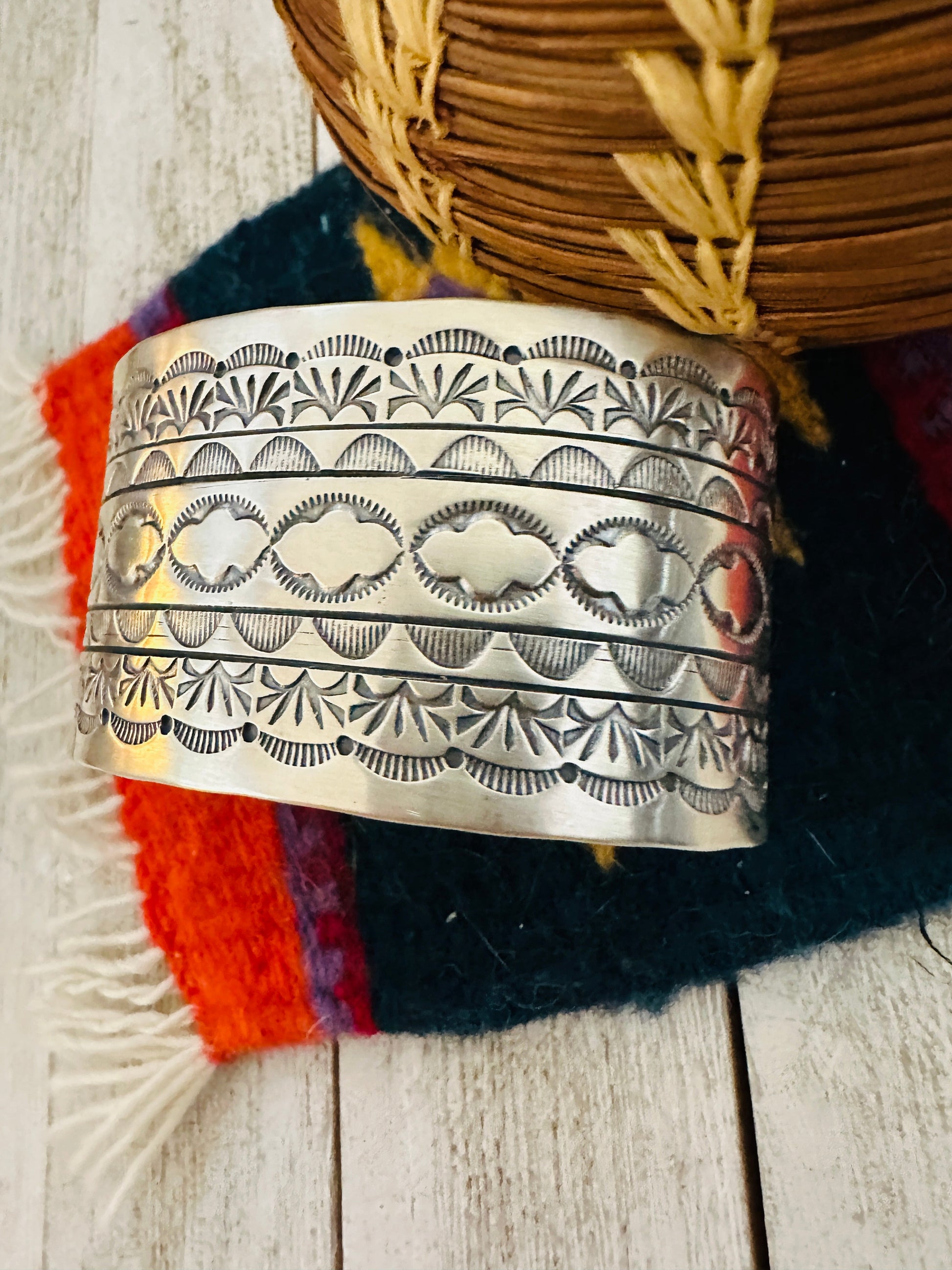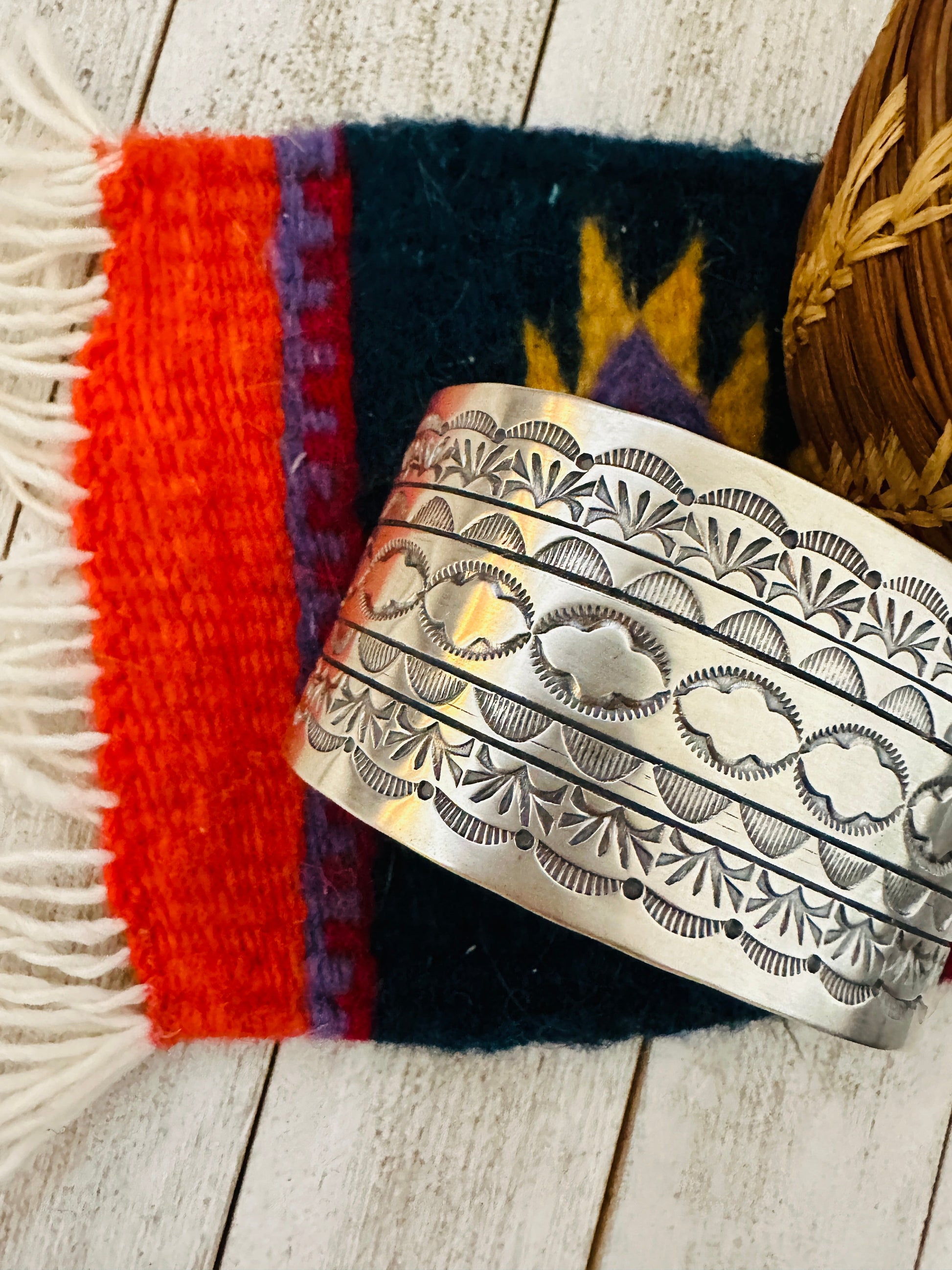 Navajo Hand Stamped Sterling Silver Cuff Bracelet
