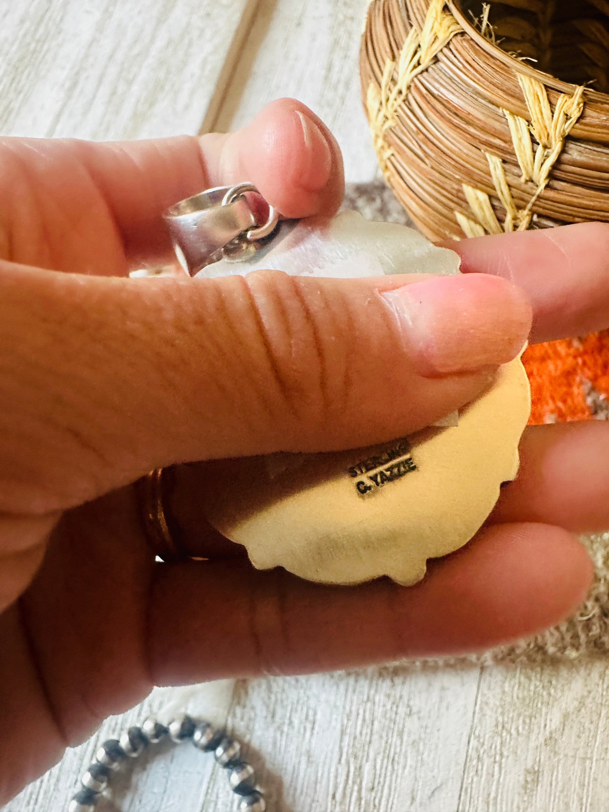 Gorgeous Navajo Kingman Turquoise and Sterling Silver Cluster Pendant. Such a beautiful stone! Measures 2 5/8 inches long and 1 5/8 inches wide. Bale measures 3/8 of an inch across. Stamped Sterling and signed by the artist.