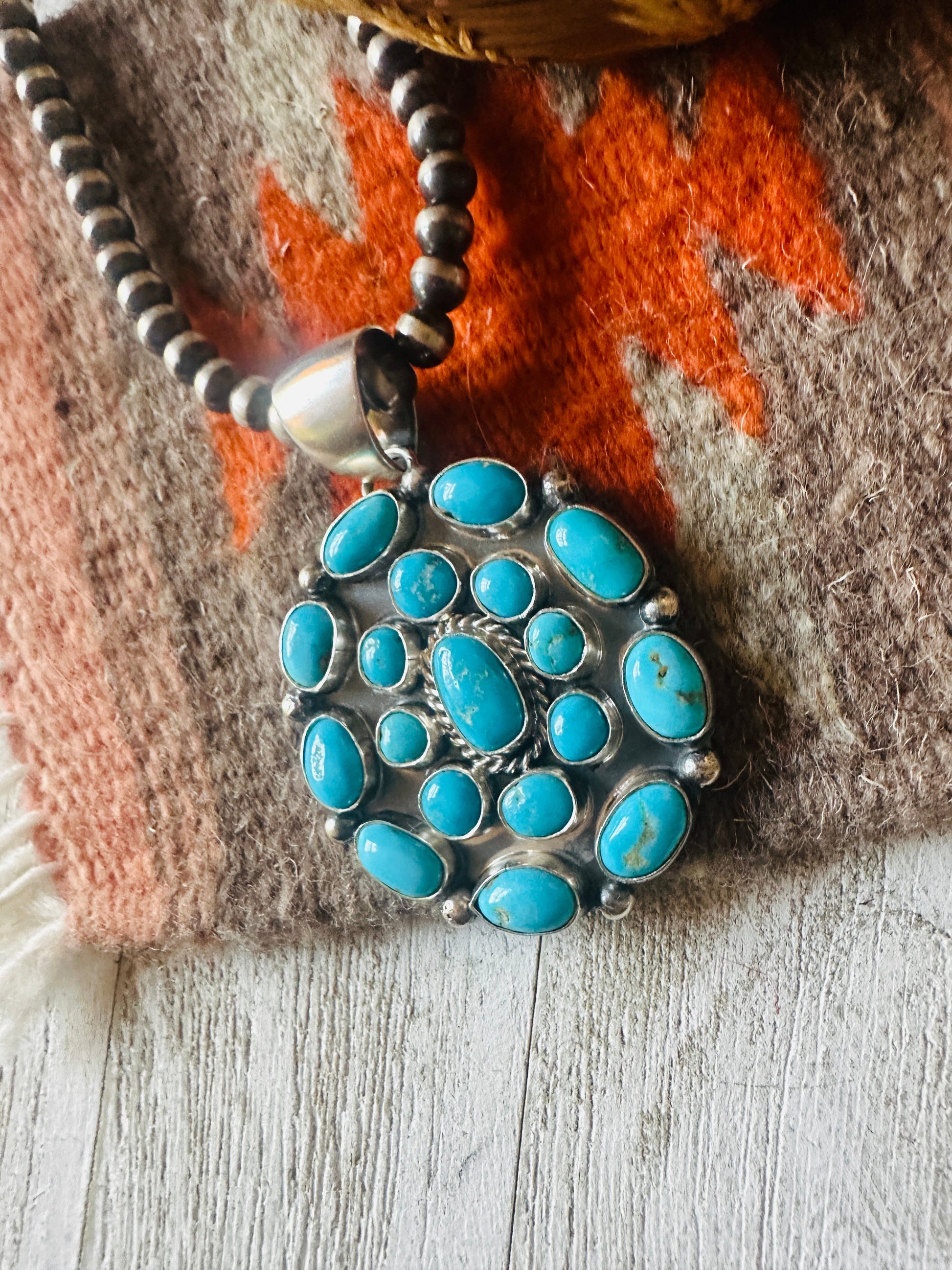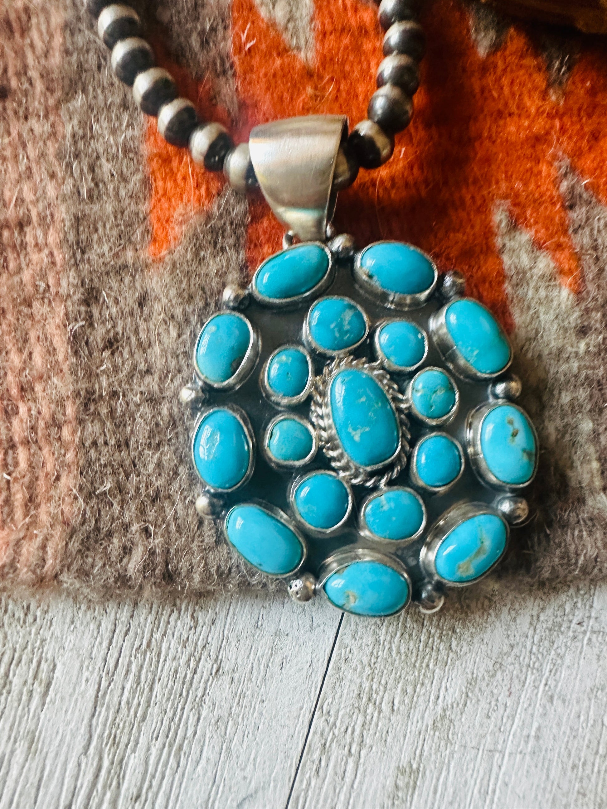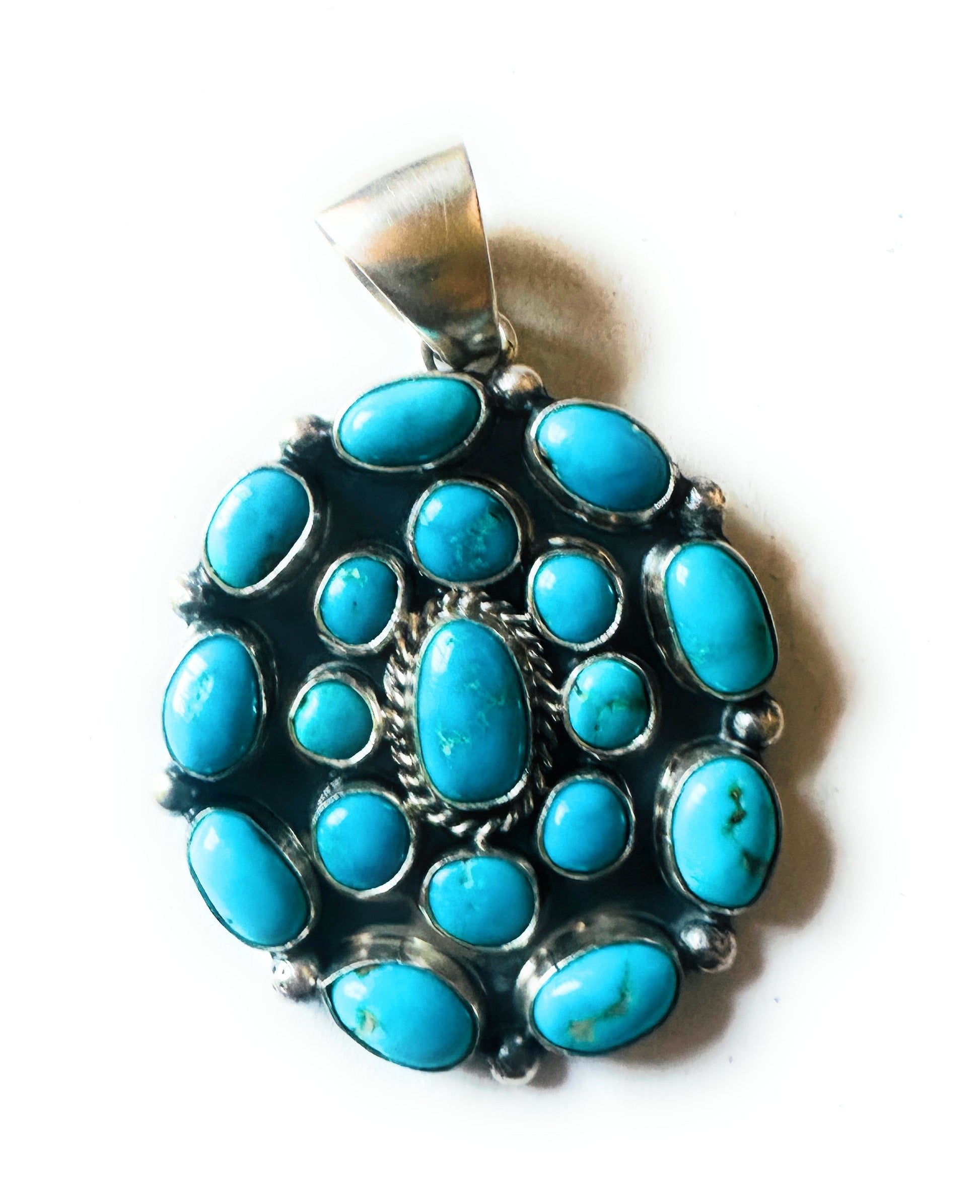 Navajo Sterling Silver & Kingman Turquoise Cluster Pendant