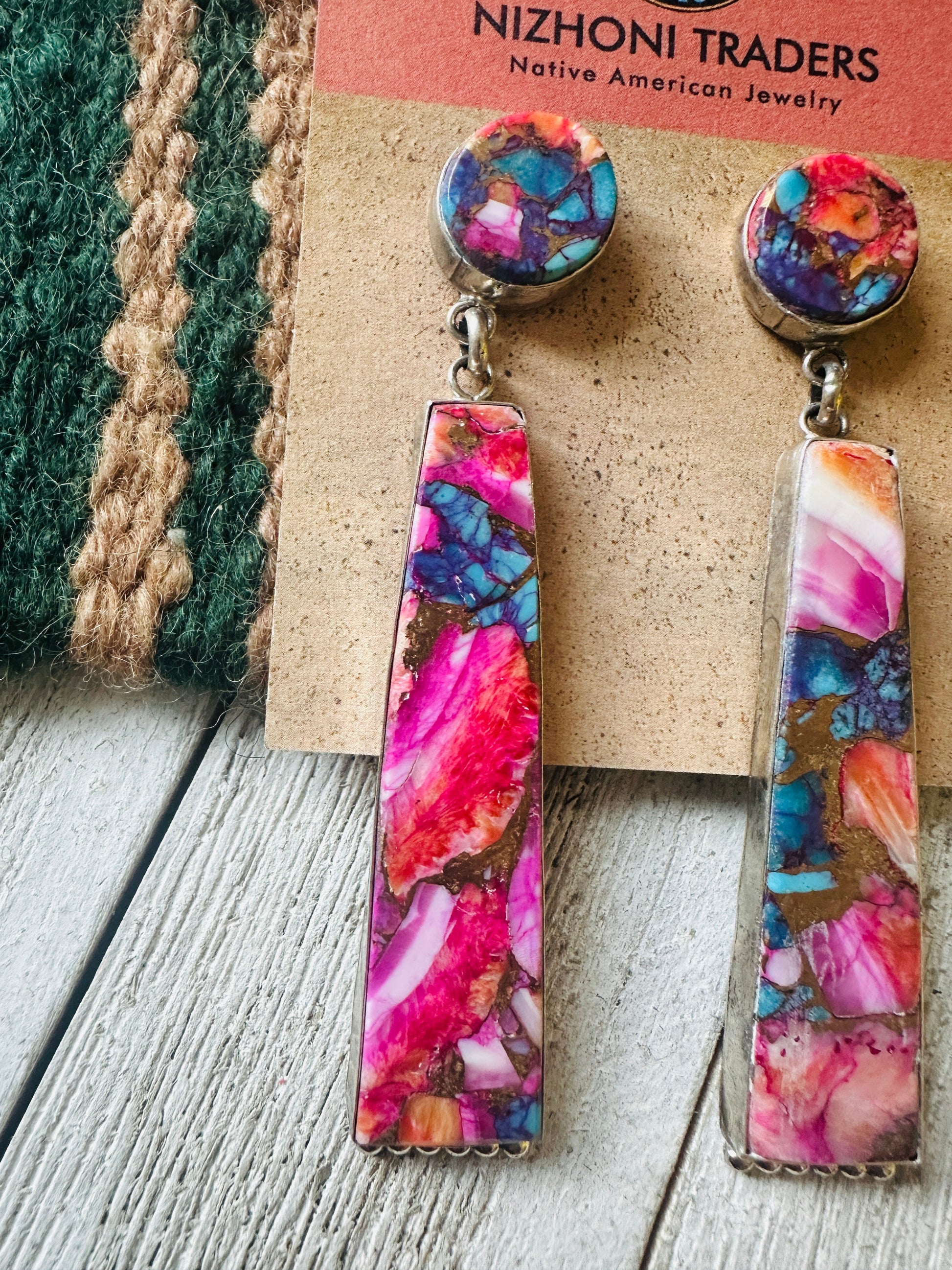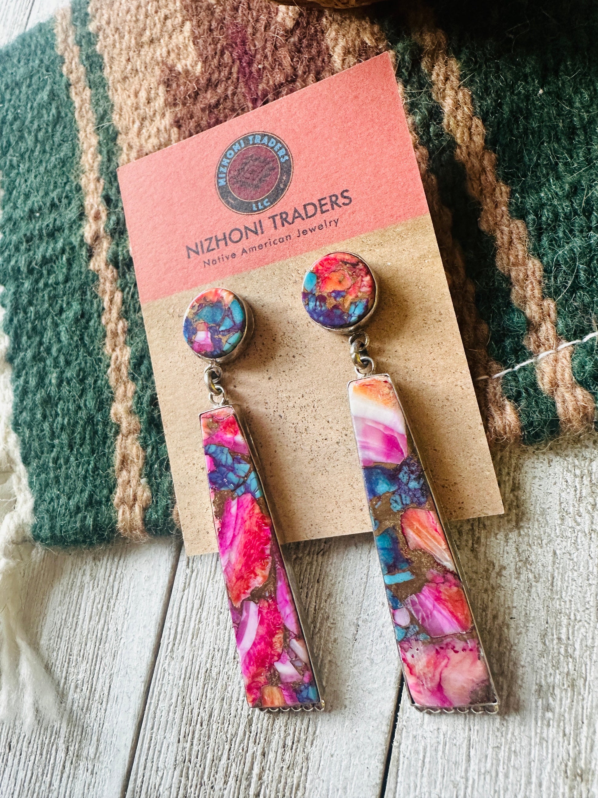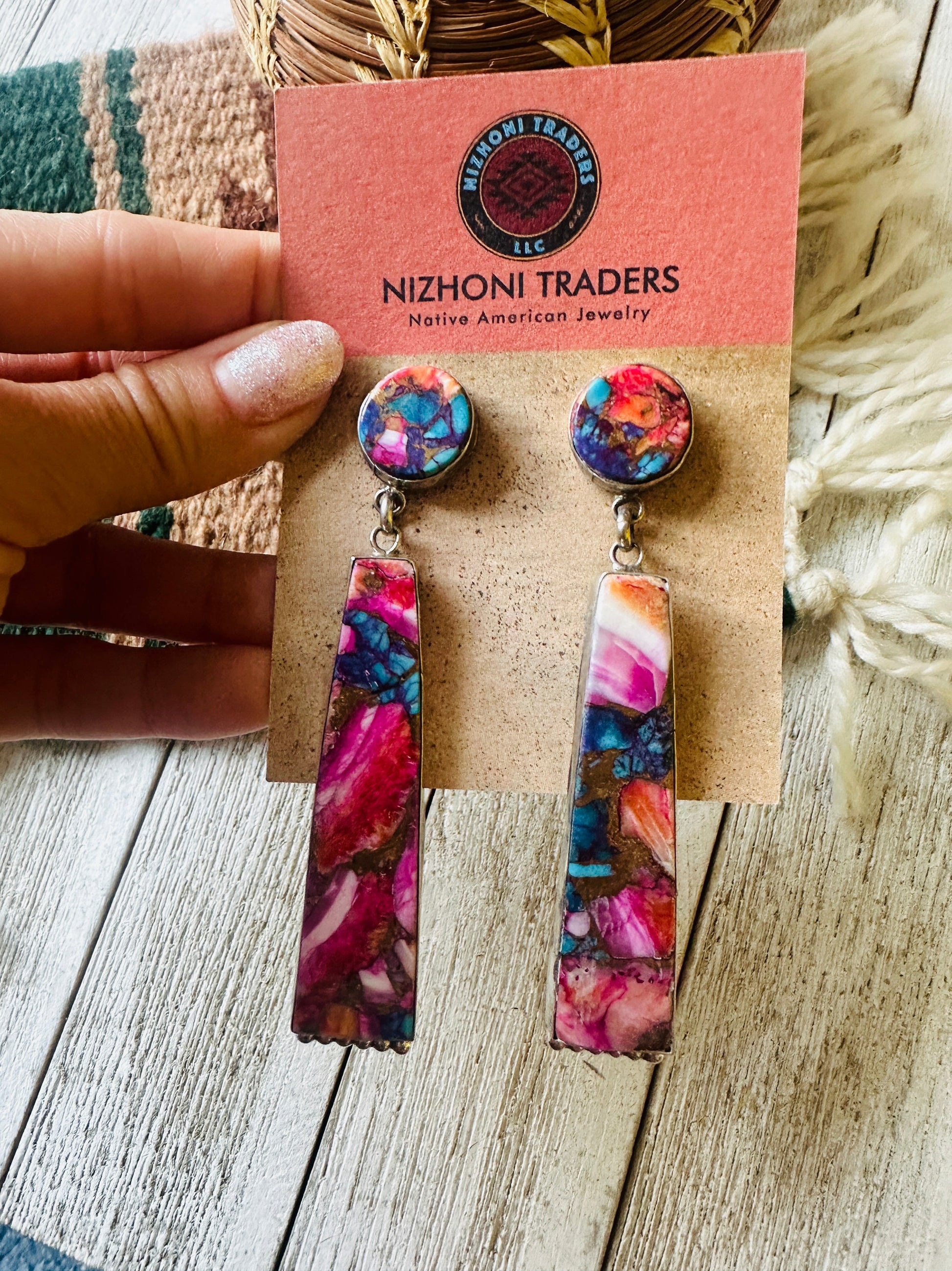 Navajo Sterling Silver & Pink Dream Mojave Slab Dangle Earrings by Jacqueline Silver