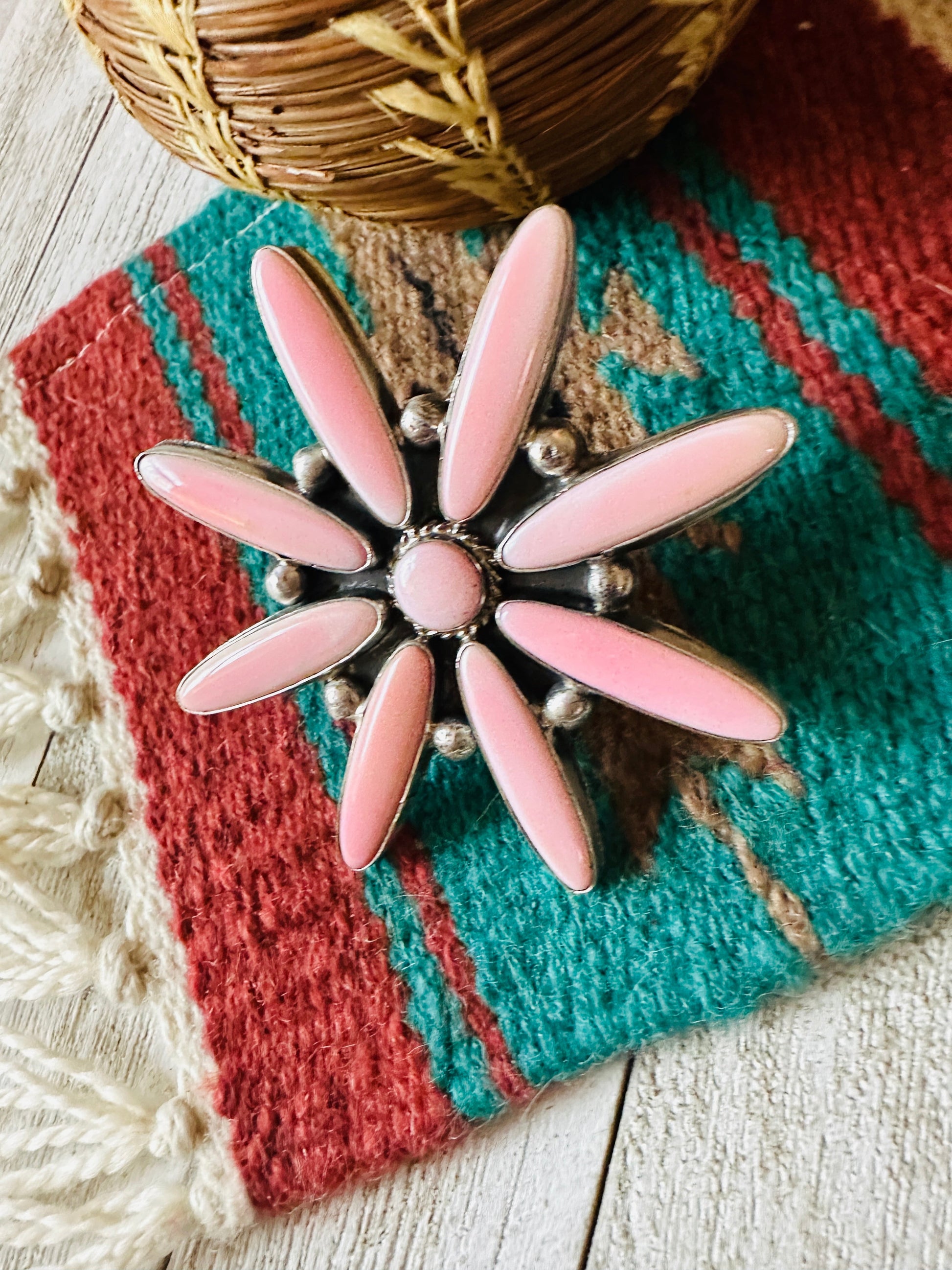 Navajo Sterling Silver & Queen Pink Conch Adjustable Flower Ring