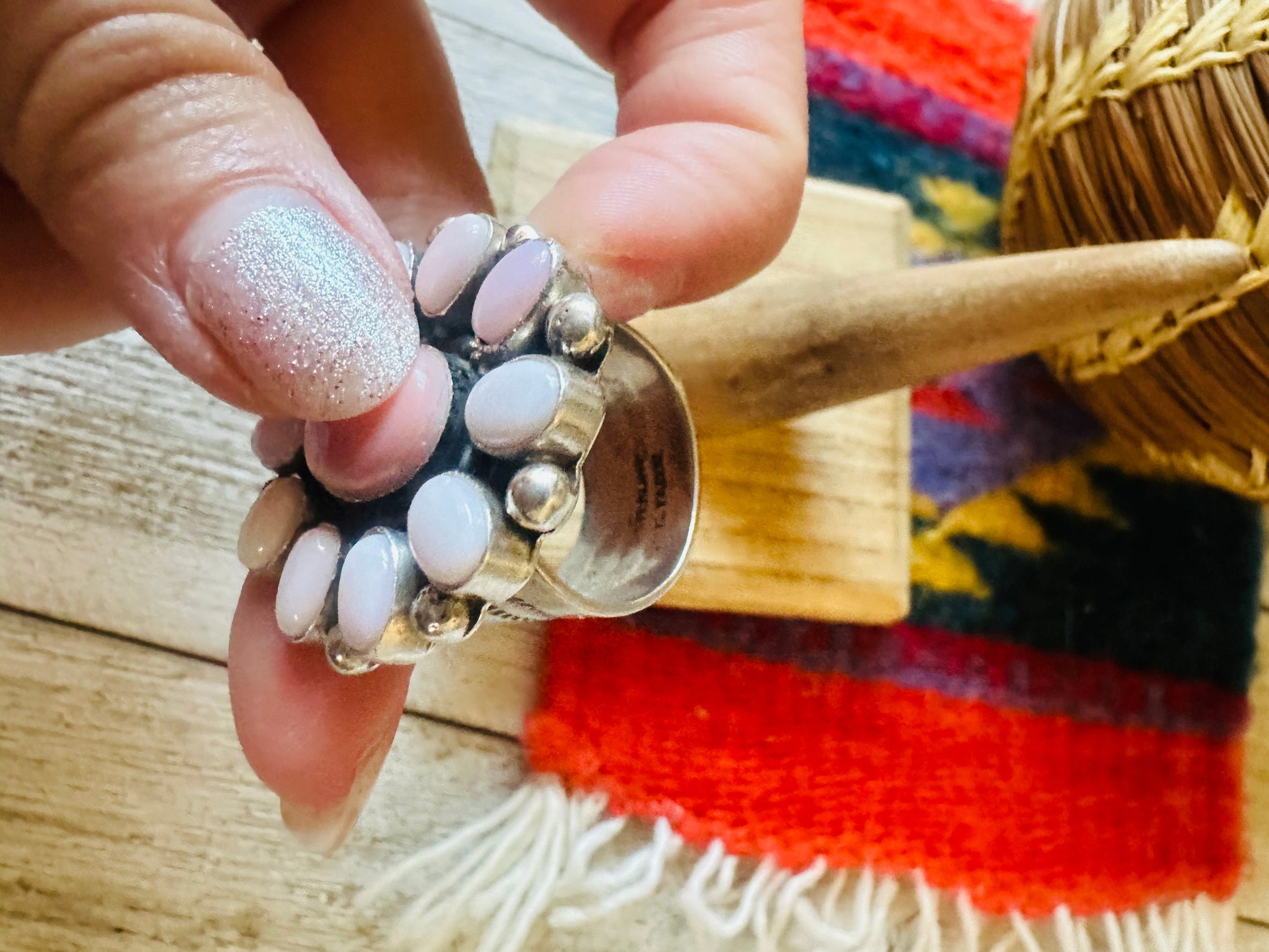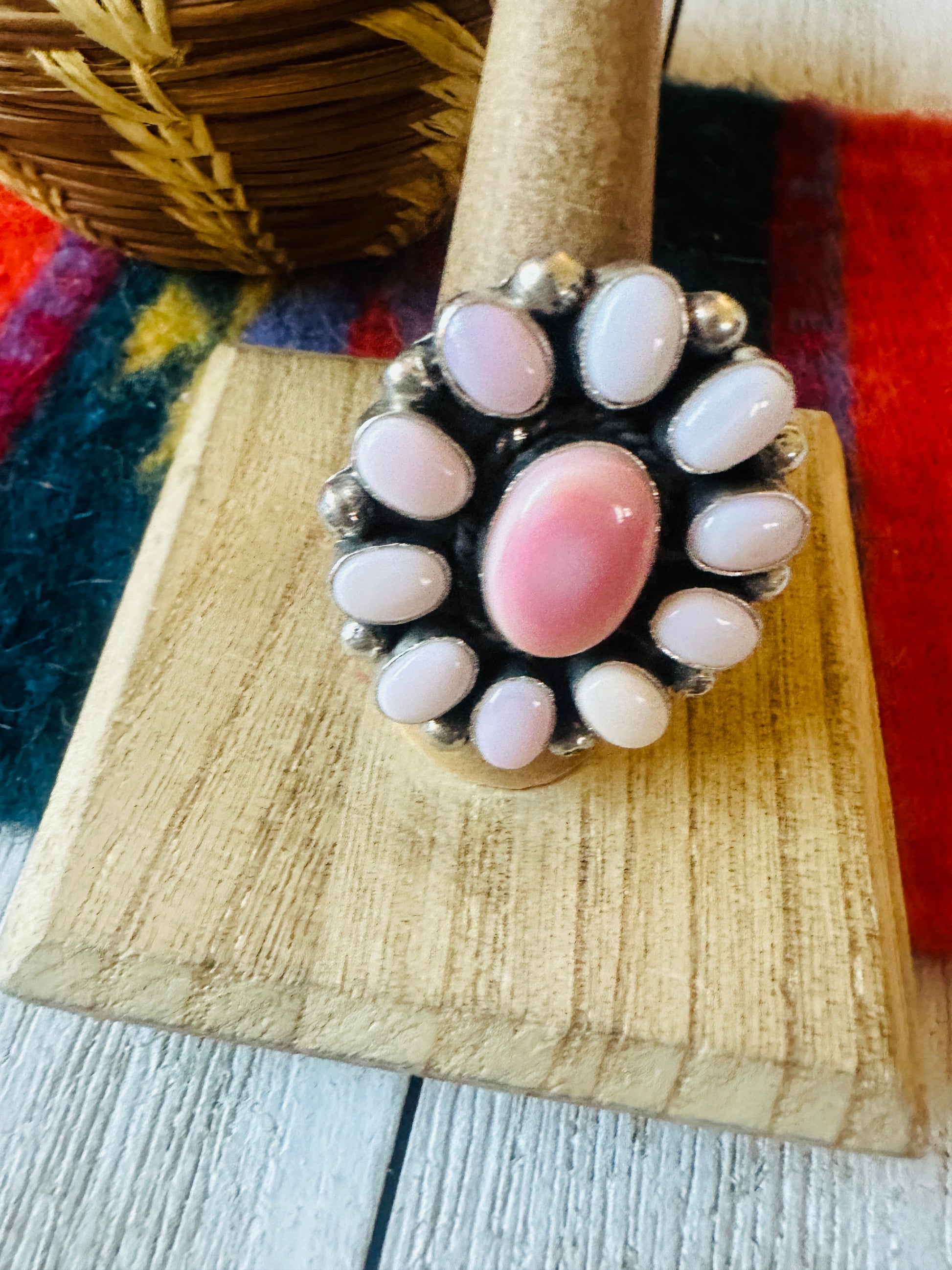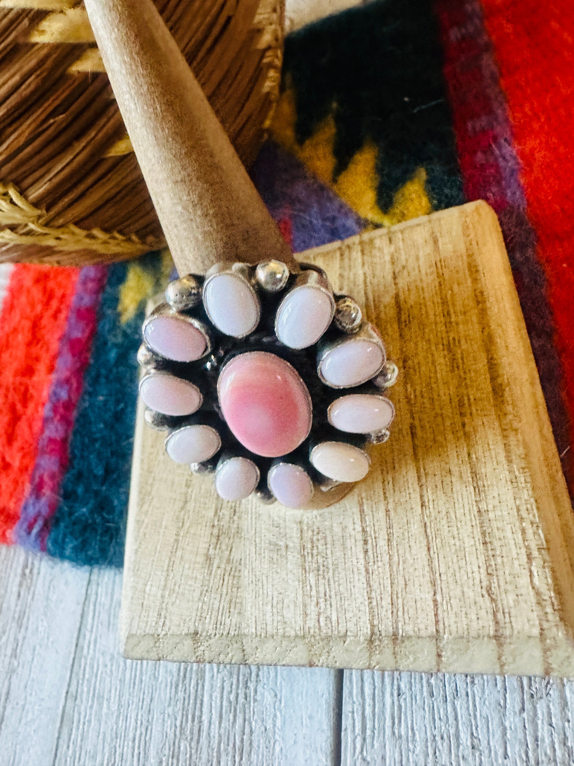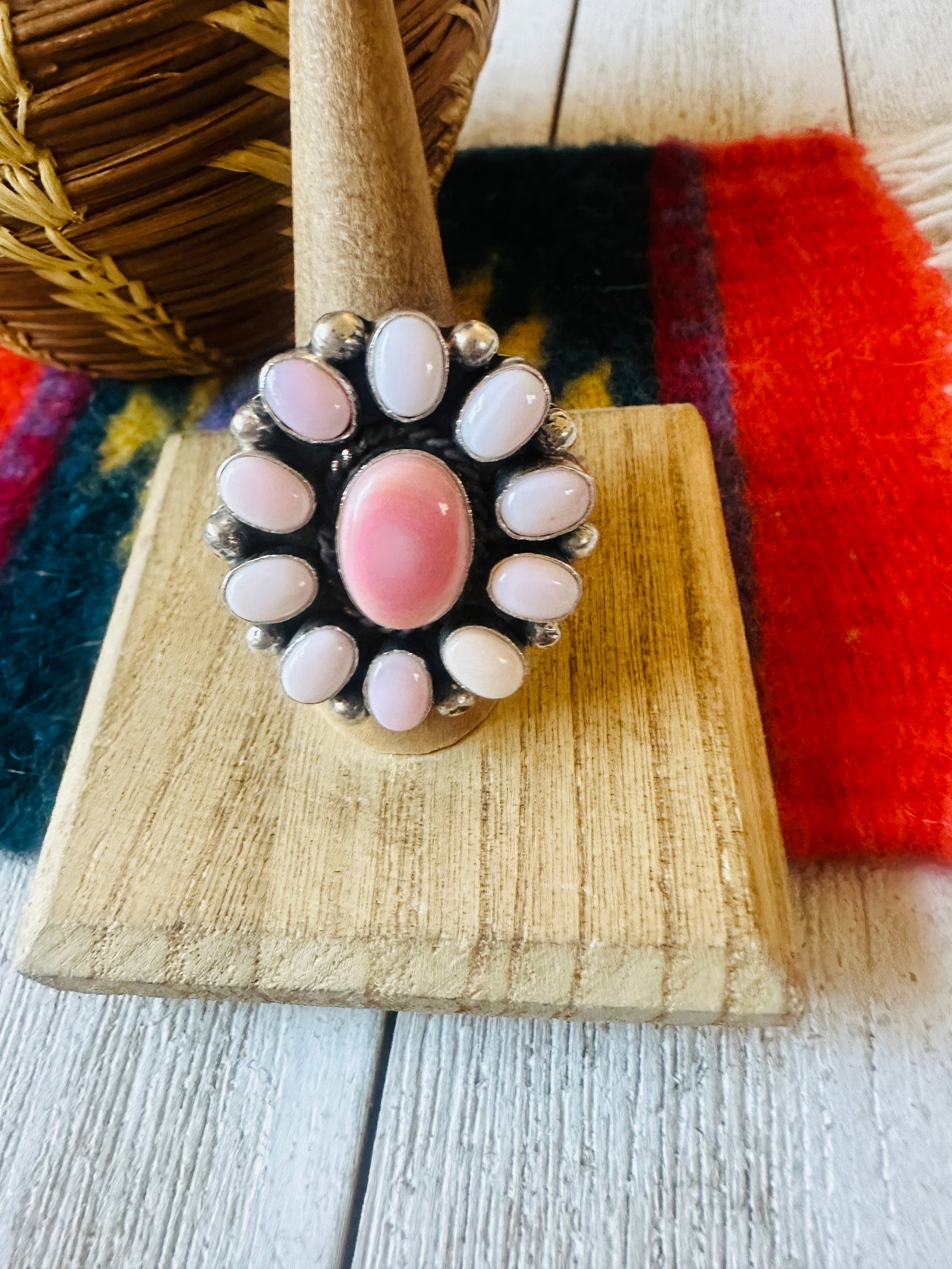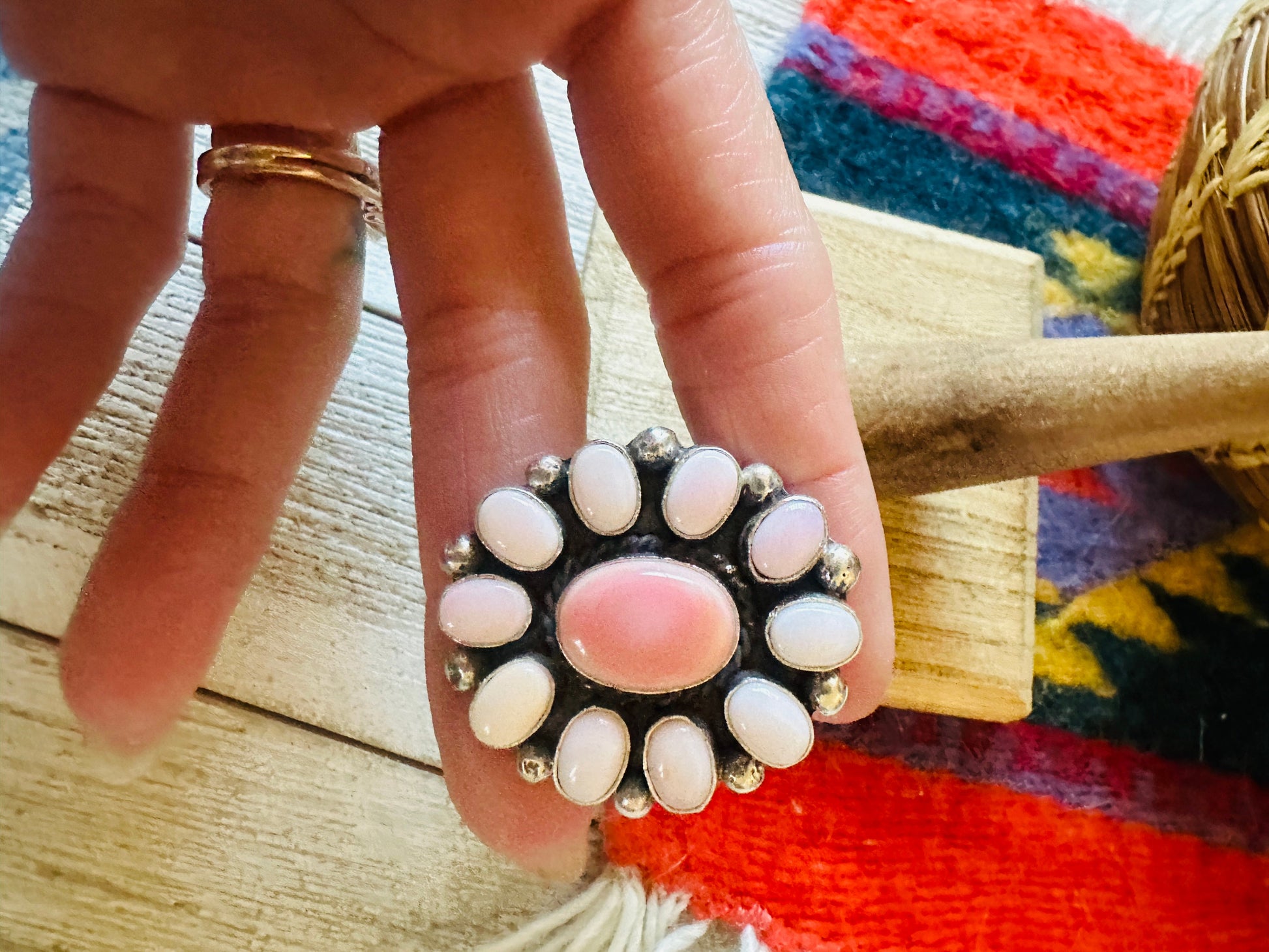 Navajo Sterling Silver & Queen Pink Conch Cluster Adjustable Ring