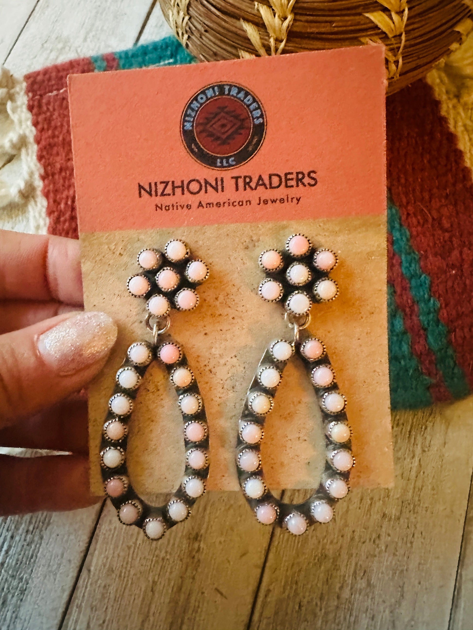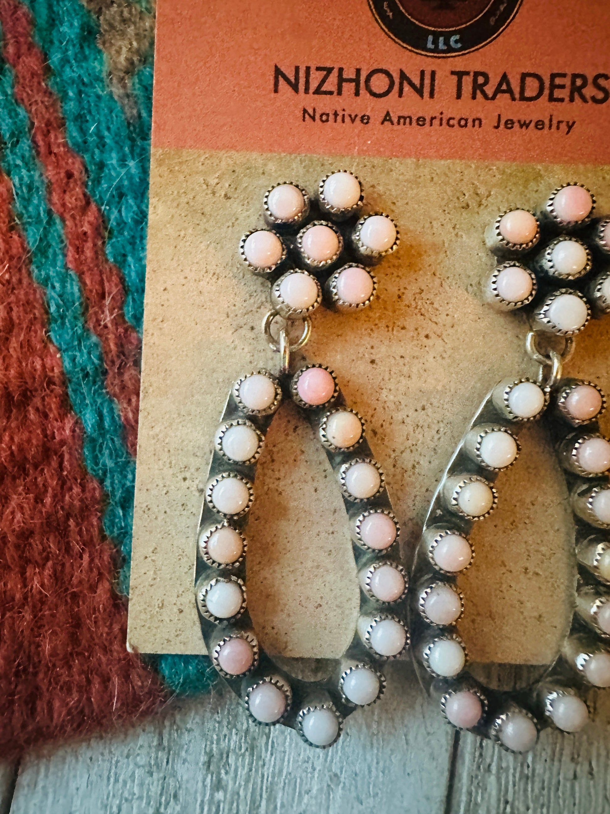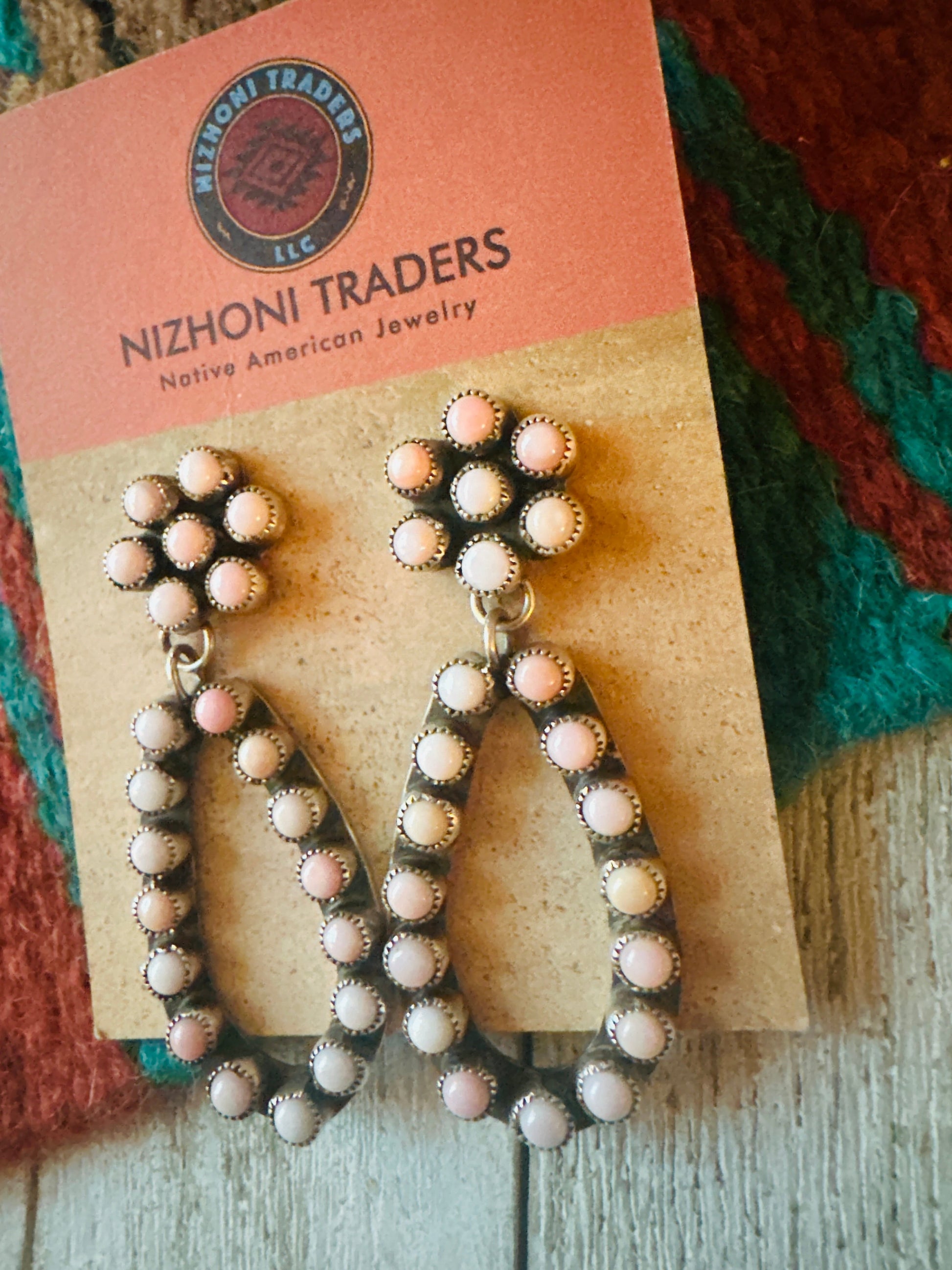Navajo Sterling Silver & Queen Pink Conch Cluster Dangle Earrings