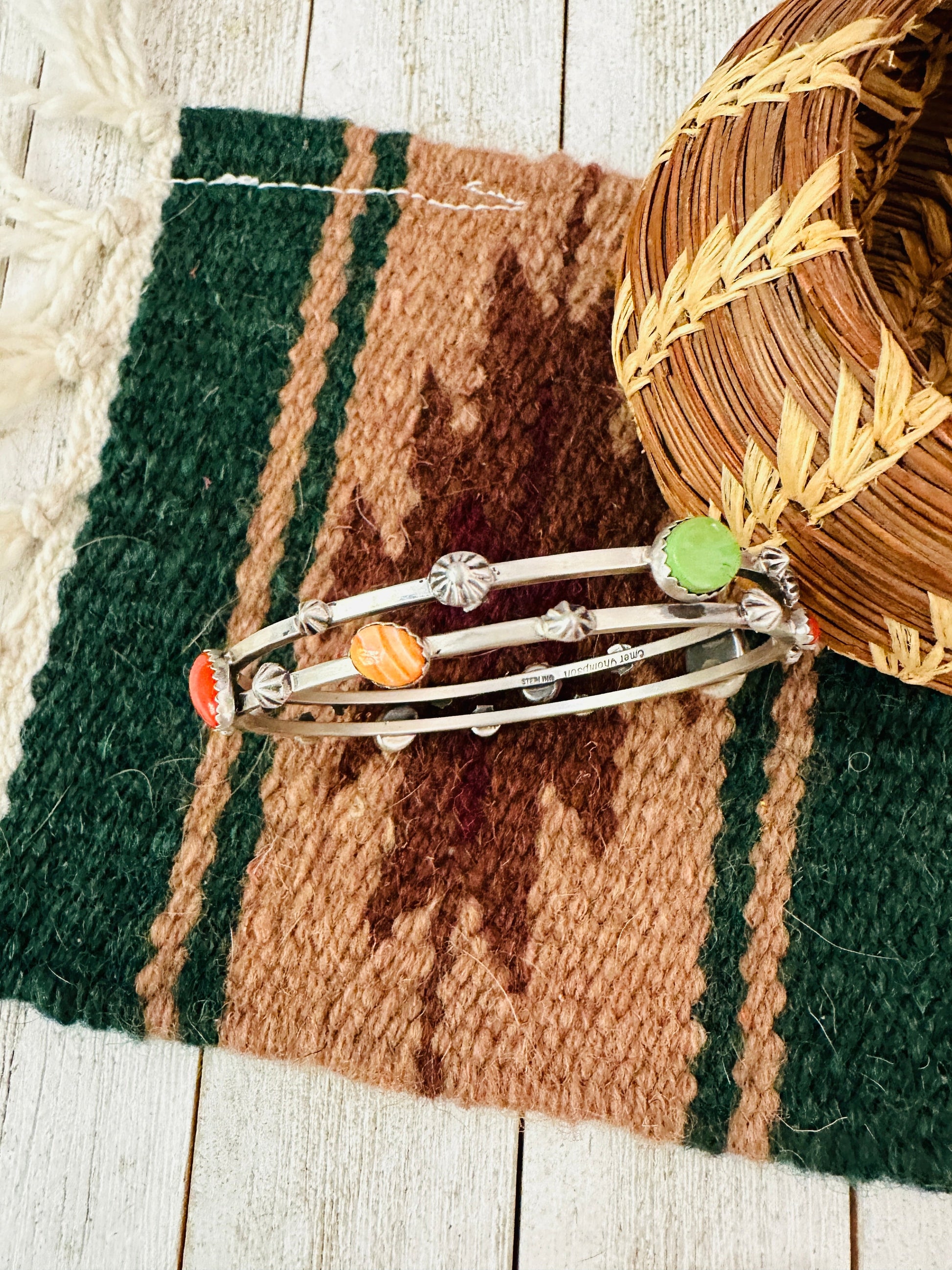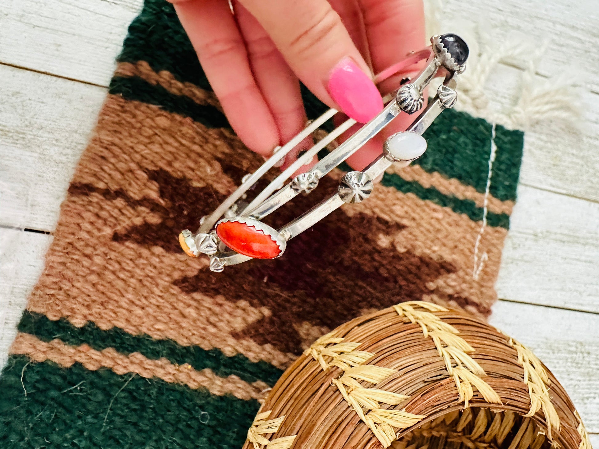 Navajo Multi Stone & Sterling Silver Bangle Bracelet