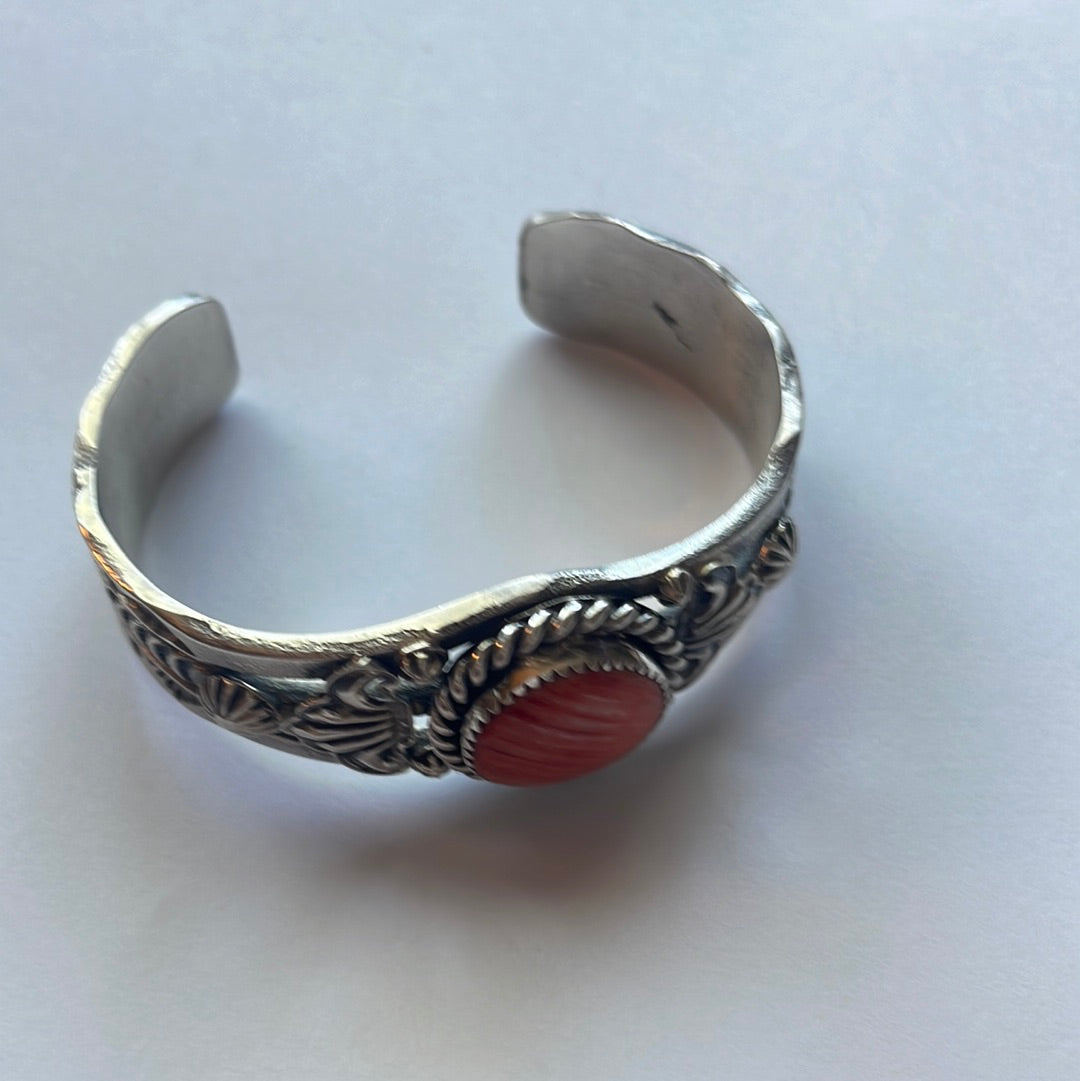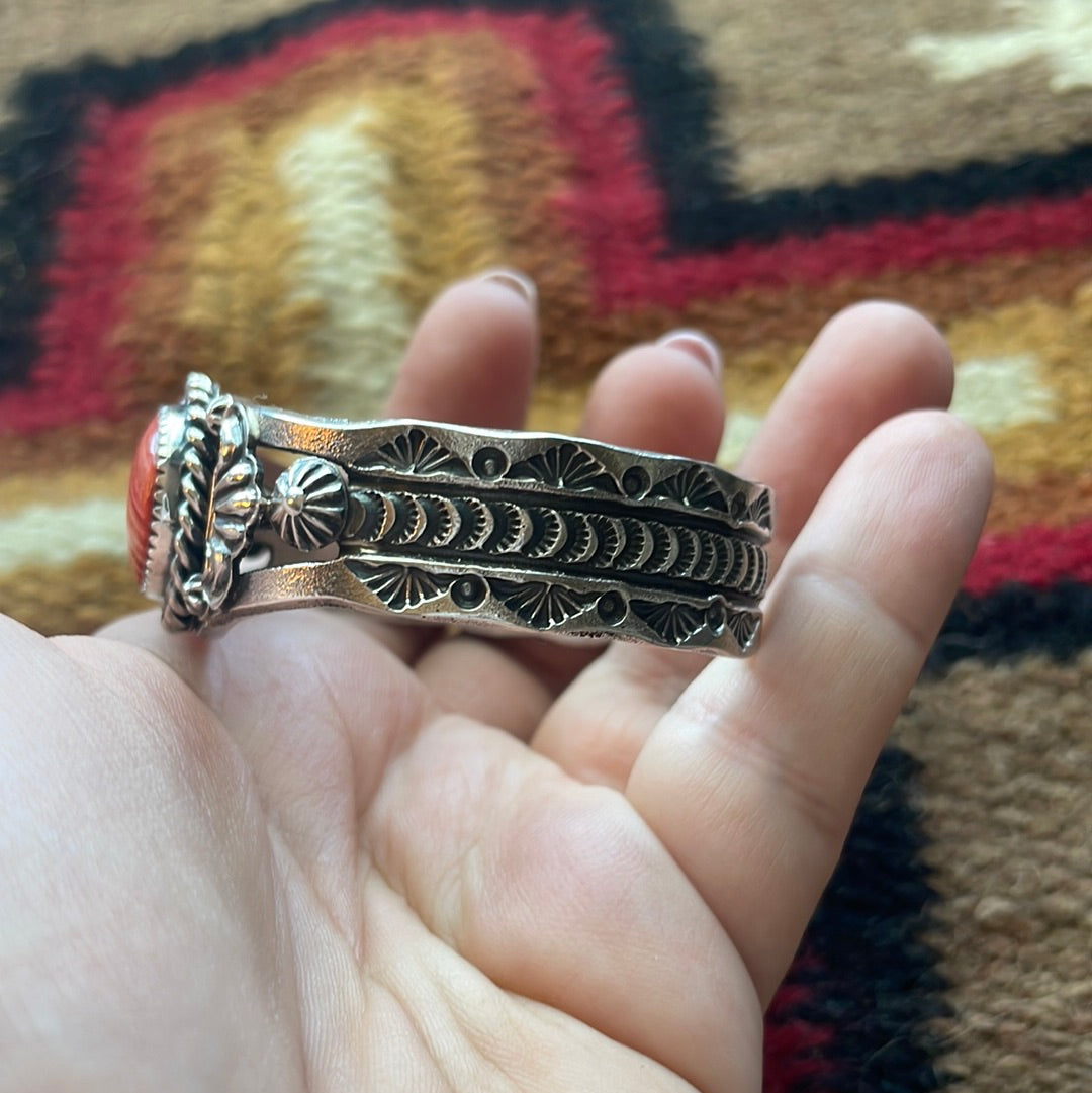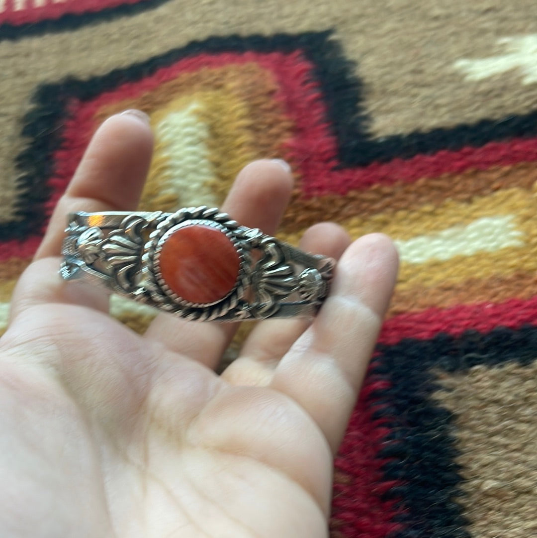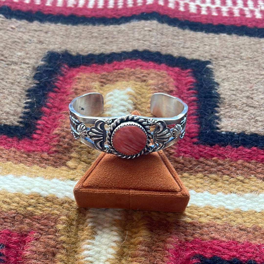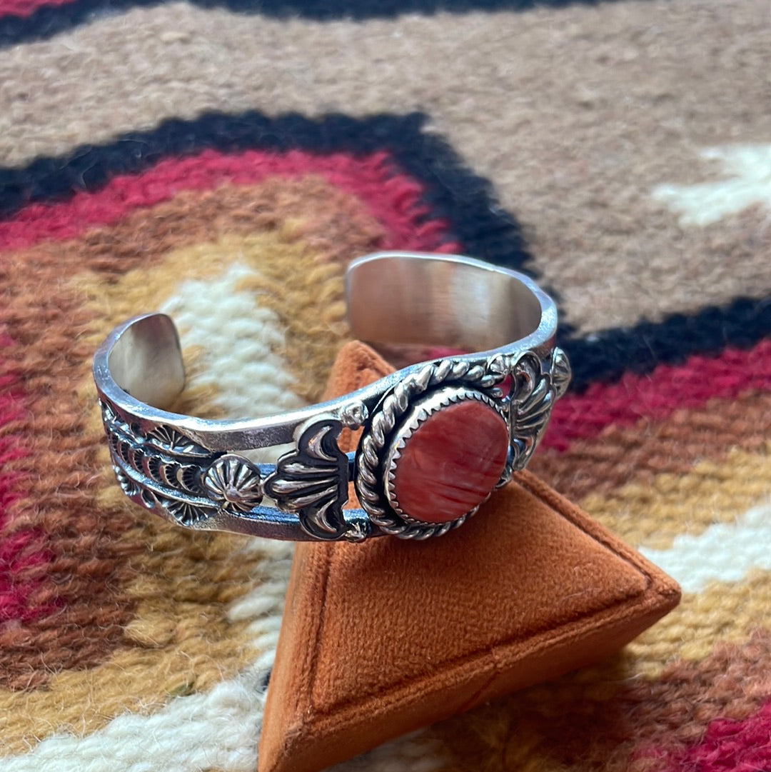 Kevin Billah Navajo Sterling Silver & Orange Spiny Cuff Bracelet Signed