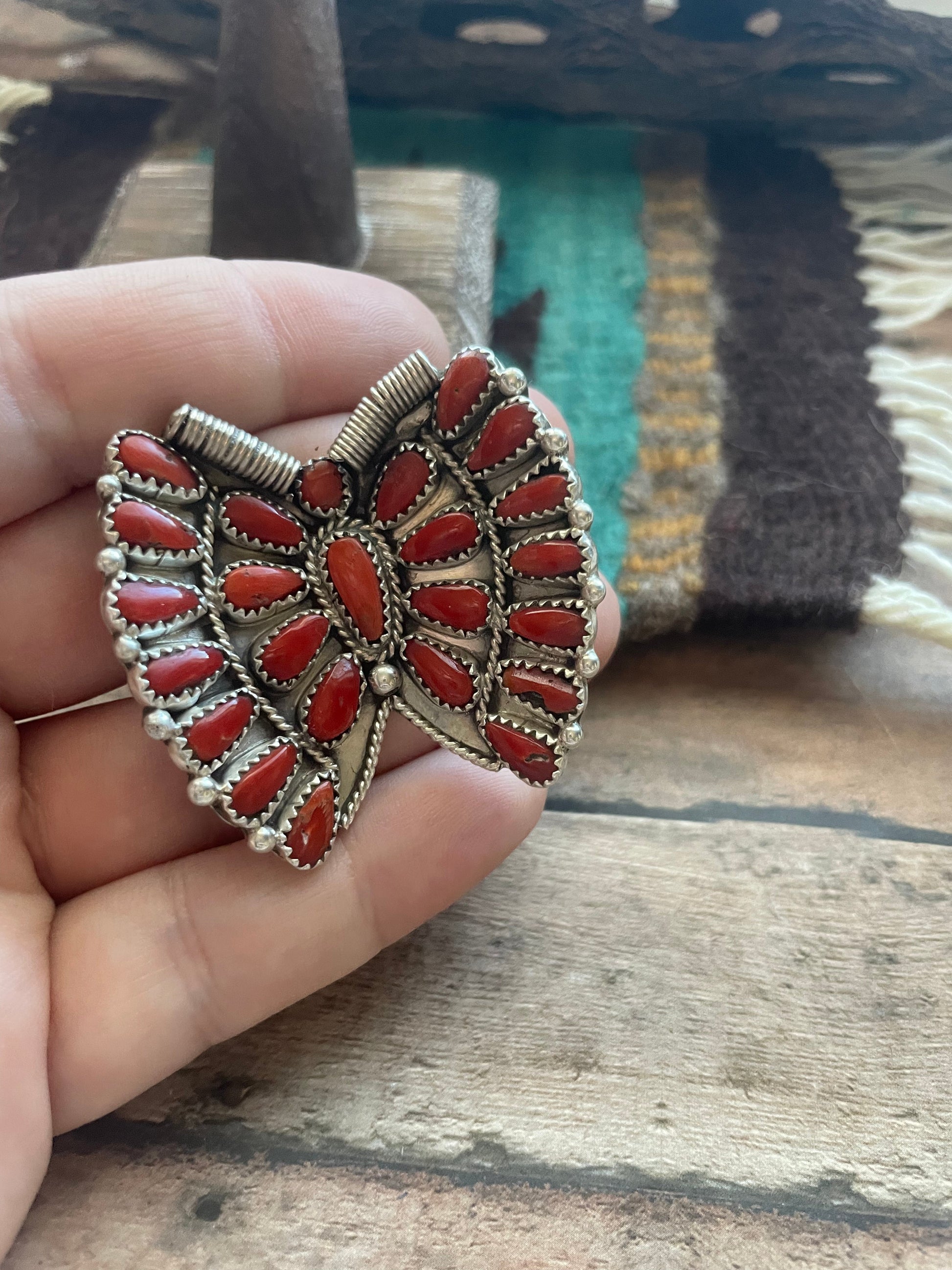 Navajo Coral And Sterling Silver Adjustable Butterfly Ring Signed