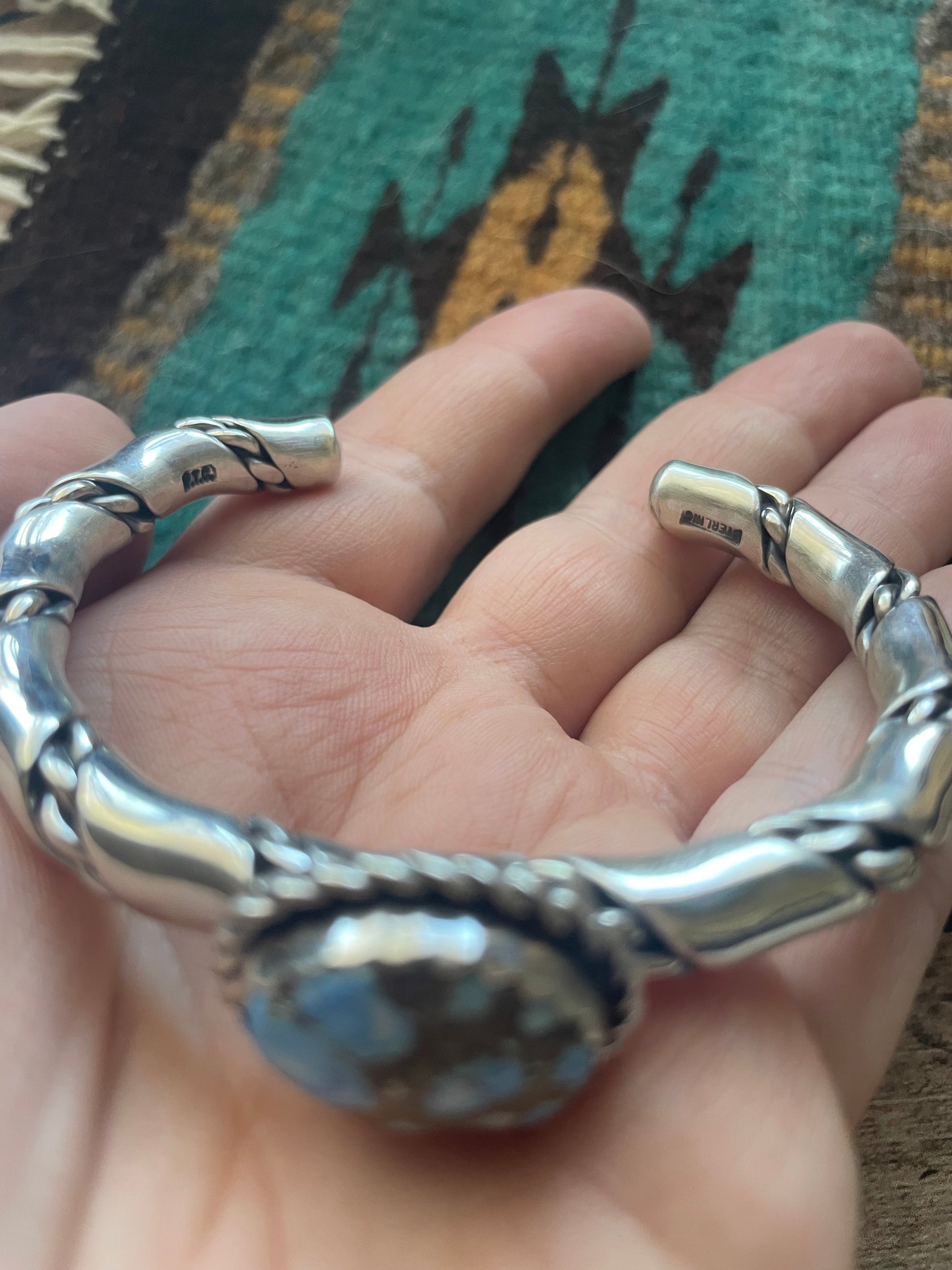 Navajo Golden Hills & Sterling Silver Cuff Bracelet Signed