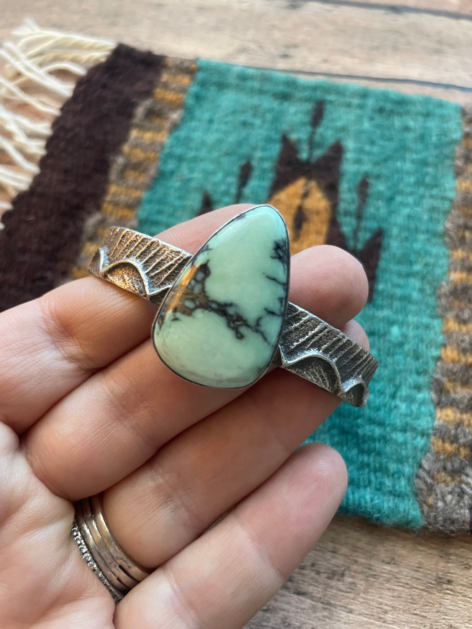 Navajo Golden Hills & Sterling Silver Tufa Cast Cuff Bracelet Signed