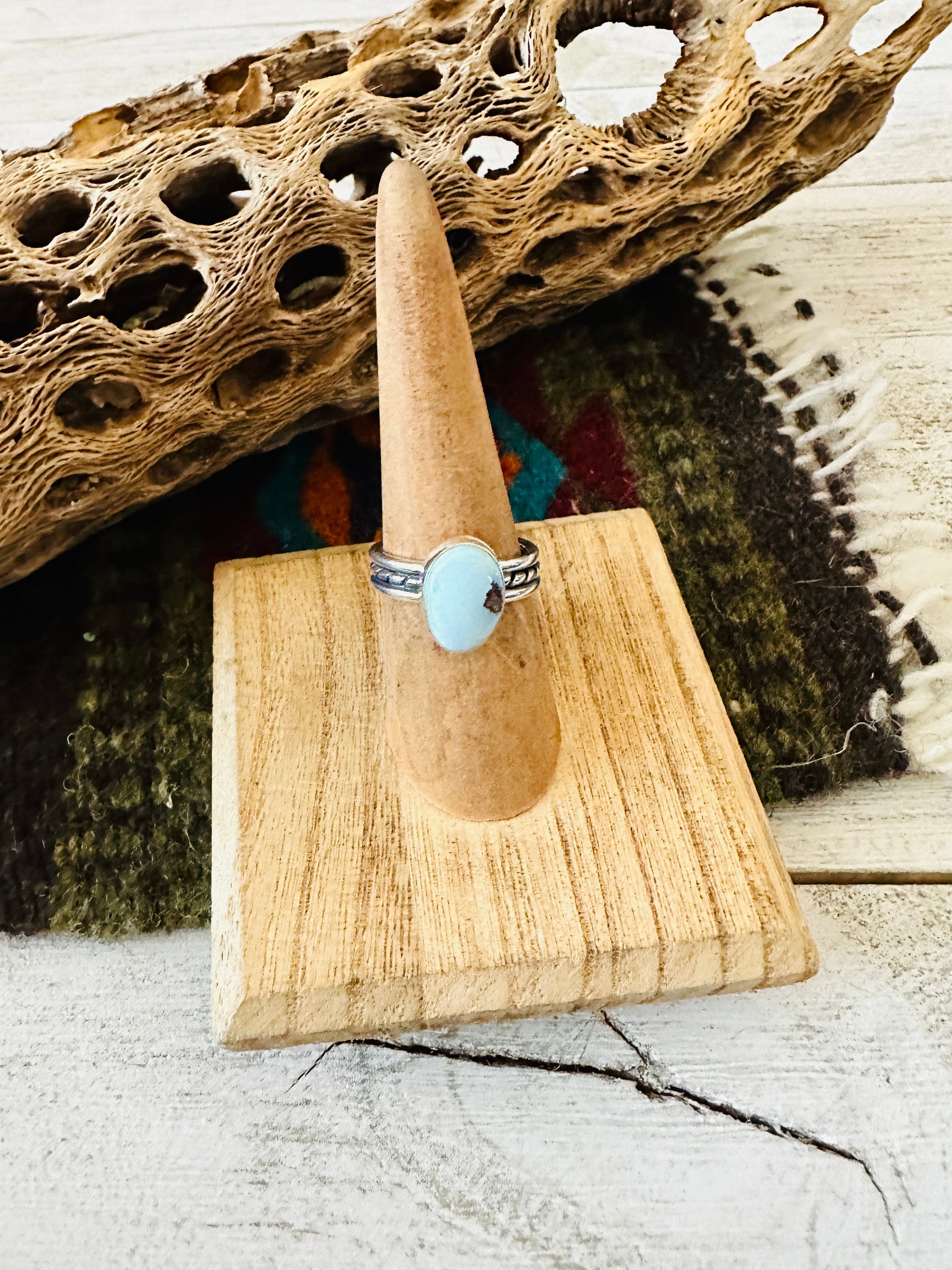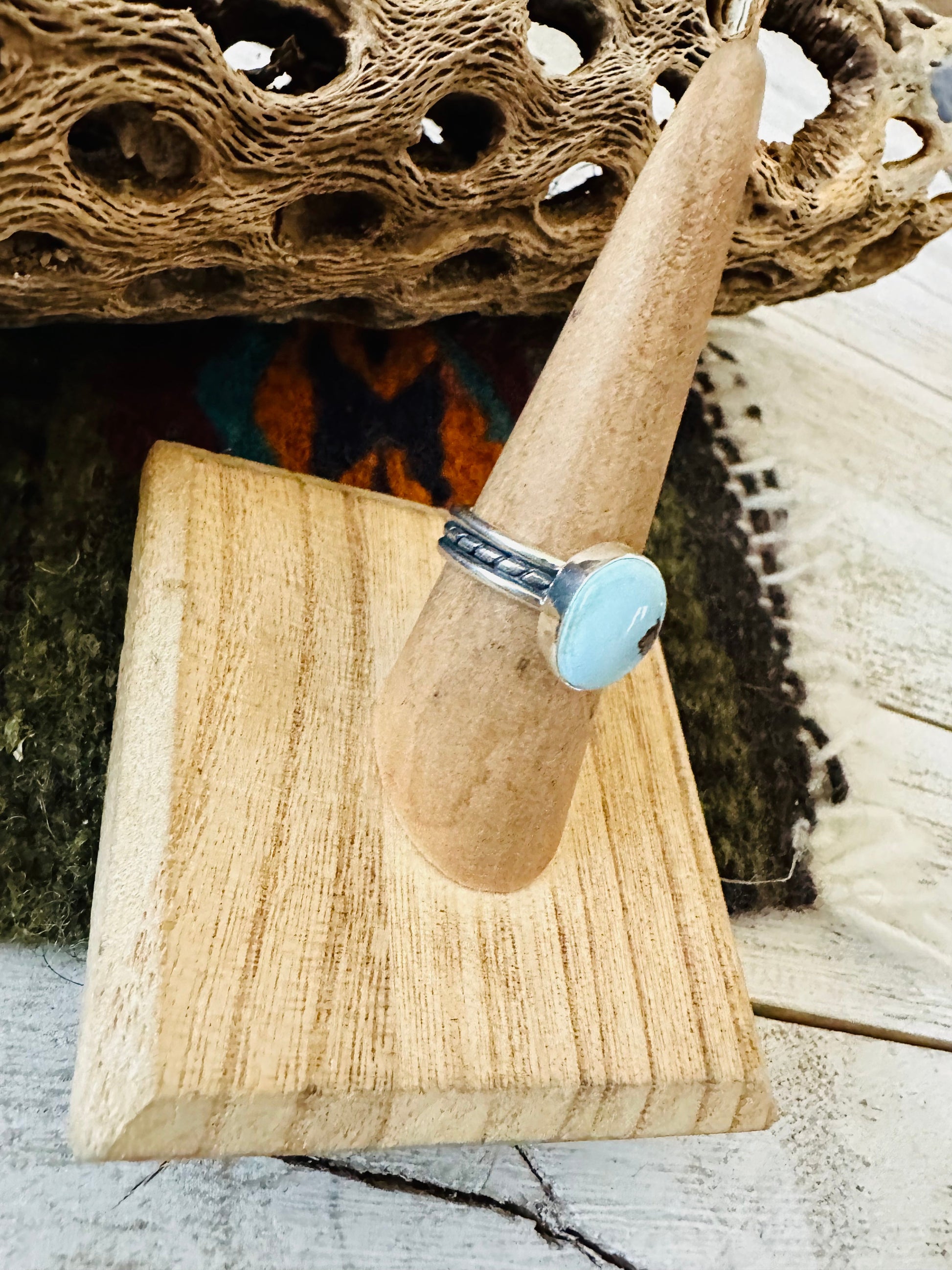 Navajo Golden Hills Turquoise & Sterling Silver Ring Size 6.5