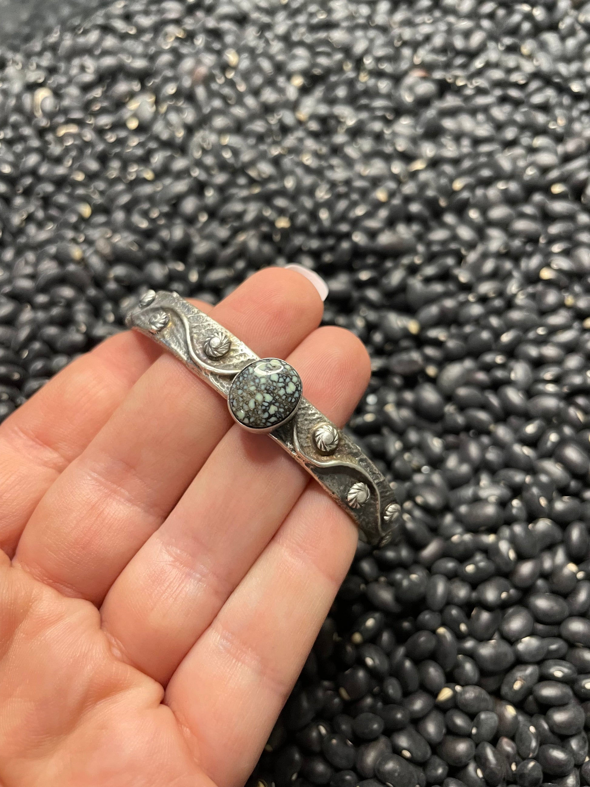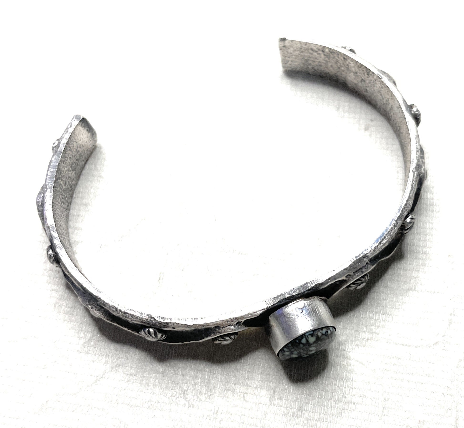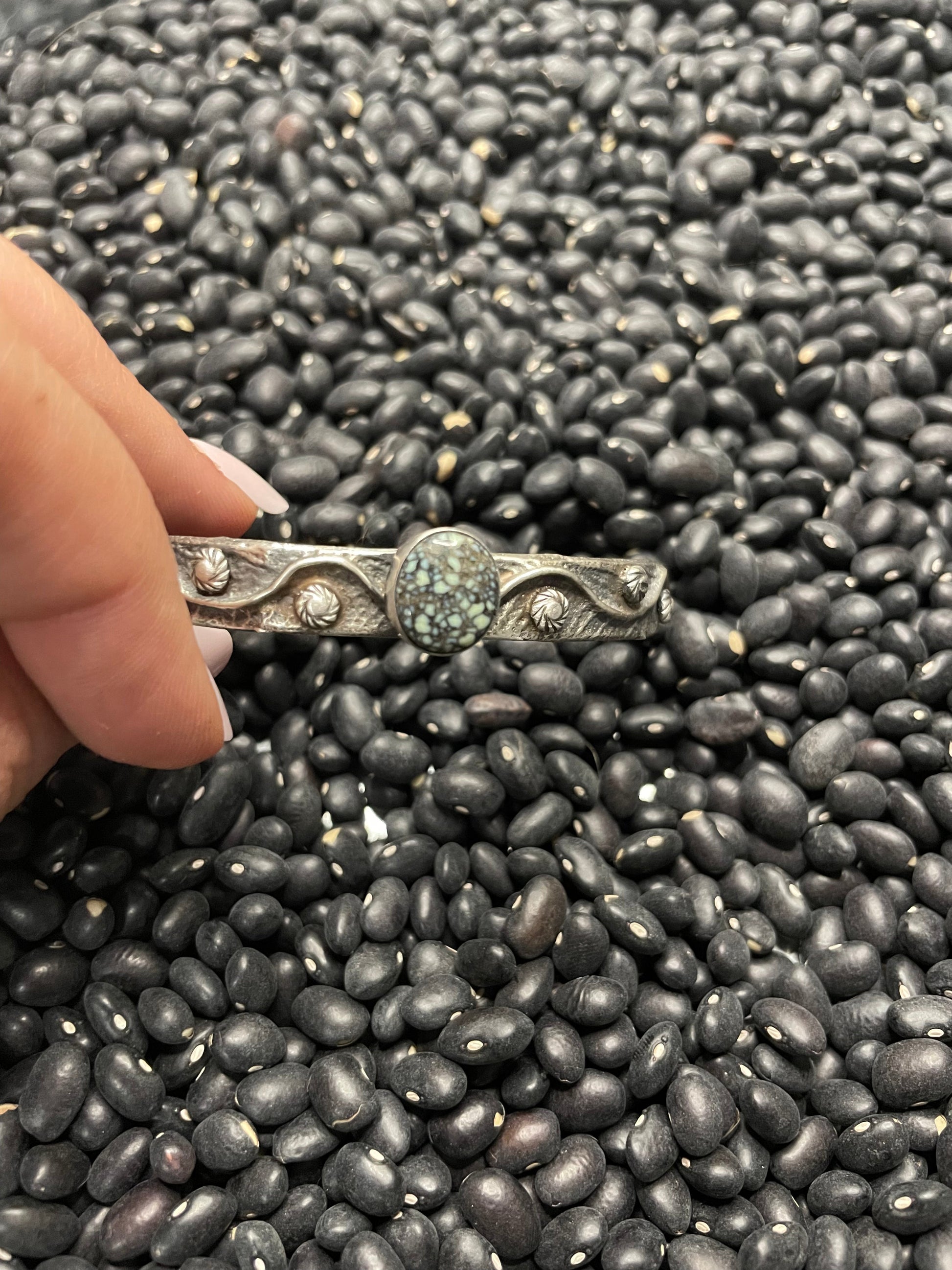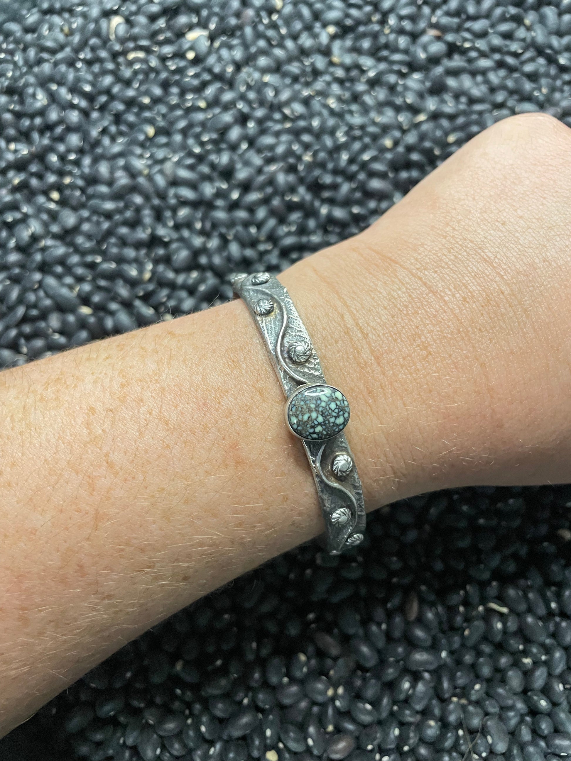 Navajo New Lander Turquoise & Sterling Silver Tufa Cast Cuff Bracelet Signed