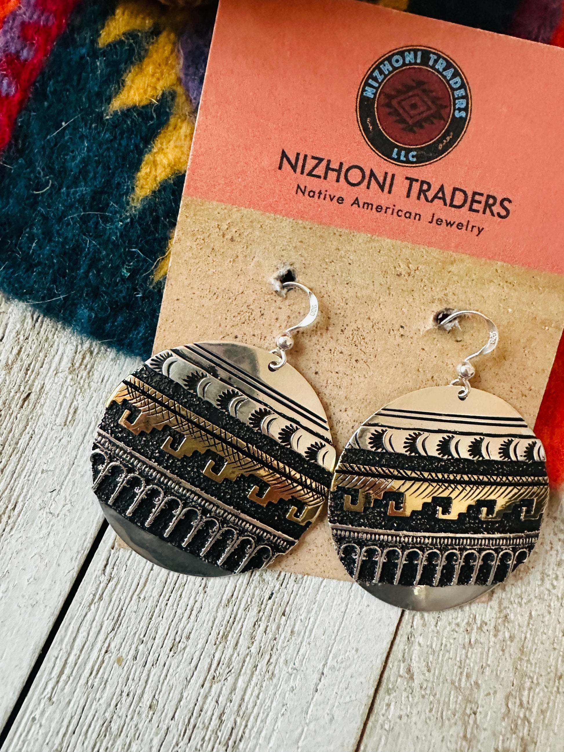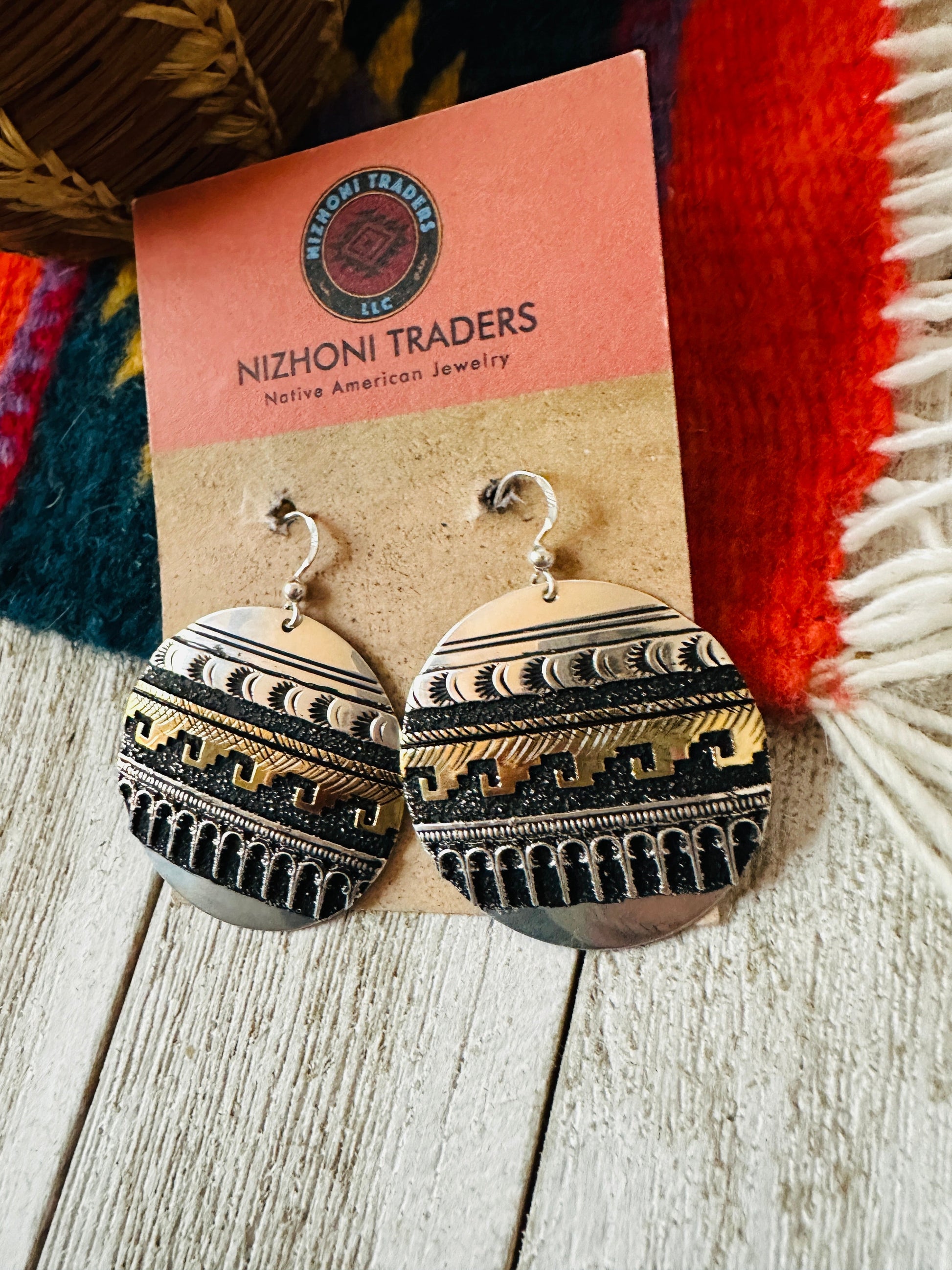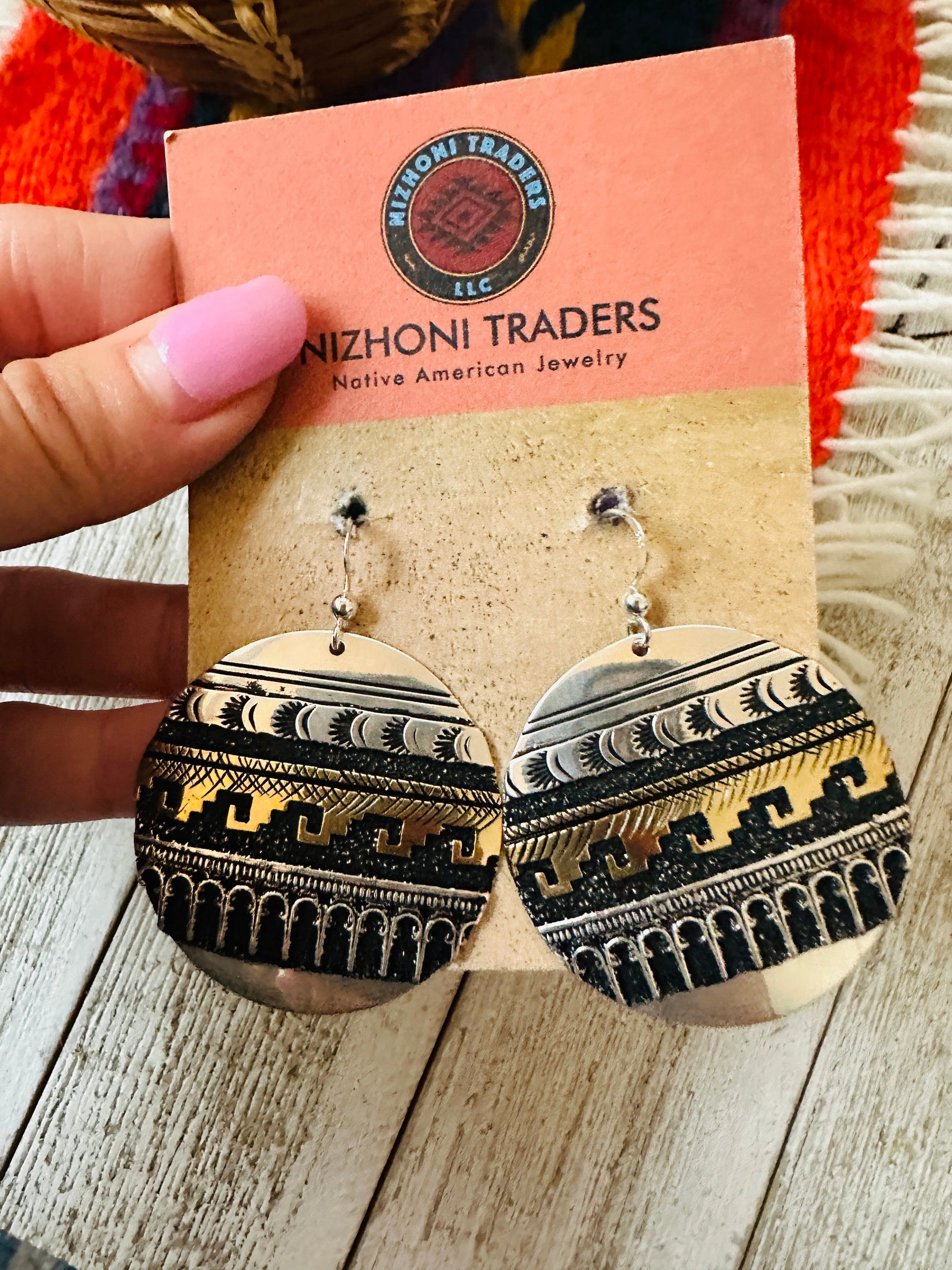 Navajo Hand Stamped Sterling Silver & Copper Earrings