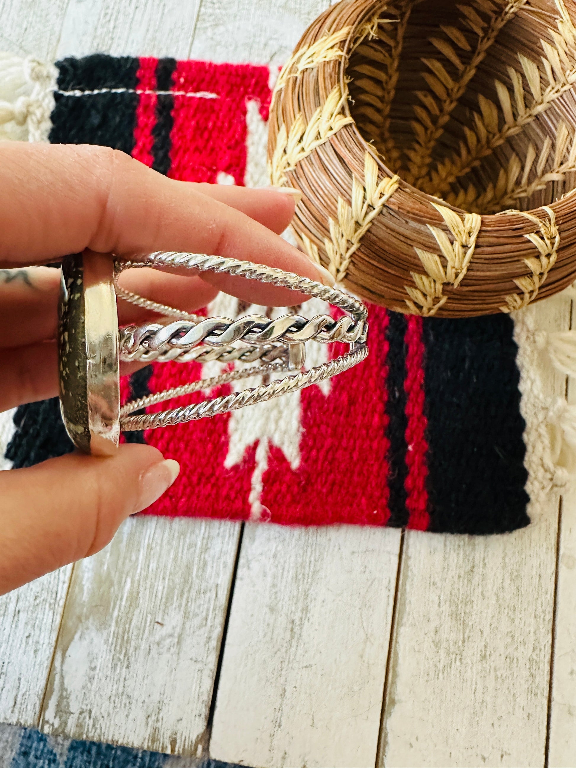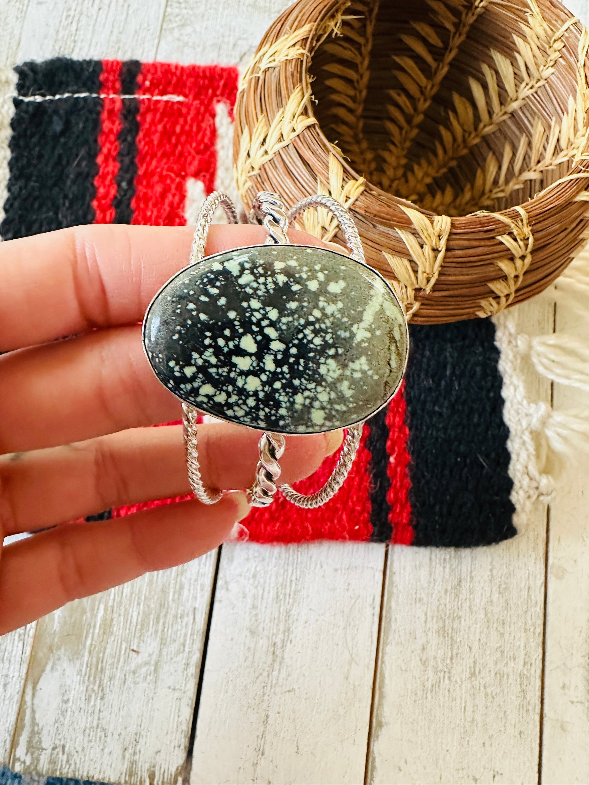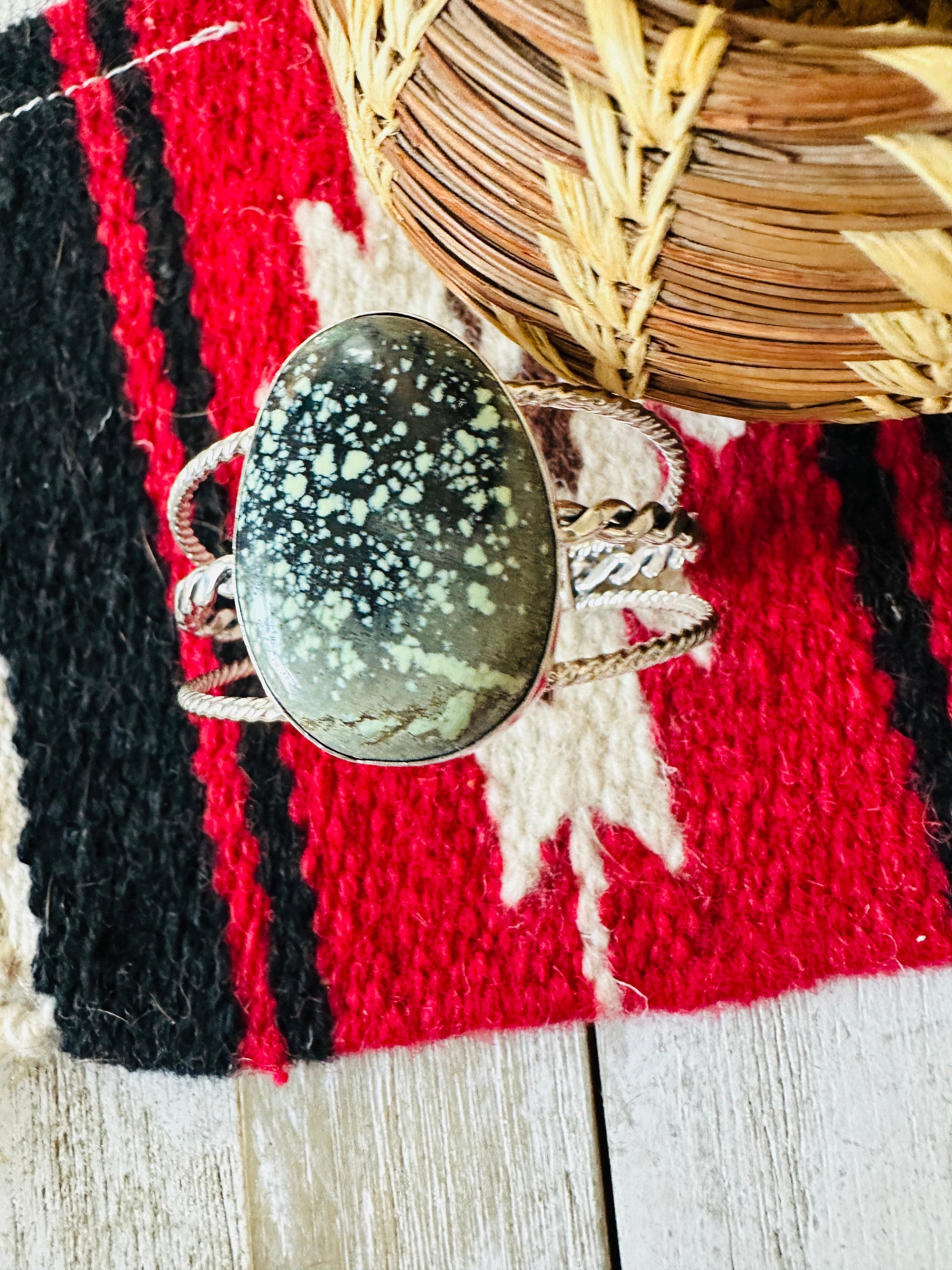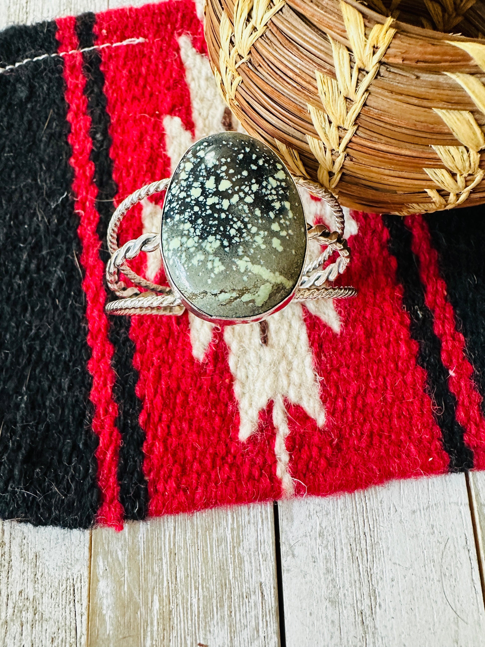 Navajo New Lander Turquoise & Sterling Silver Cuff Bracelet