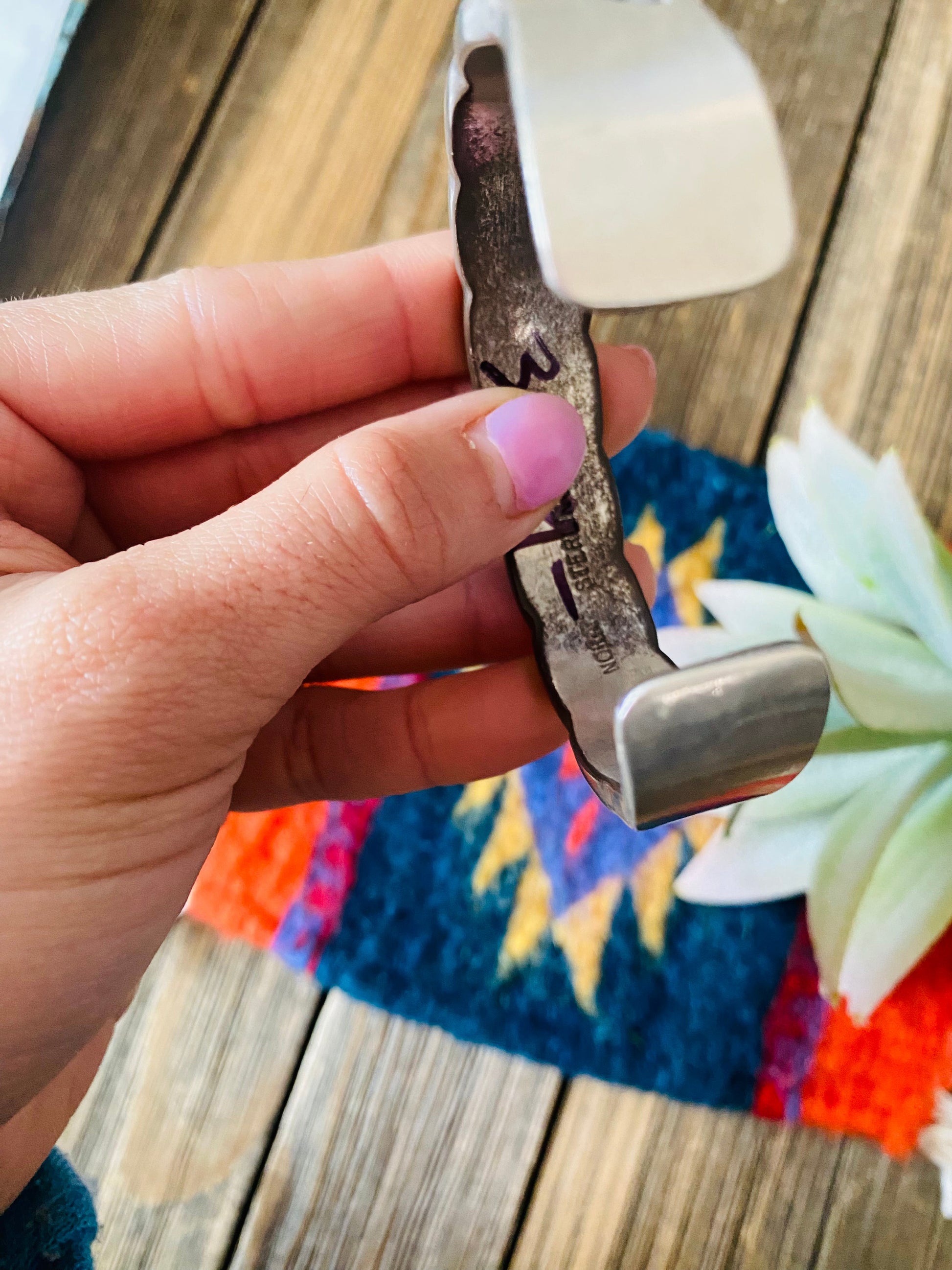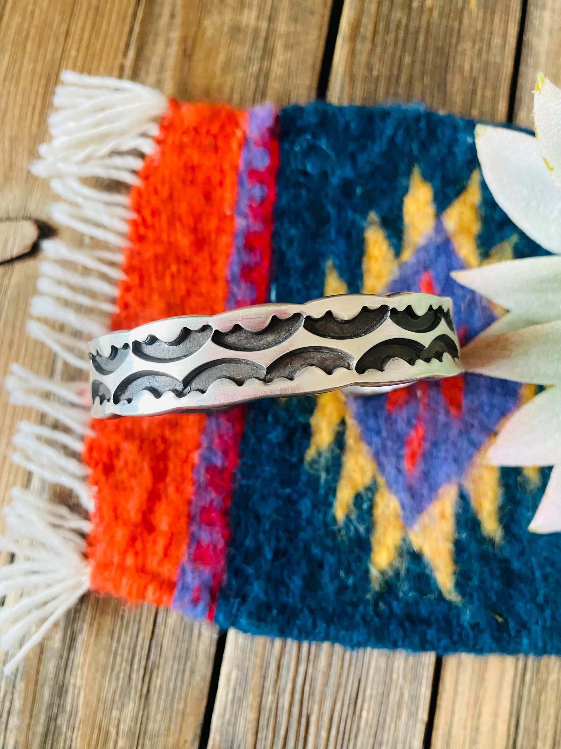 Navajo Old Pawn Hand Stamped Sterling Silver Cuff Bracelet by Nora Bill