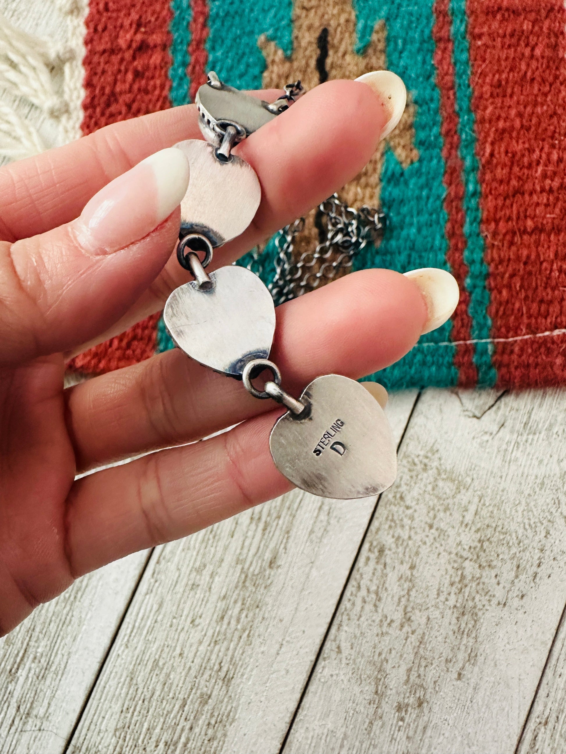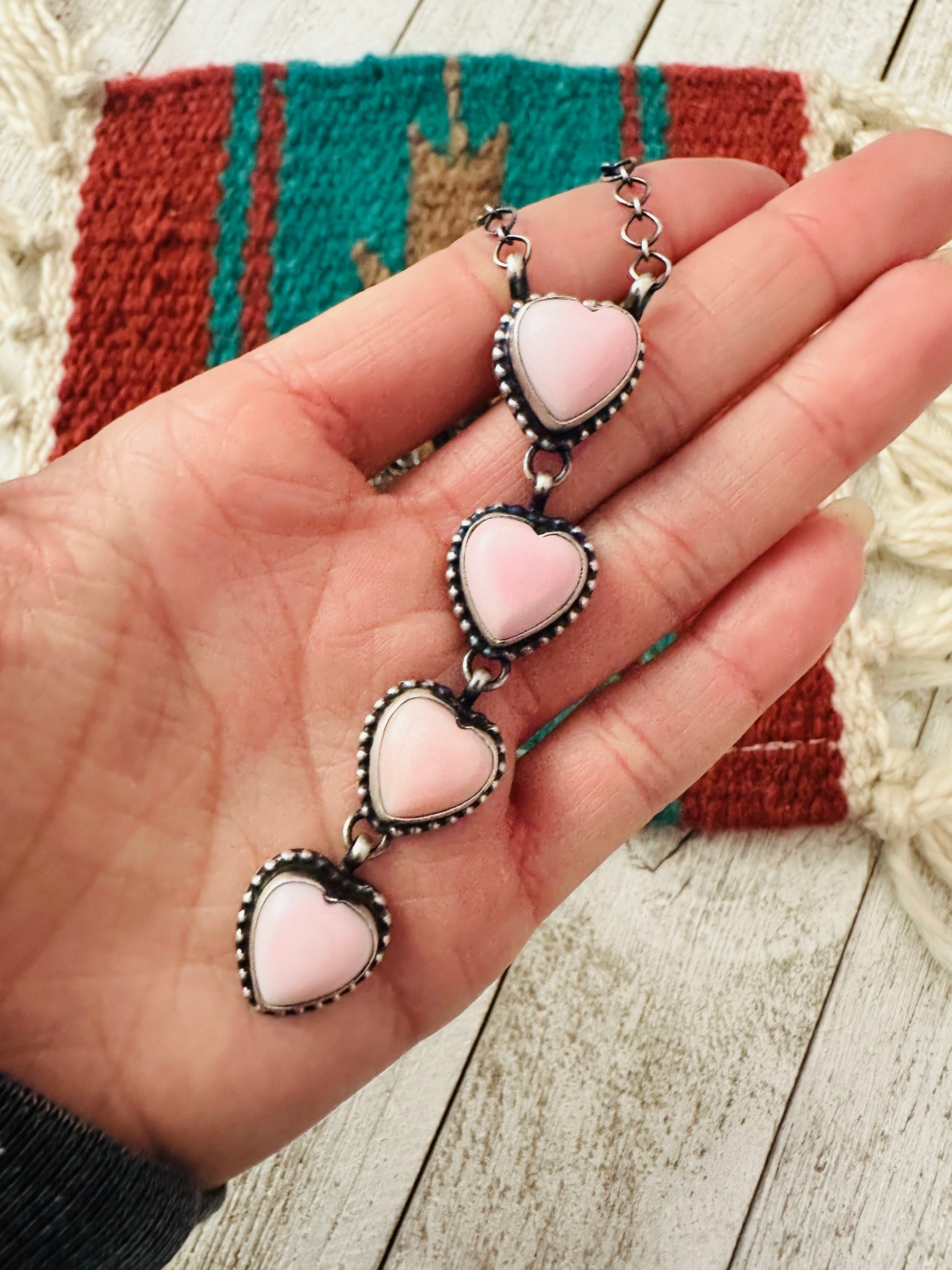 Navajo Queen Pink Conch & Sterling Silver Pearl Lariat Heart Necklace