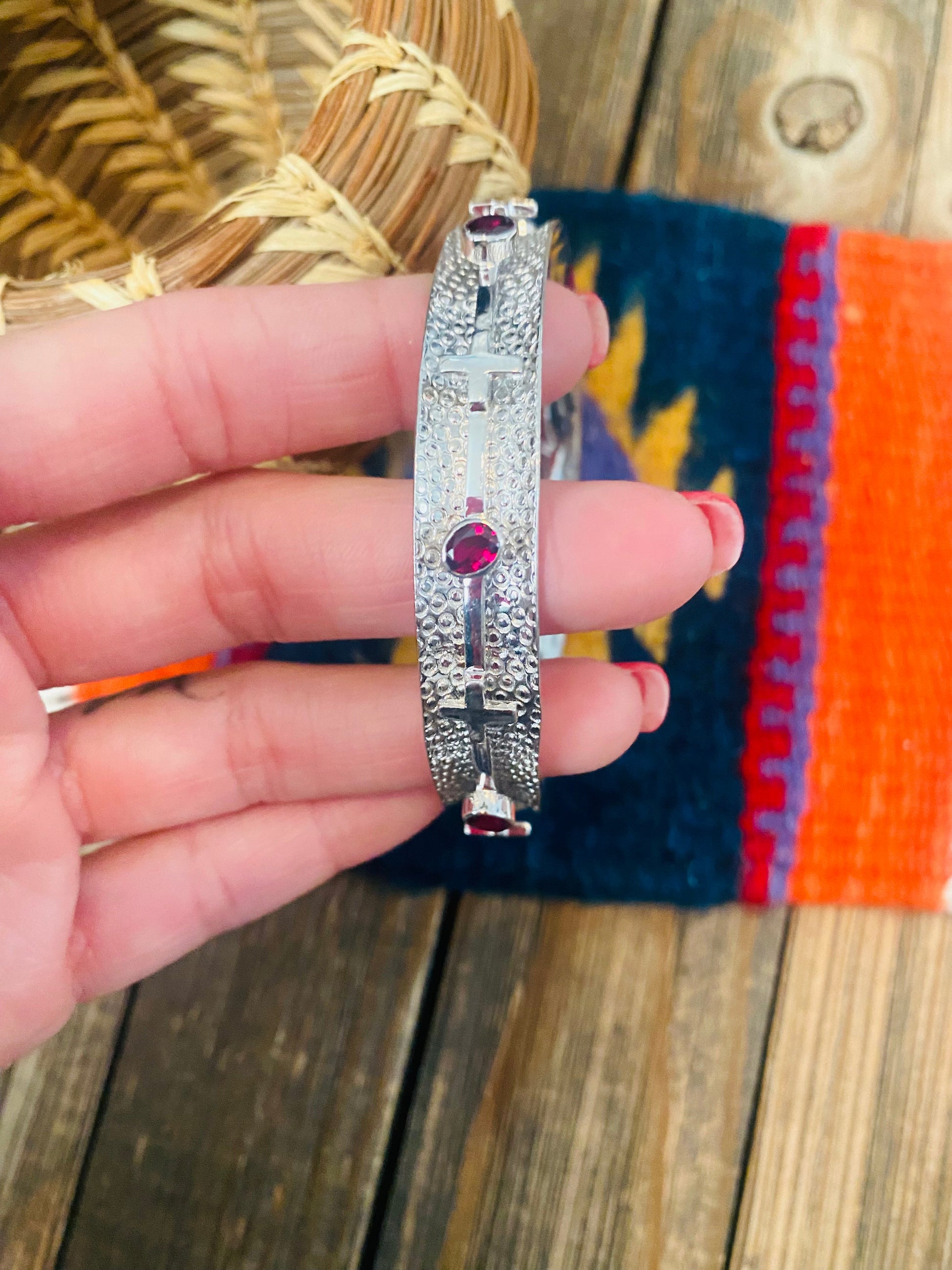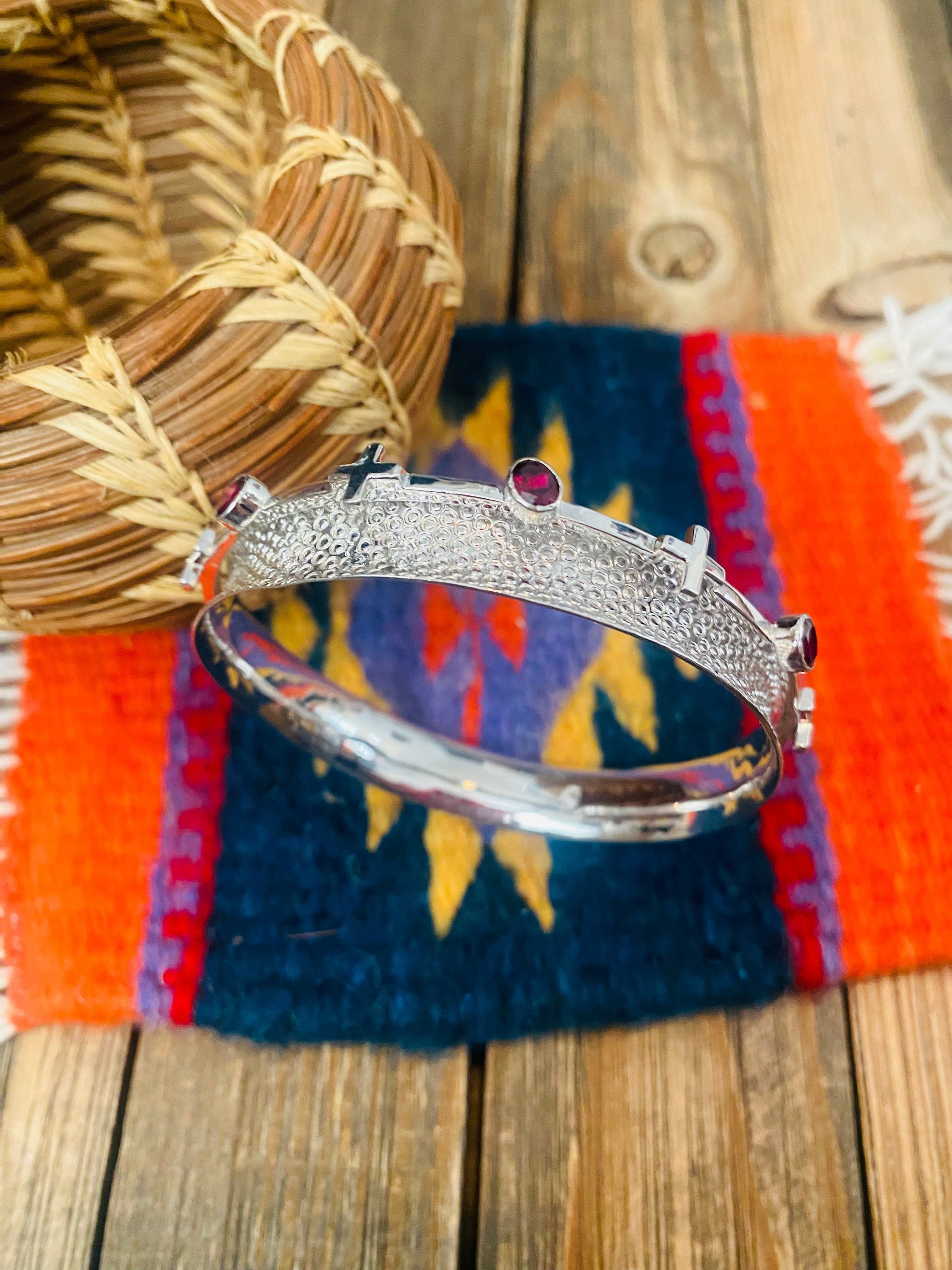Navajo Sterling Silver & Topaz Bangle Bracelet Signed