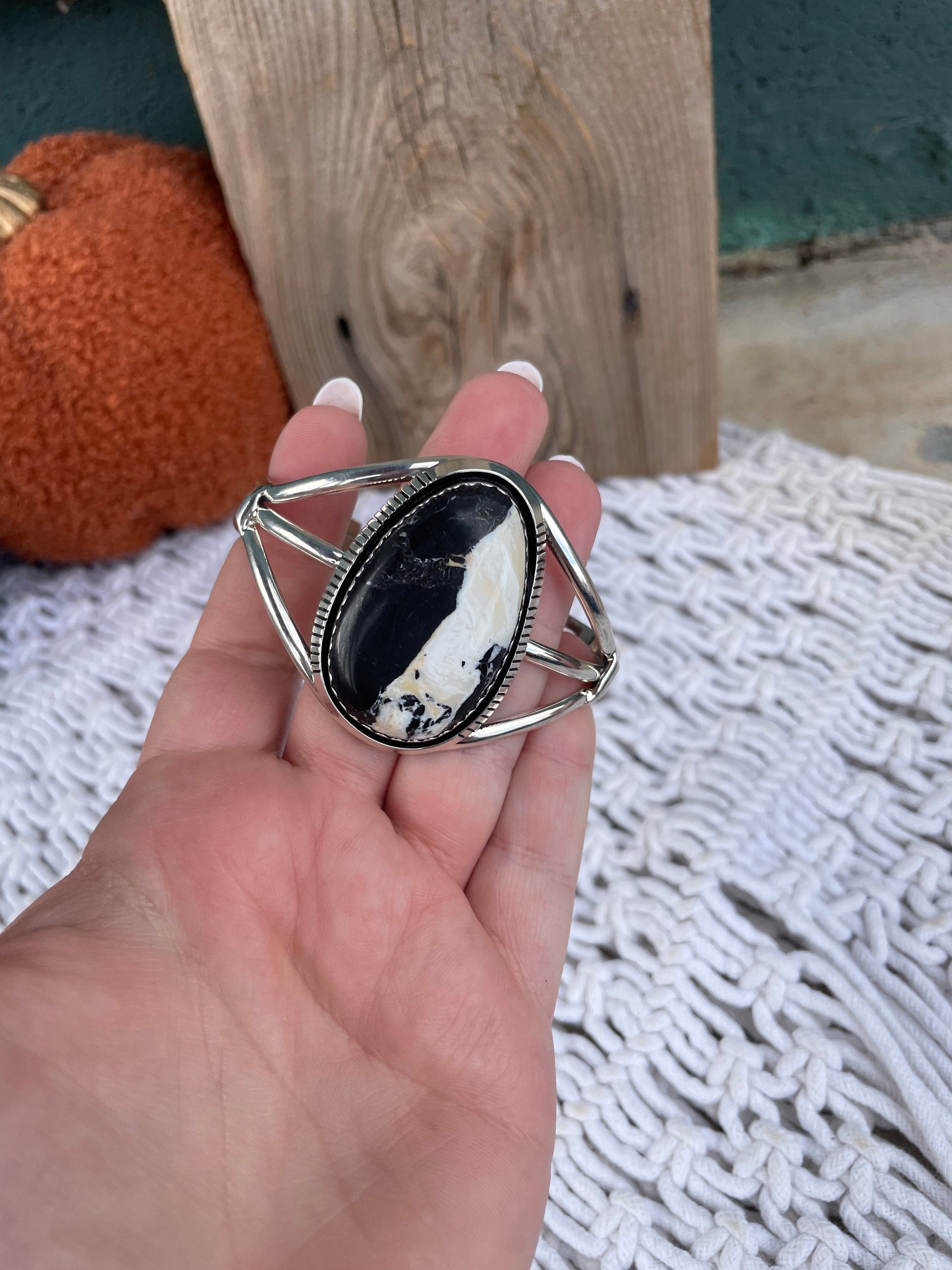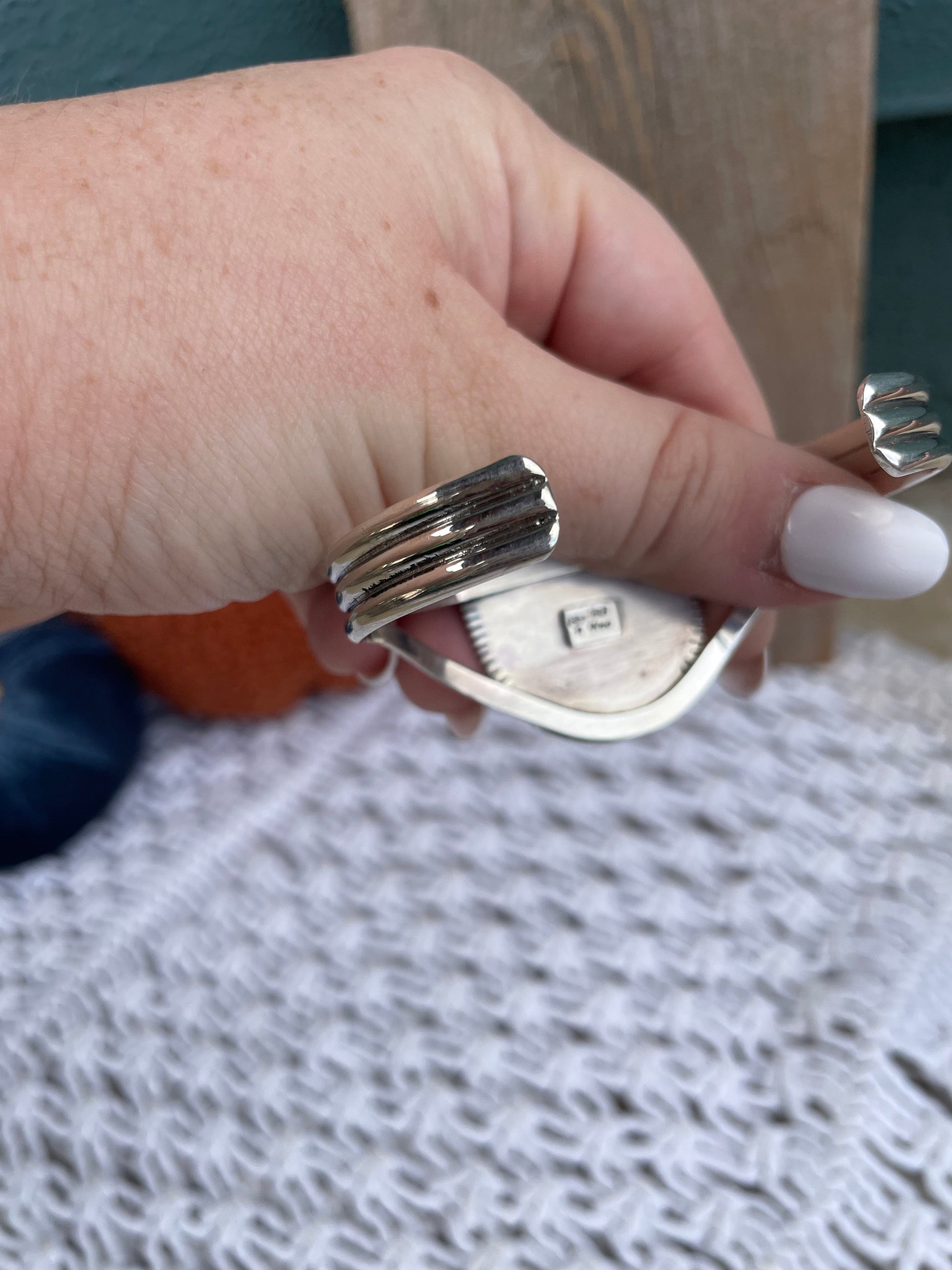 Navajo Sterling Silver And White Buffalo Adjustable Cuff Bracelet