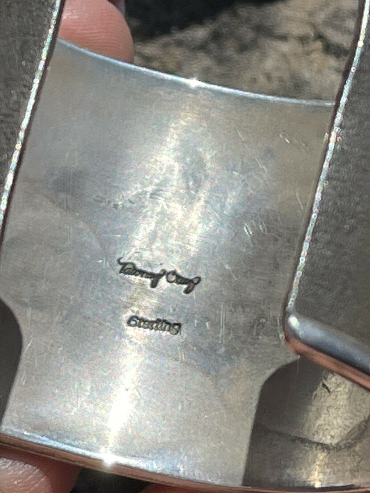 Stunning Sterling Silver Cross Cuff Bracelet. Beautiful Blue Turquoise Accent Stones. Check out this great Cross Southwest Design. Definitely a signature style. Cuff has a 5 3/4 inch circumference and a 1 inch gap. Weight 136 grams. Width is 1 3/4 inches. A solid timeless beauty. Signed by Artist and stamped Sterling.