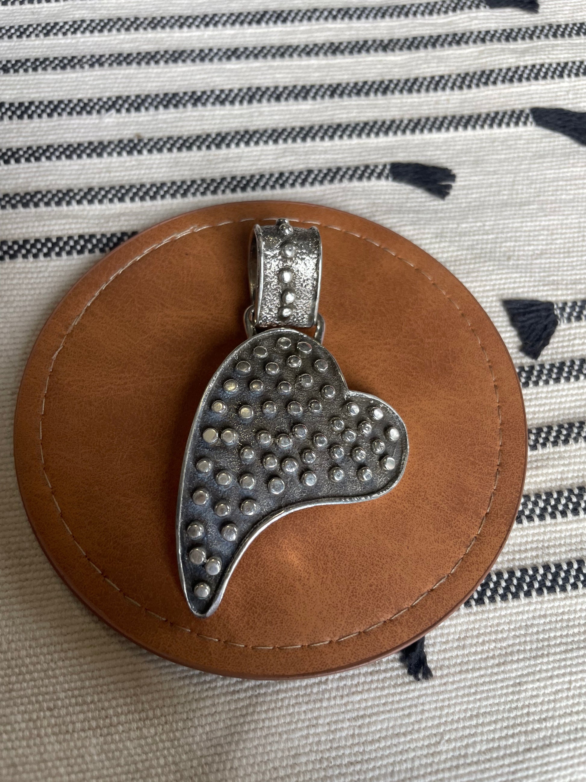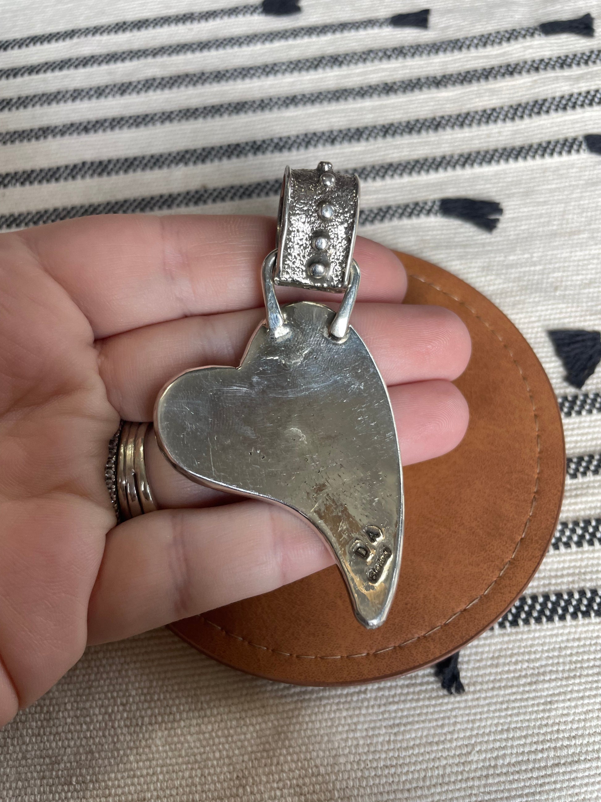 Check out this Navajo Sterling Silver Heart Pendant Signed. Such a cool piece! This piece is signed by the artist DA and stamped Sterling. Pendant measures 2.5 inches in length. (From the top of the bail to the bottom of the pendant) It is 1.5 inches wide. Pendant only!