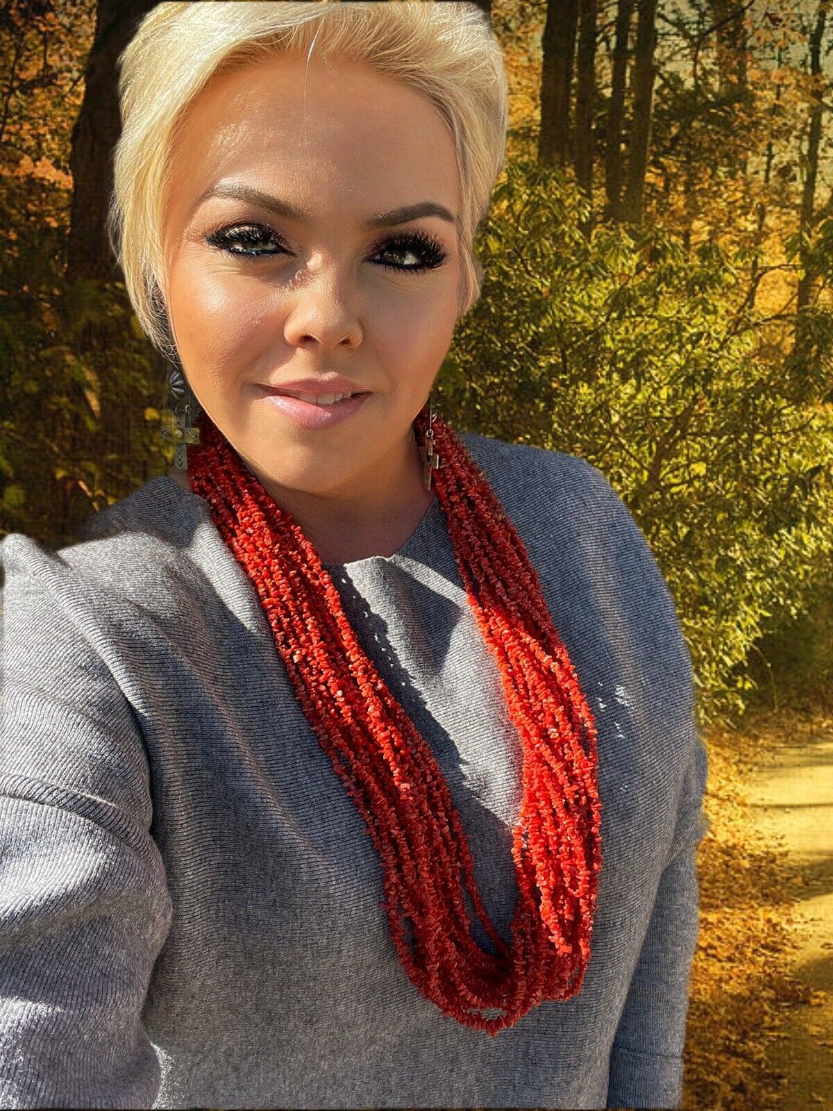 Navajo Sterling Silver Natural Coral 15 Strand Bead 36 Inch Necklace