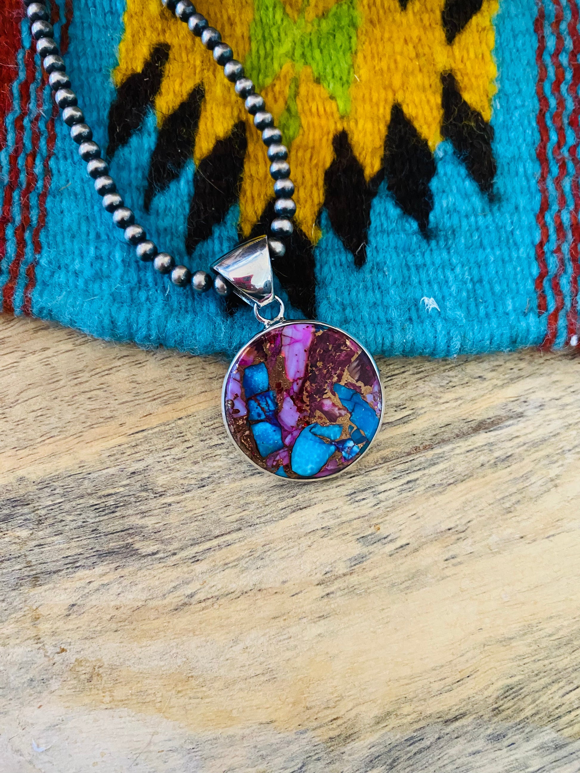Navajo Sterling Silver & Pink Dream Circle Pendant