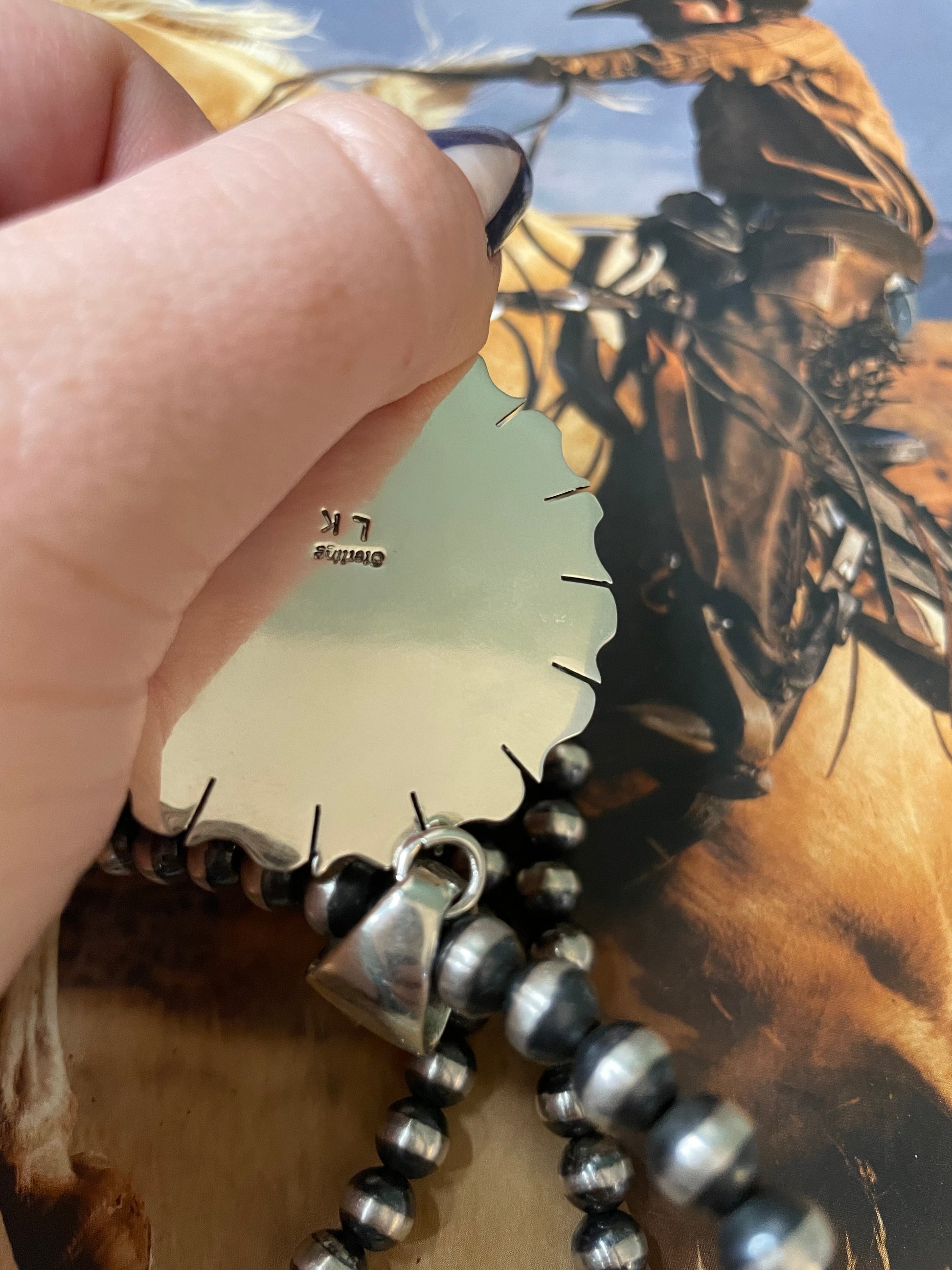 Navajo Sterling Silver & Purple Spiny Pendant. I just love the colors in this amazing pendant. Beautiful Spiny Oyster Stones set in Sterling Silver. Measuring 2 1/2 inches long and 2 inches wide. Signed by the Talented Artist and Stamped Sterling. Pair it up with your favorite Navajo Pearls or Chain. Pendant only