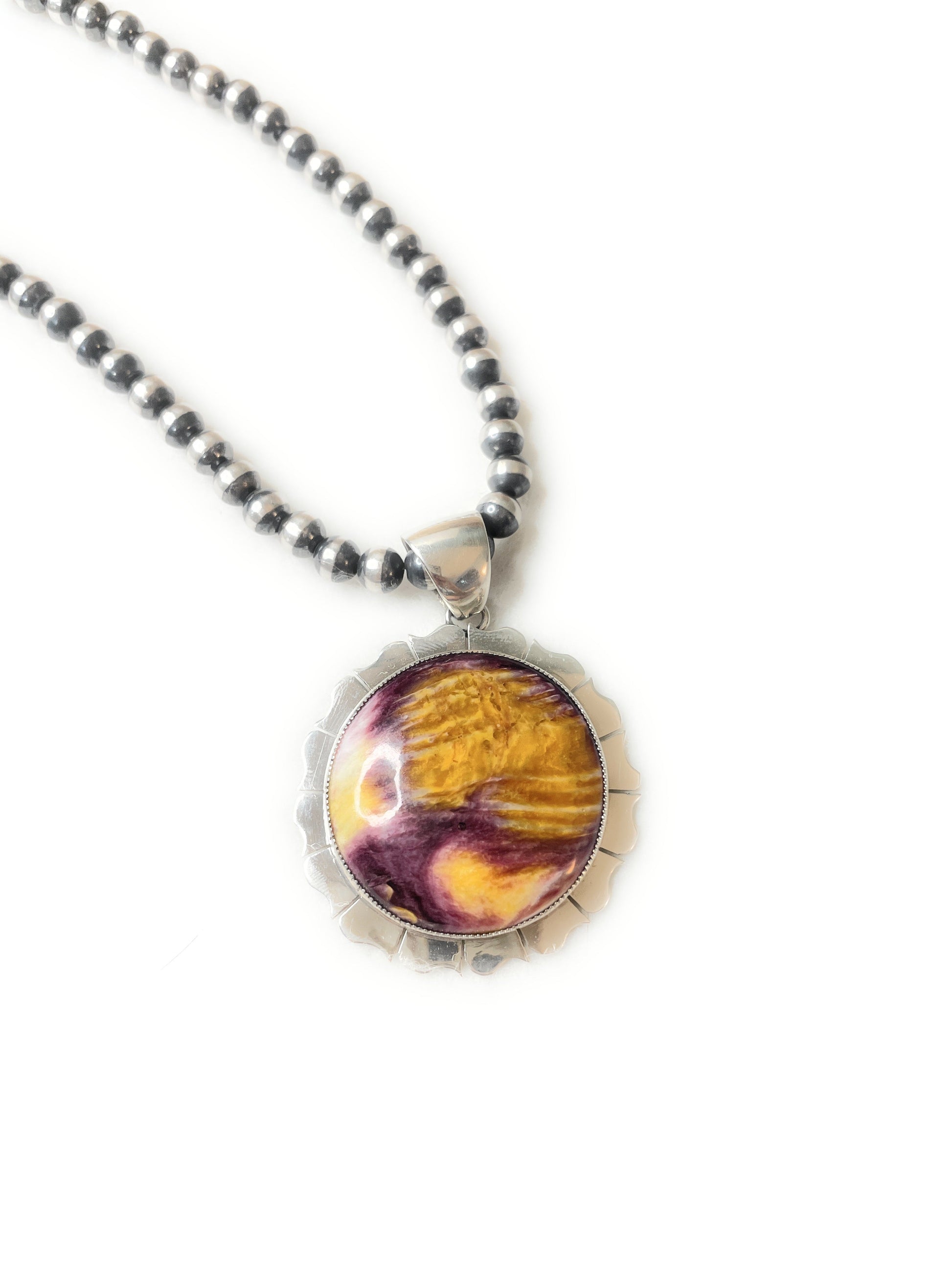 Navajo Sterling Silver & Purple Spiny Pendant Signed