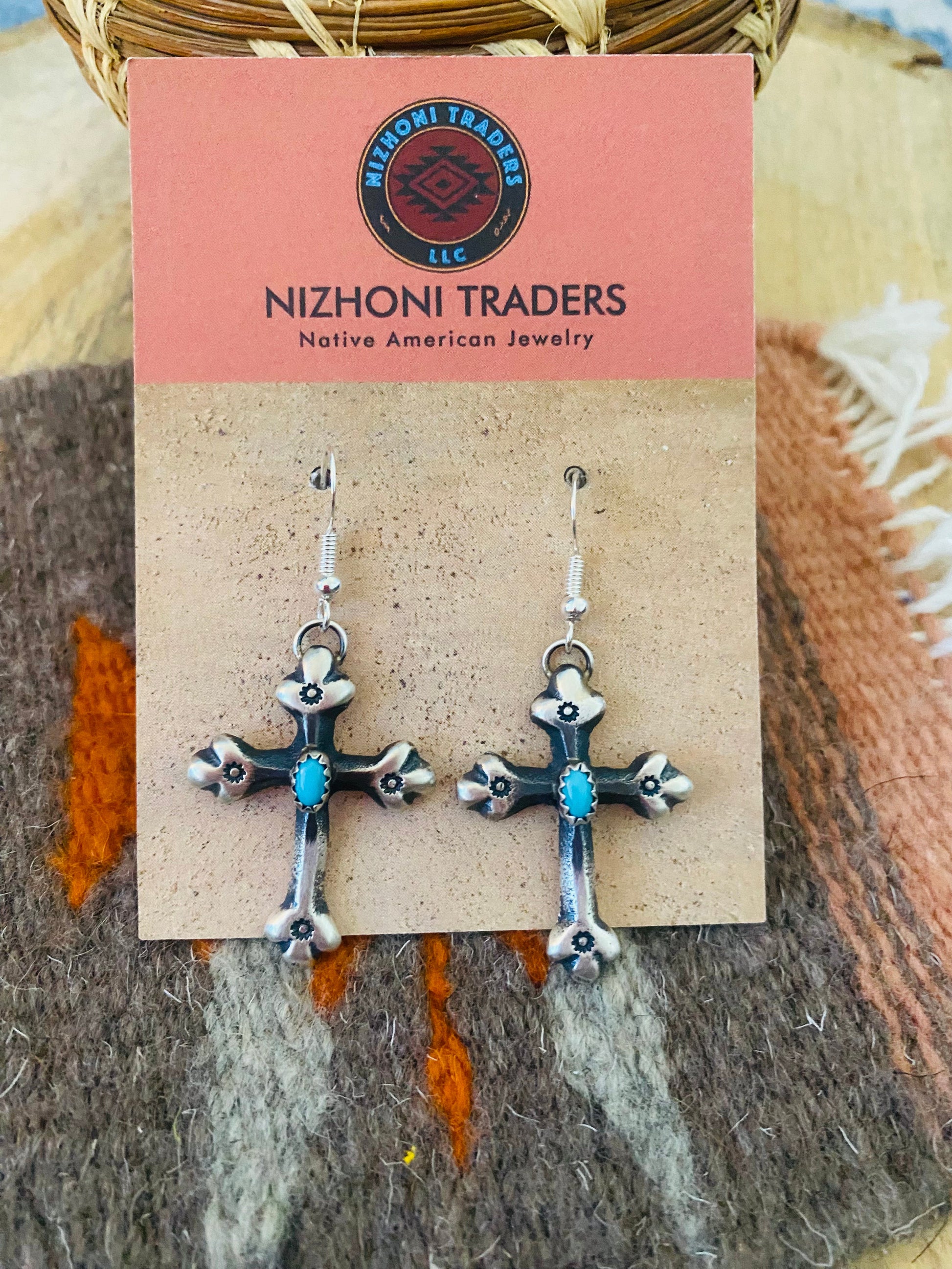 Navajo Sterling Silver & Turquoise Cross Dangle Earrings