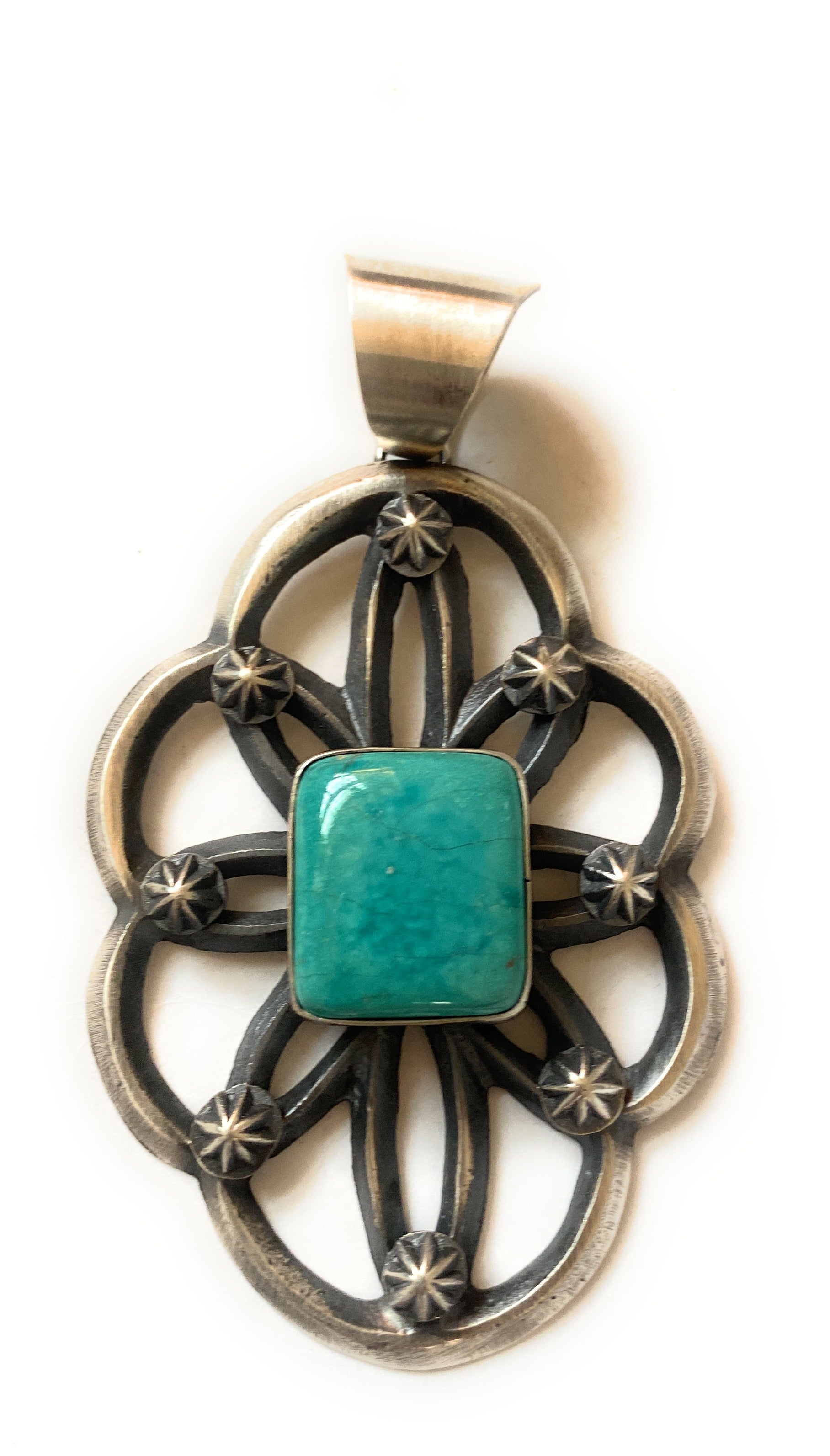 Navajo Sterling Silver & Turquoise Pendant By Chimney Butte
