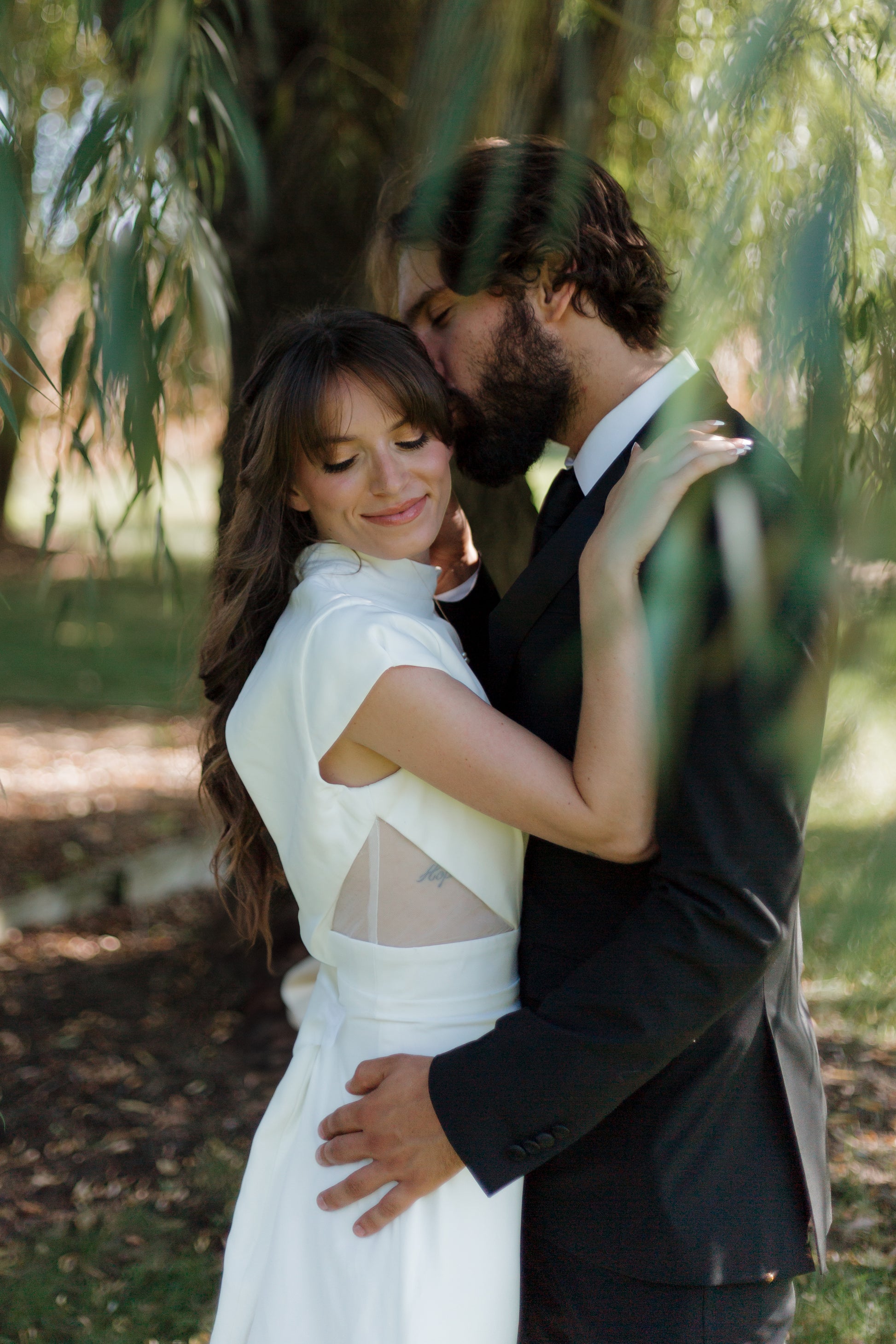 The Sandra Gown – Sleek Crepe Fit-and-Flare Wedding Dress with Keyhole Back