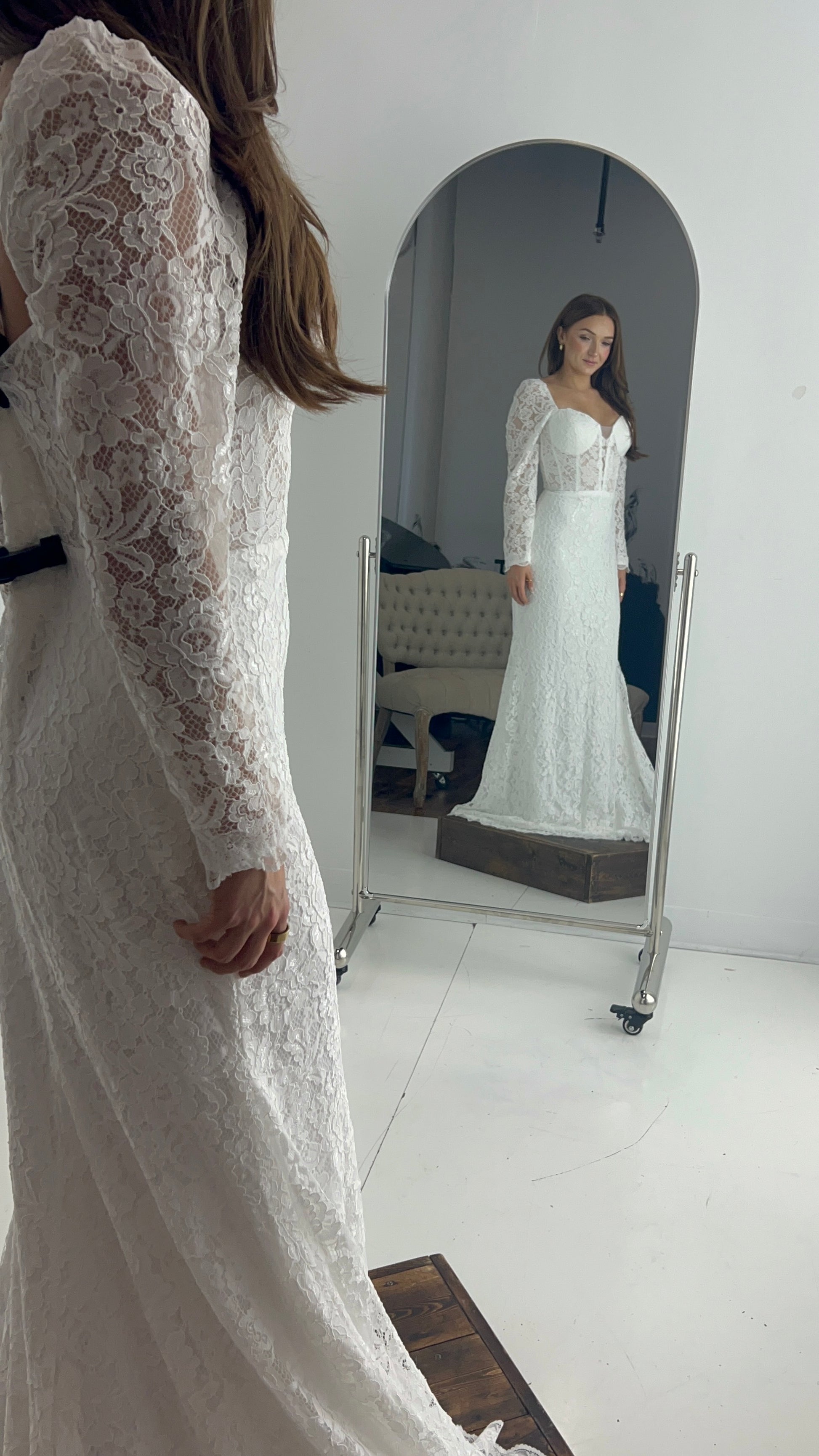 The Cori Gown – Long Sleeve Lace Western Wedding Dress with Open Back & Plunge Neckline