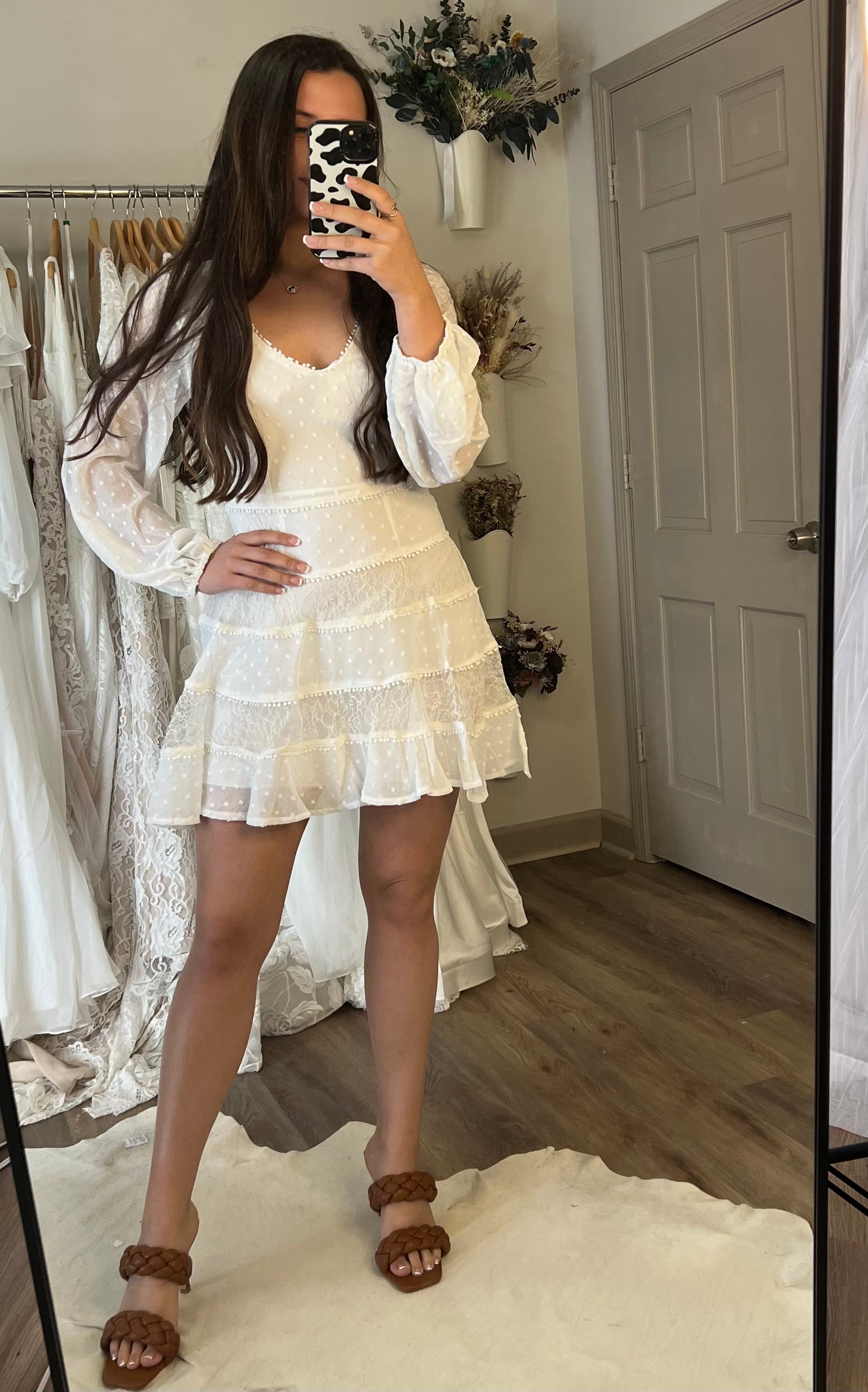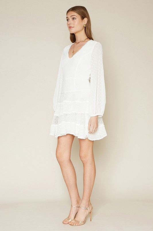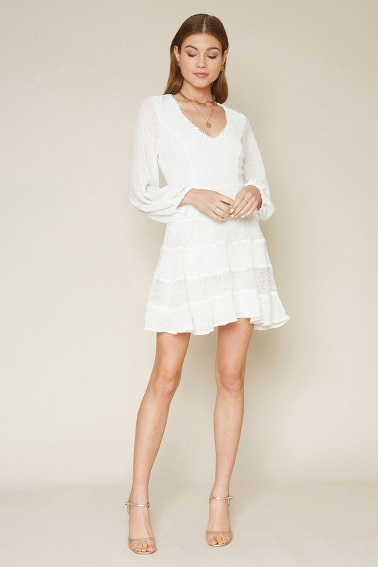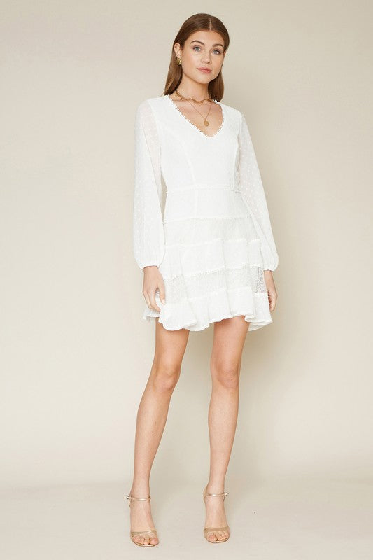This 3/4 Sleeve Tier Swiss Dot Flare Dress makes a beautiful choice for bridal wear