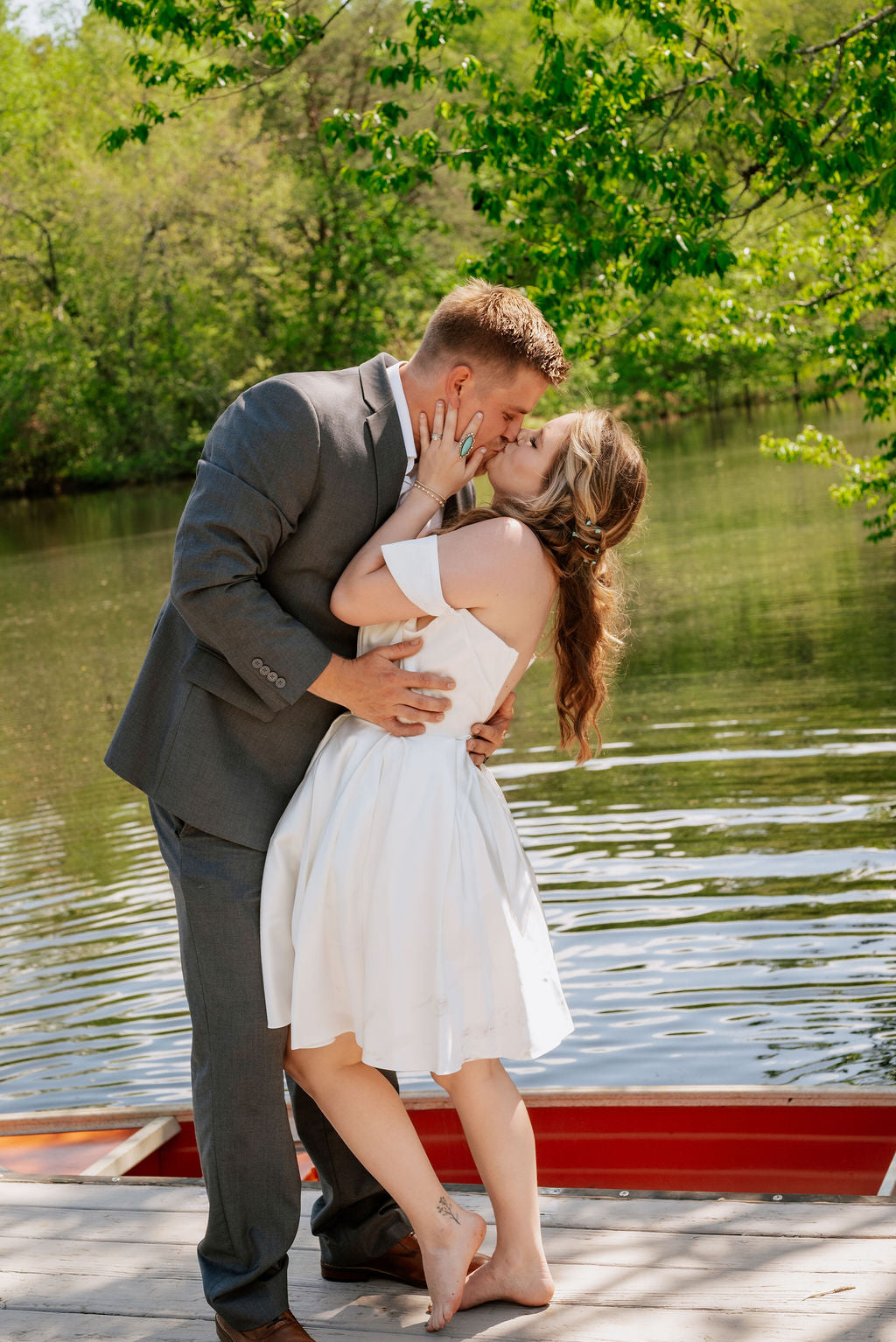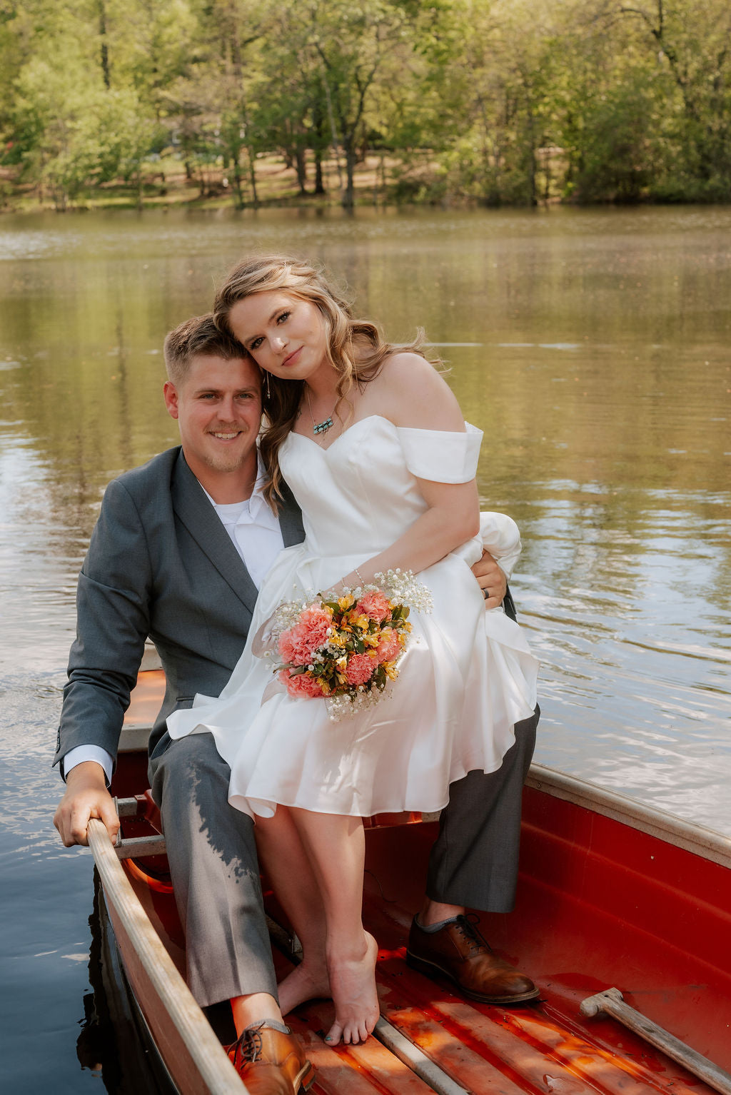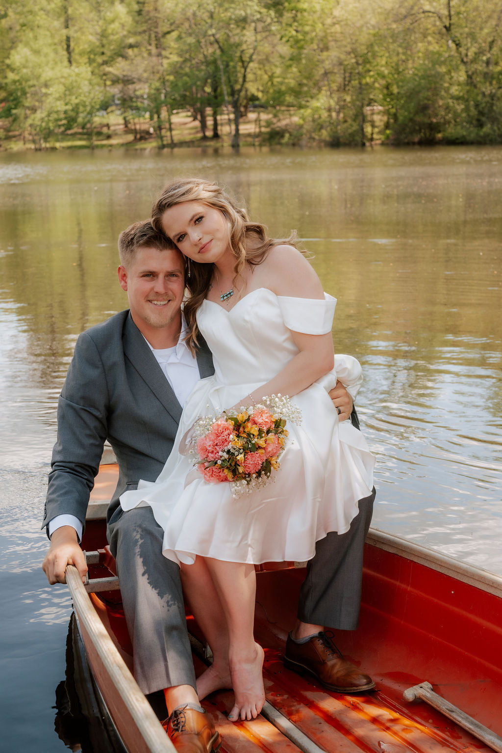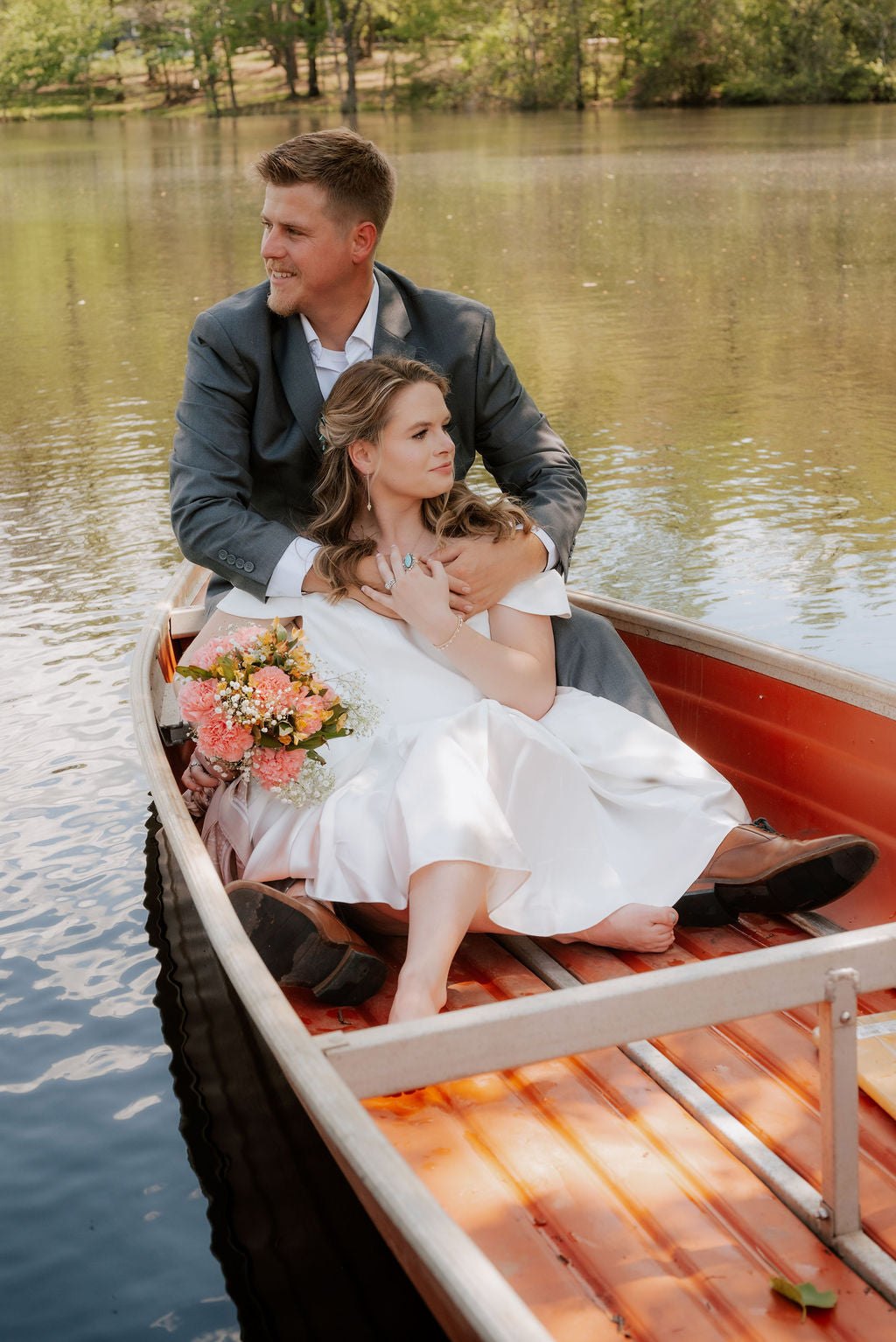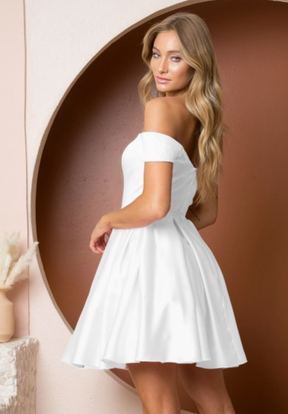 This mini gown is available in a size 2, in stock and ready to ship. This dress has been worn once for modeling, and therefore discounted.