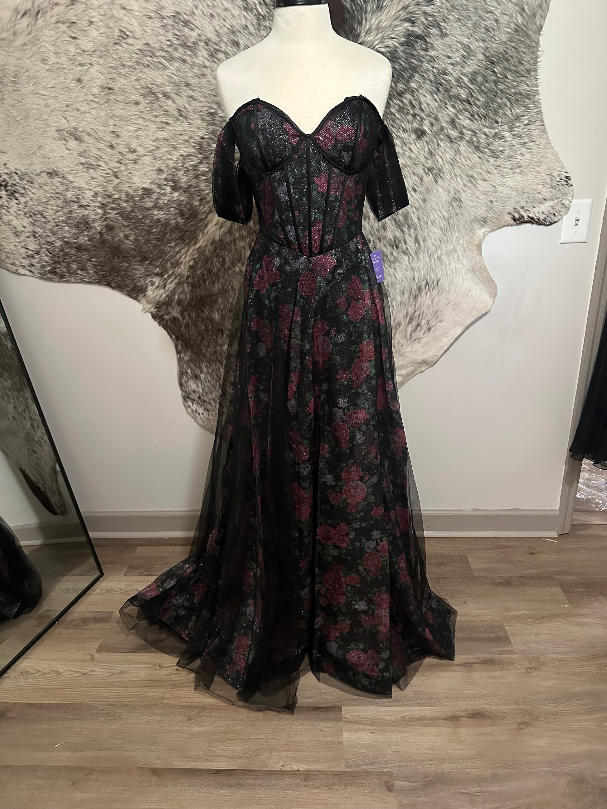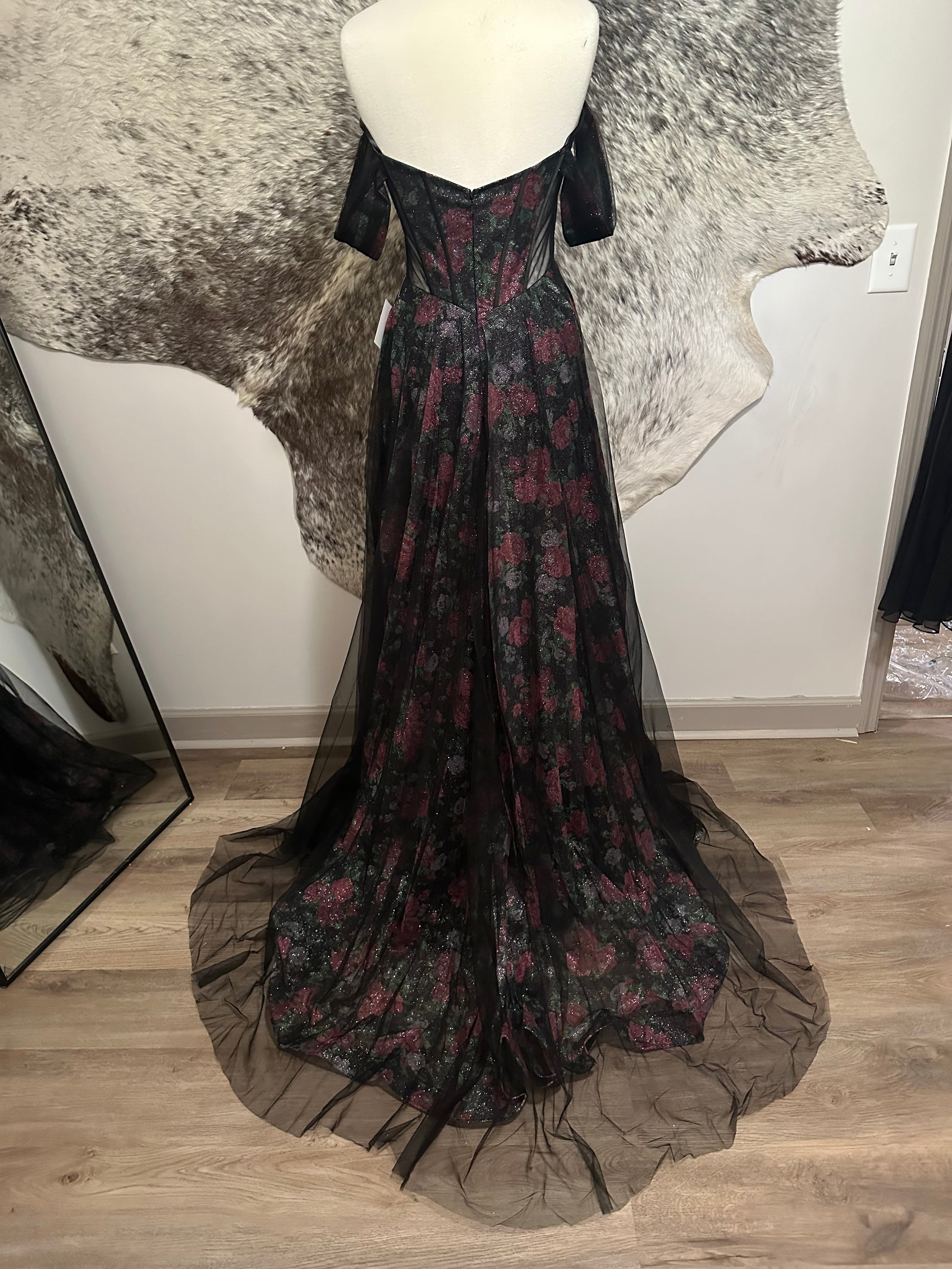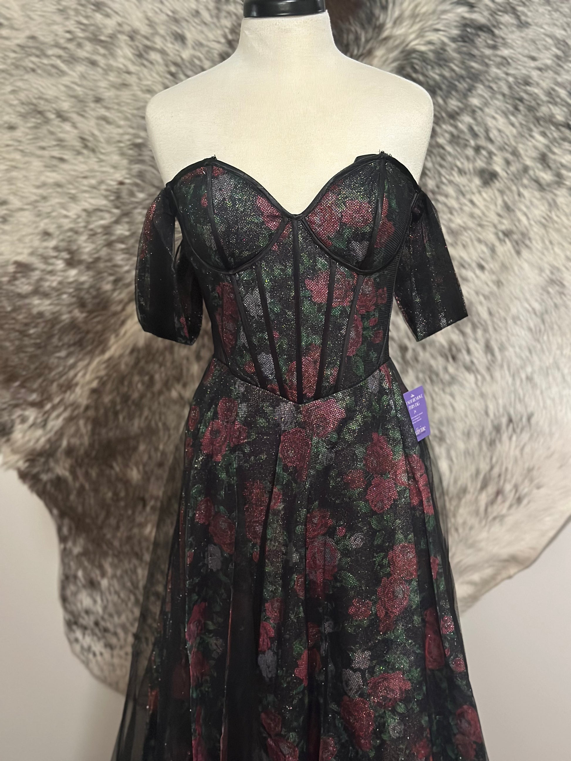 This sample gown has been worn once for photos and is therefore discounted accordingly