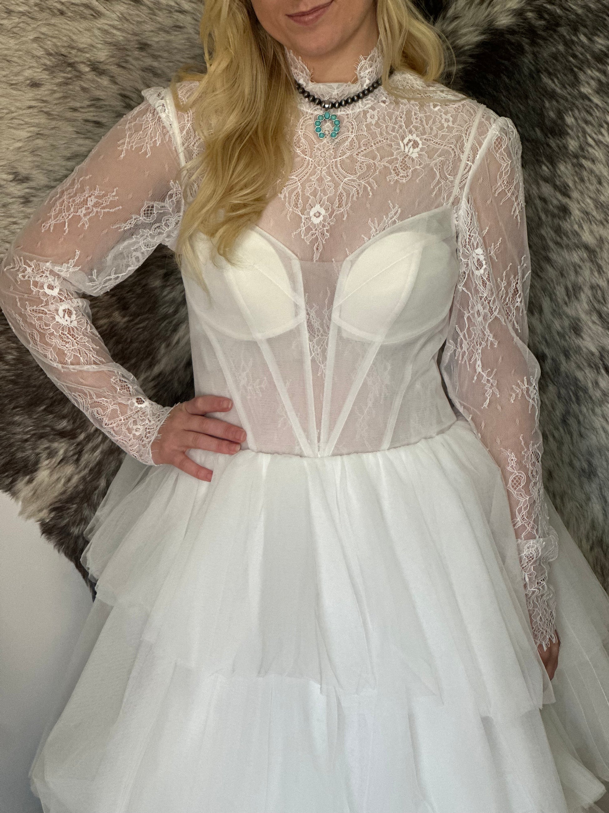 A stretch lace bodysuit perfect for creating so many looks. Zips in the back.