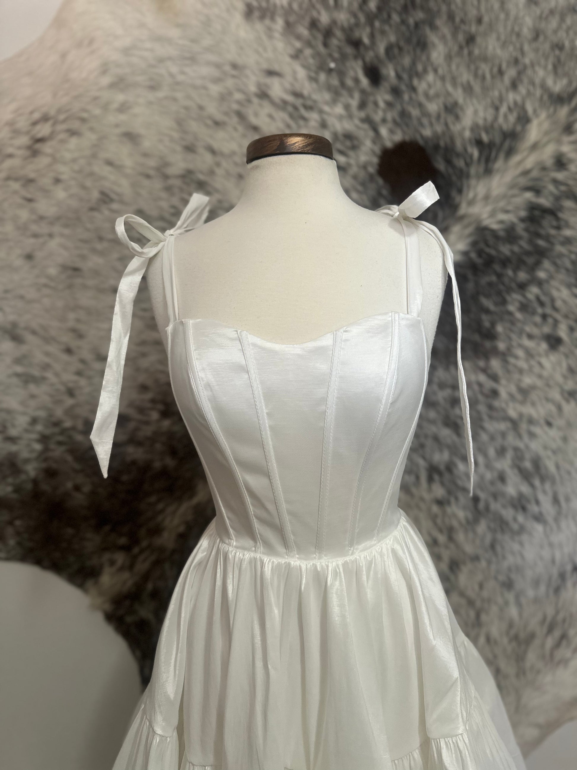 The Mila Mini is perfect for your rehearsal dress or any bridal event.