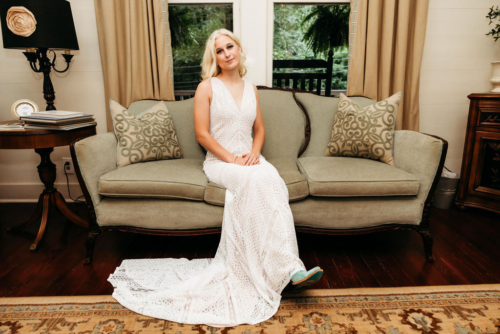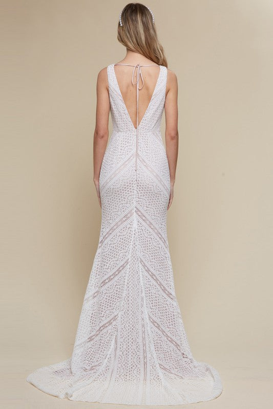 The Miranda is an exquisite mix of classic and modern elegance. Featuring a full-length, fit-and-flare silhouette cascading into a medium train and finished off with a soft ivory-and-blush palette, this romantic western lace gown is ideal for any special occasion. An open back adds a subtle touch of modernity for a sophisticated look.