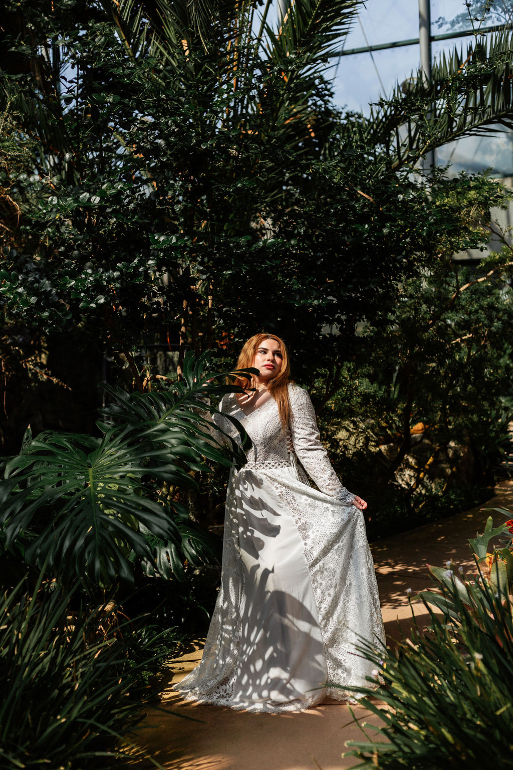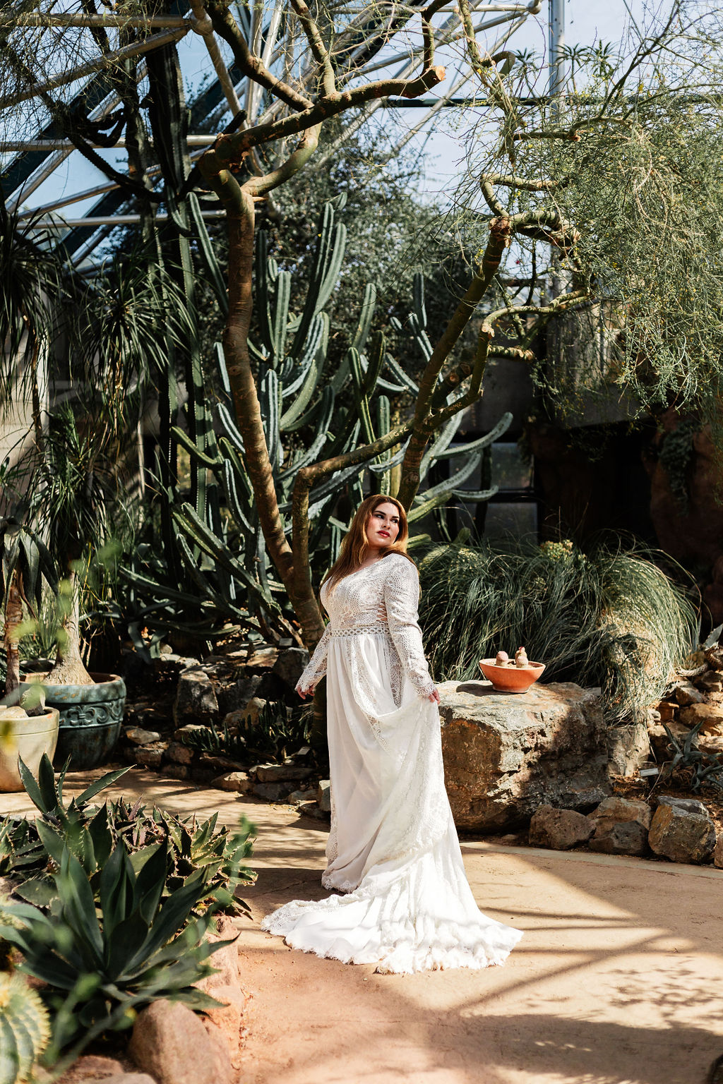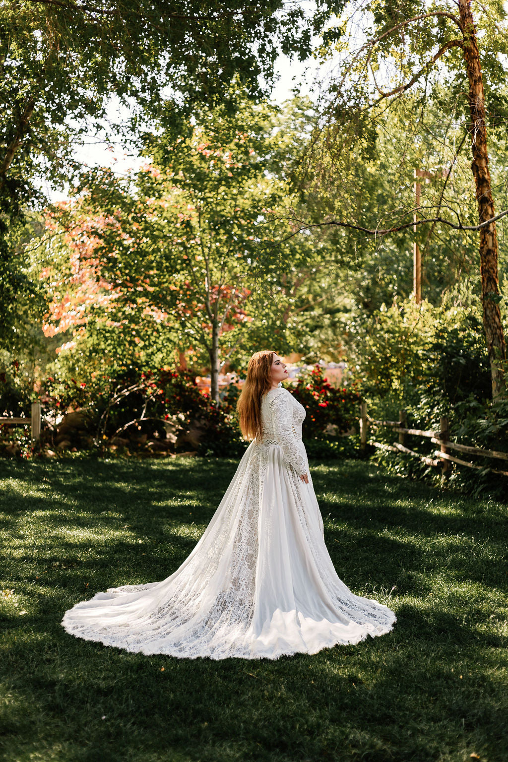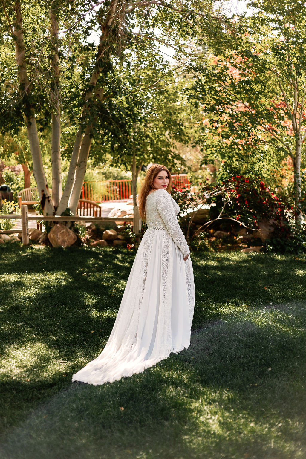 This Boho A Line Long Sleeve Floral Pattern Lace Wedding Dress is perfect for the bride who wants to embrace her Bohemian side. The Rustic, Long Sleeve Lace top adds a touch of vintage charm, while the Flowy Chiffon skirt gives the dress a natural and effortless look. The combination of Lace and Chiffon creates a dreamy, romantic look that is perfect for an outdoor, Rustic or Boho-themed wedding. Whether you're exchanging vows in a garden or on a beach, this Bohemian, Rustic, Long Sleeve Lace and Chiffon Wedding Dress is sure to make you feel like a true Bohemian goddess.