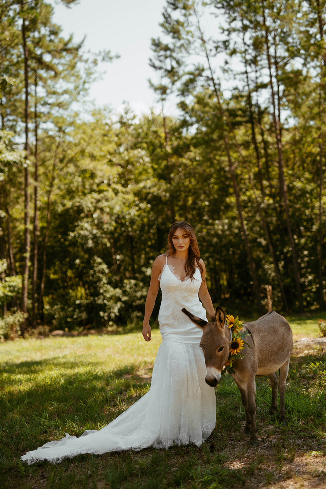 This gown can be ordered in white, ivory, or black and is available in sizes 2-30