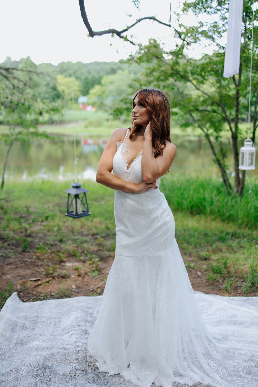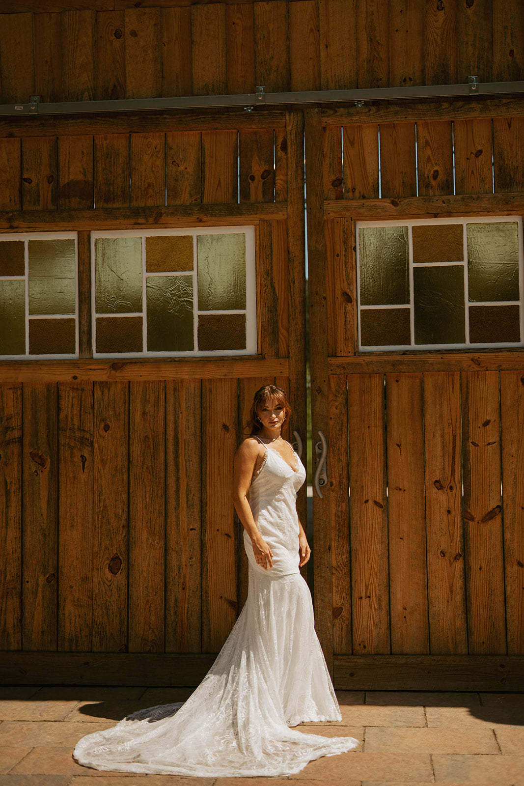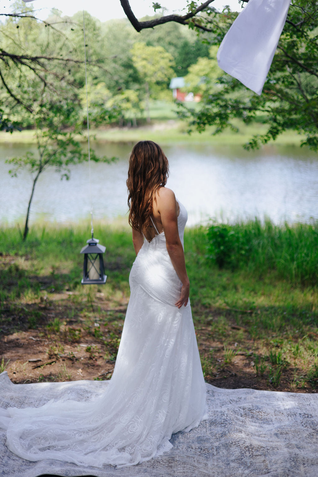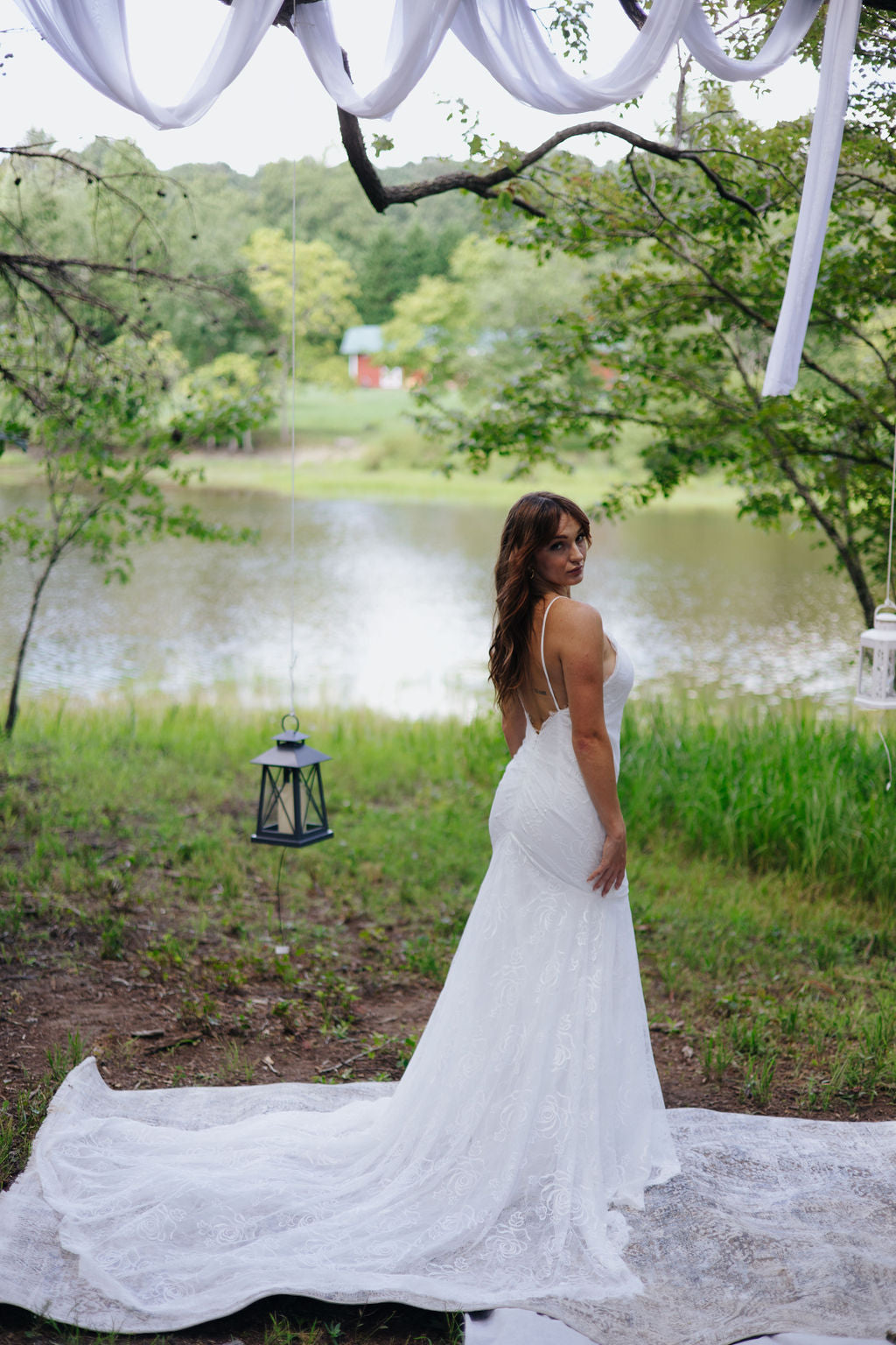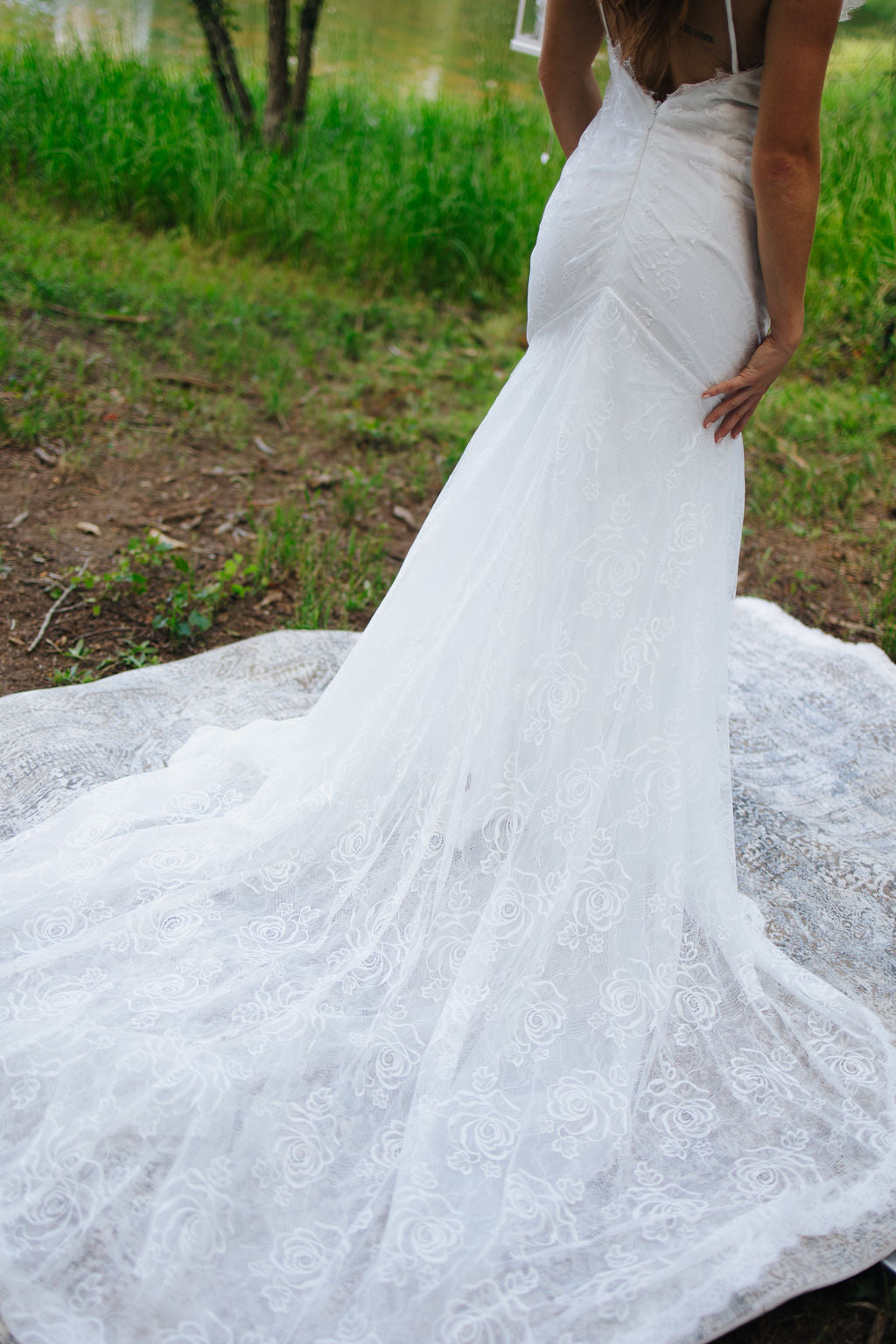 All over rose lace mermaid dress with pleating at butt, sweetheart, thin straps, and low back.
