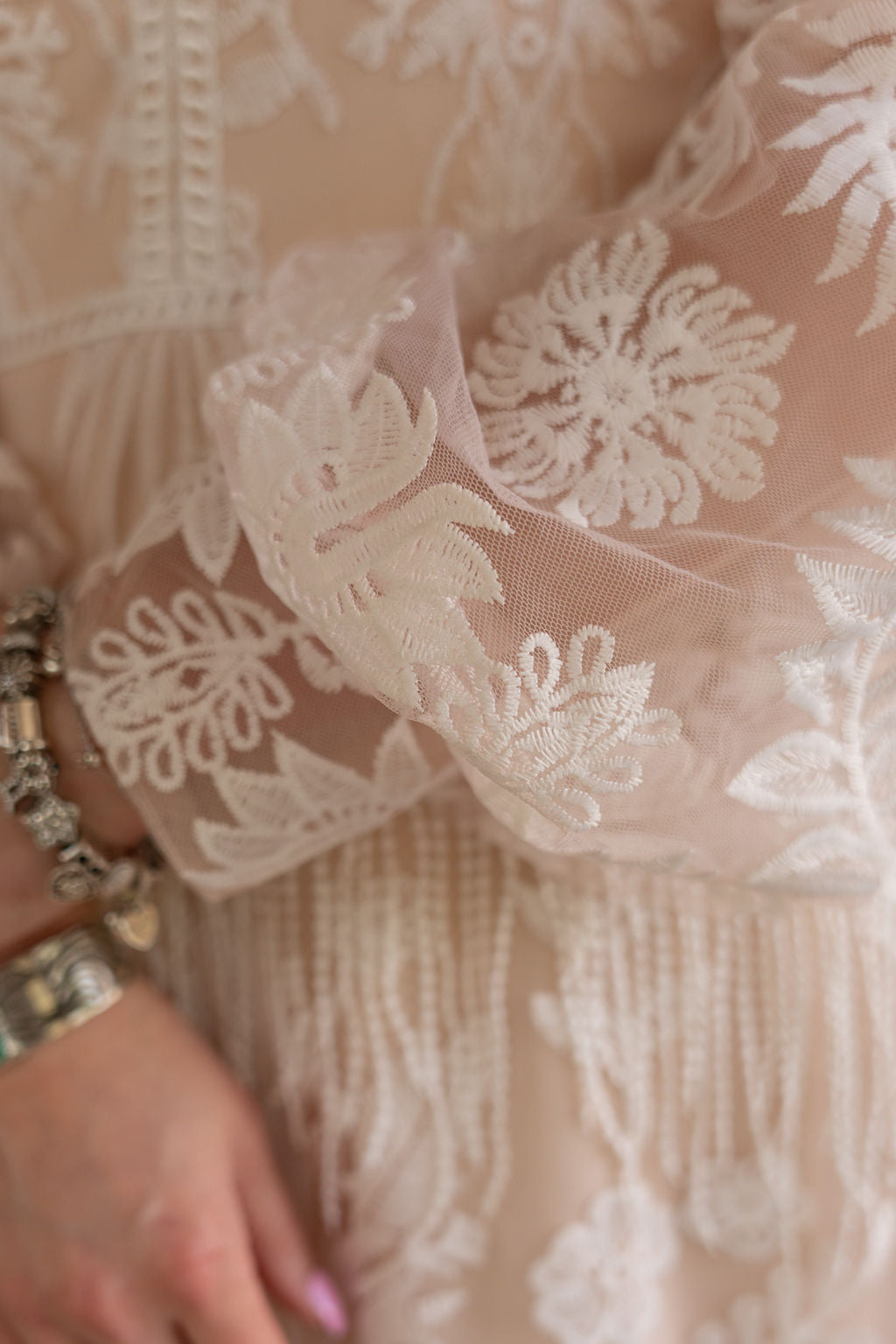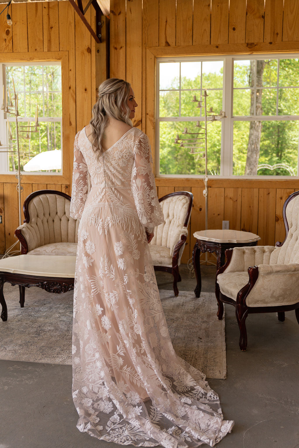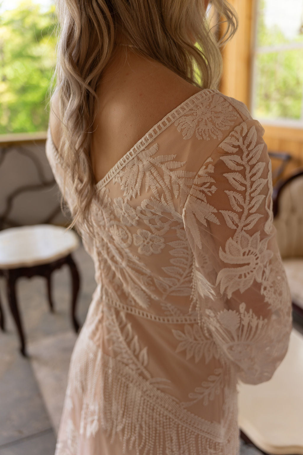 Whether you're having an outdoor wedding or a casual beach ceremony, this dress is perfect for the free-spirited and stylish bride. Shop now and experience the beauty and grace of this stunning boho sheath wedding dress.