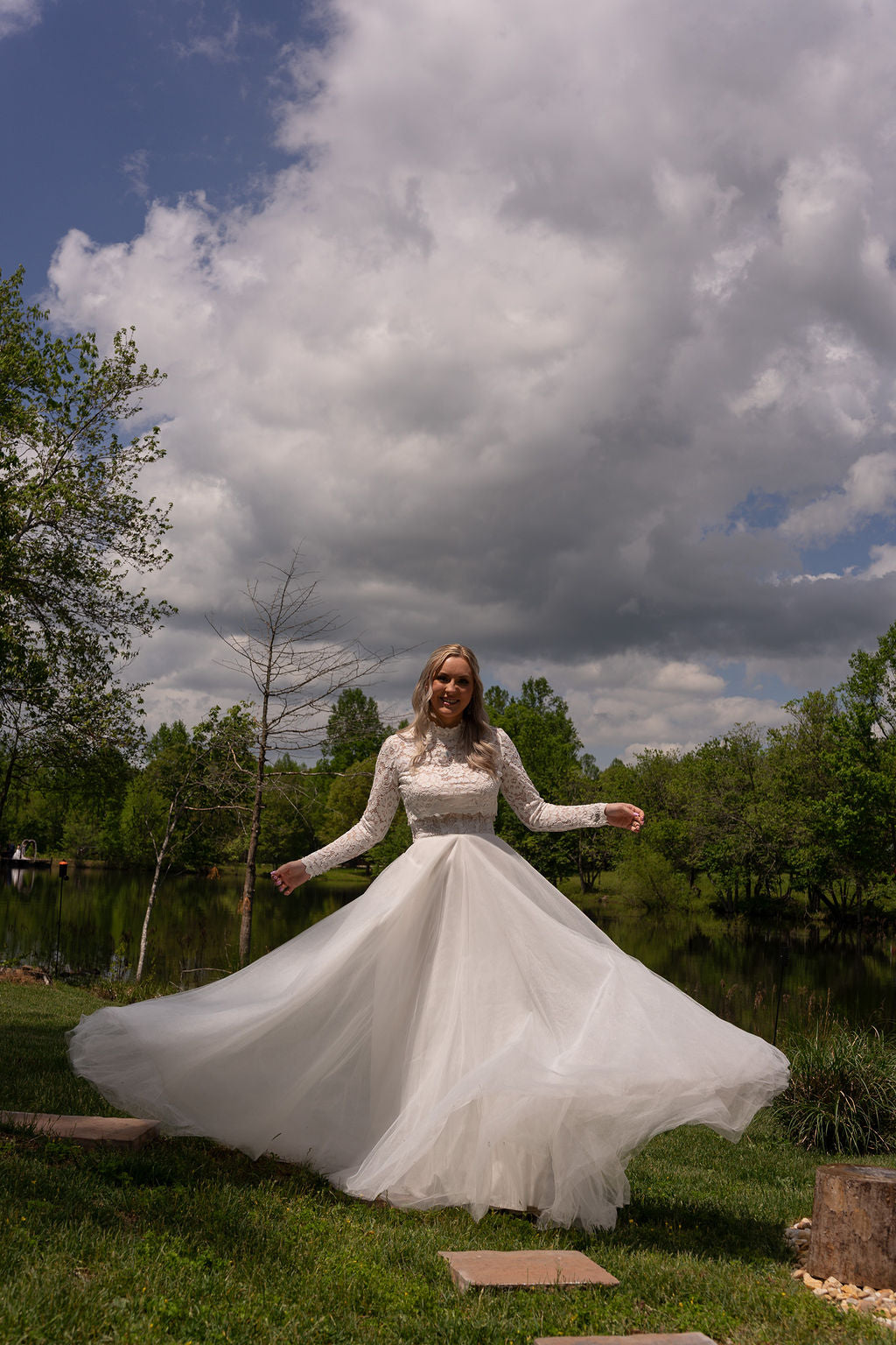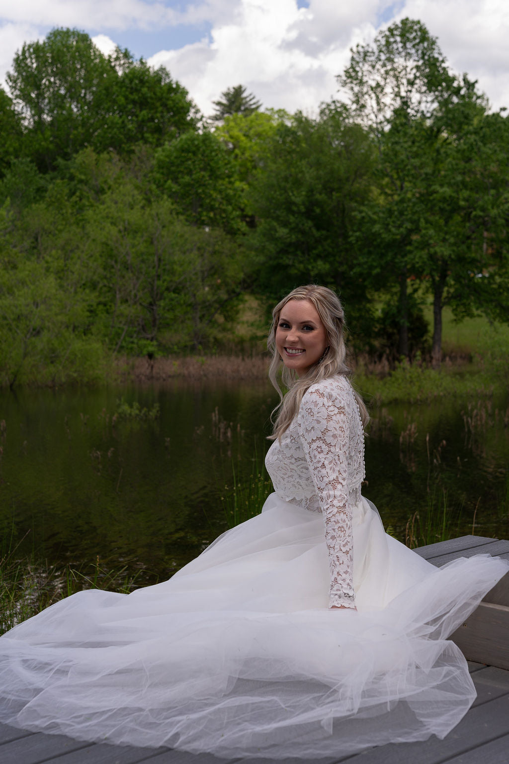 Hand placed appliques adorn a delicate tulle on this beautiful topper. Back is full button up.