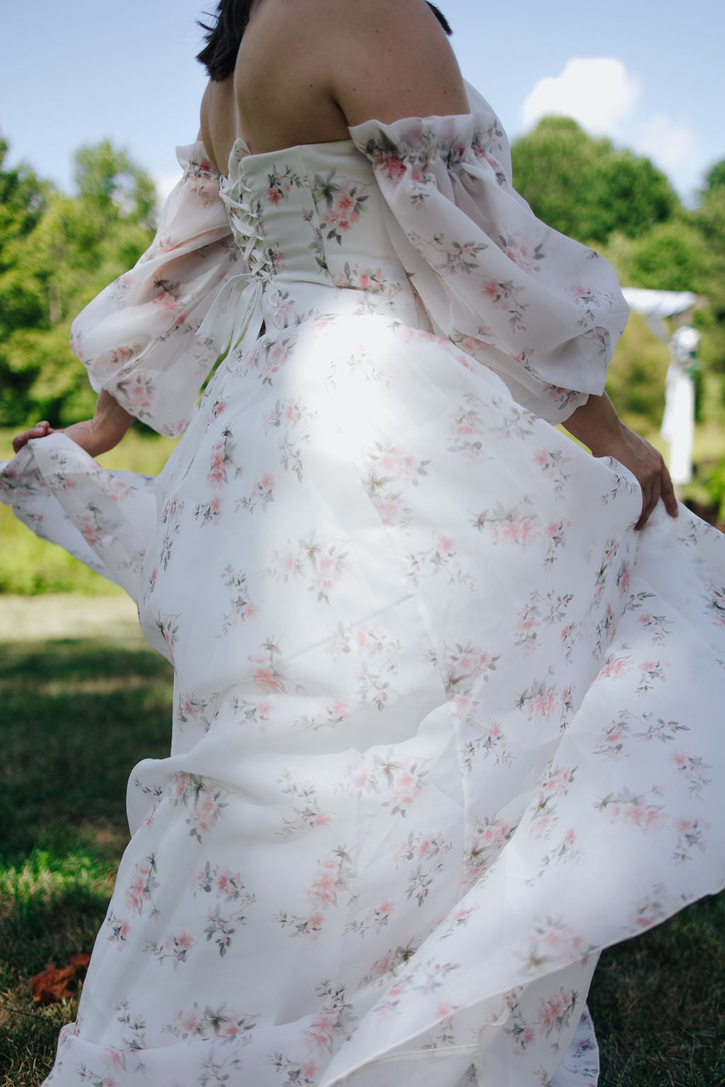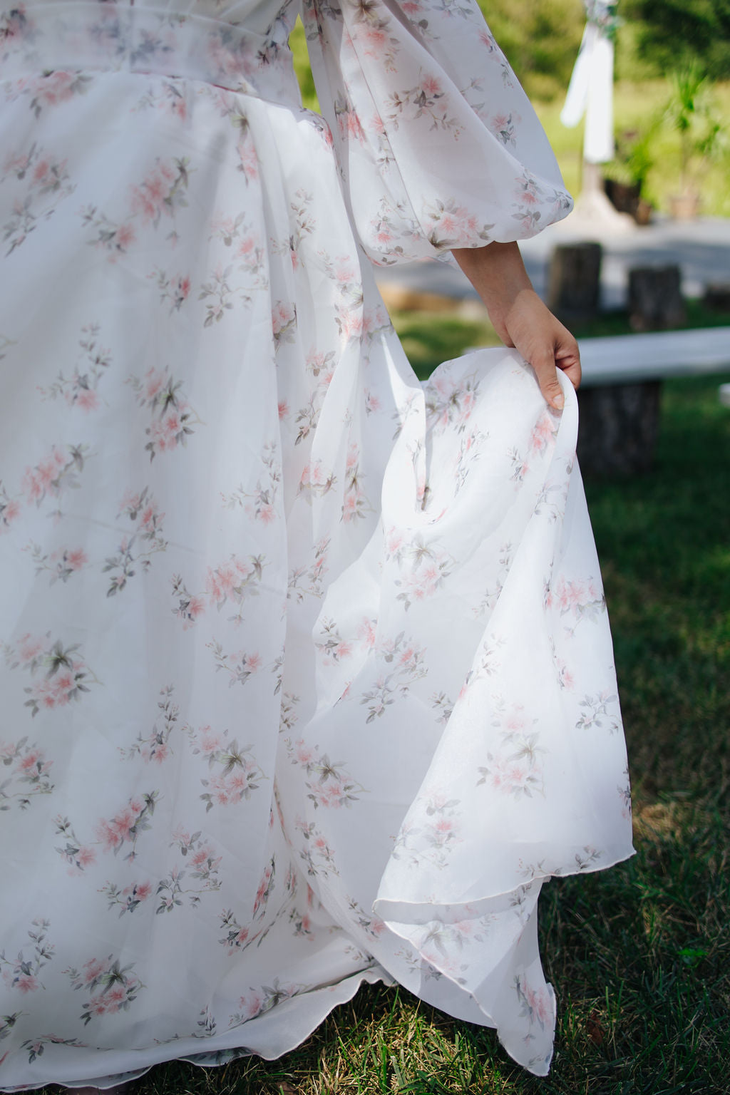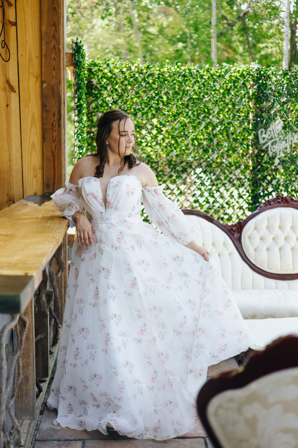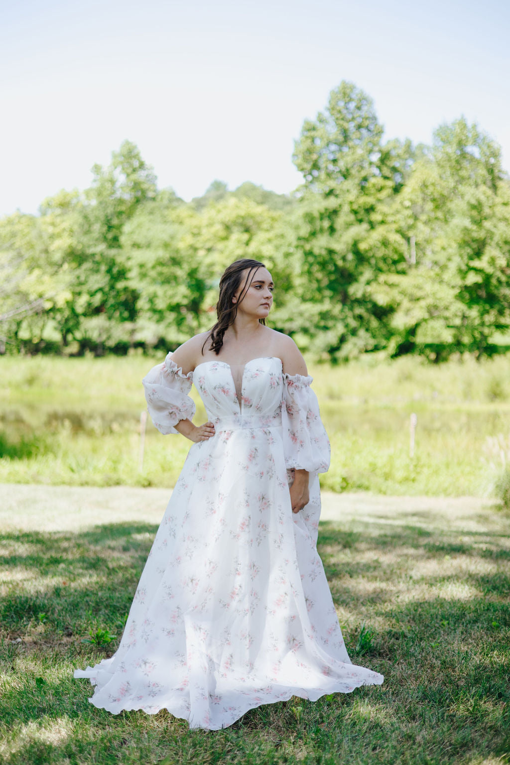 Crafted from luxurious organza, this A-Line Wedding Dress features enchanting floral paintings and an off-shoulder design for a romantic, yet rustic look. Wrapped in subtle elegance, the sweetheart neckline, corset bodice, and strapless design lend a touch of poise for a beautiful bridal look. Perfect for the modern bride that exudes timeless sophistication. Specifications: